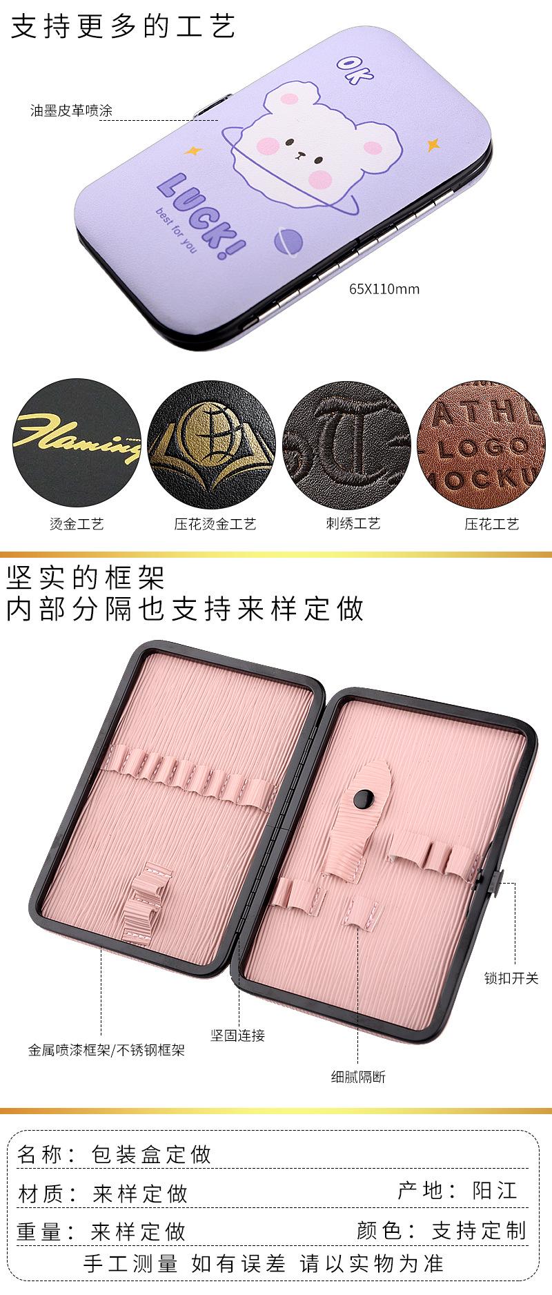 Bolsa com Armação de Ferro Cortador de Unhas Bolsa de Couro Caixa de Joias Cosméticos Cortador de Unhas Caixa de Armazenamento Portátil Kit de Beleza e Manicure