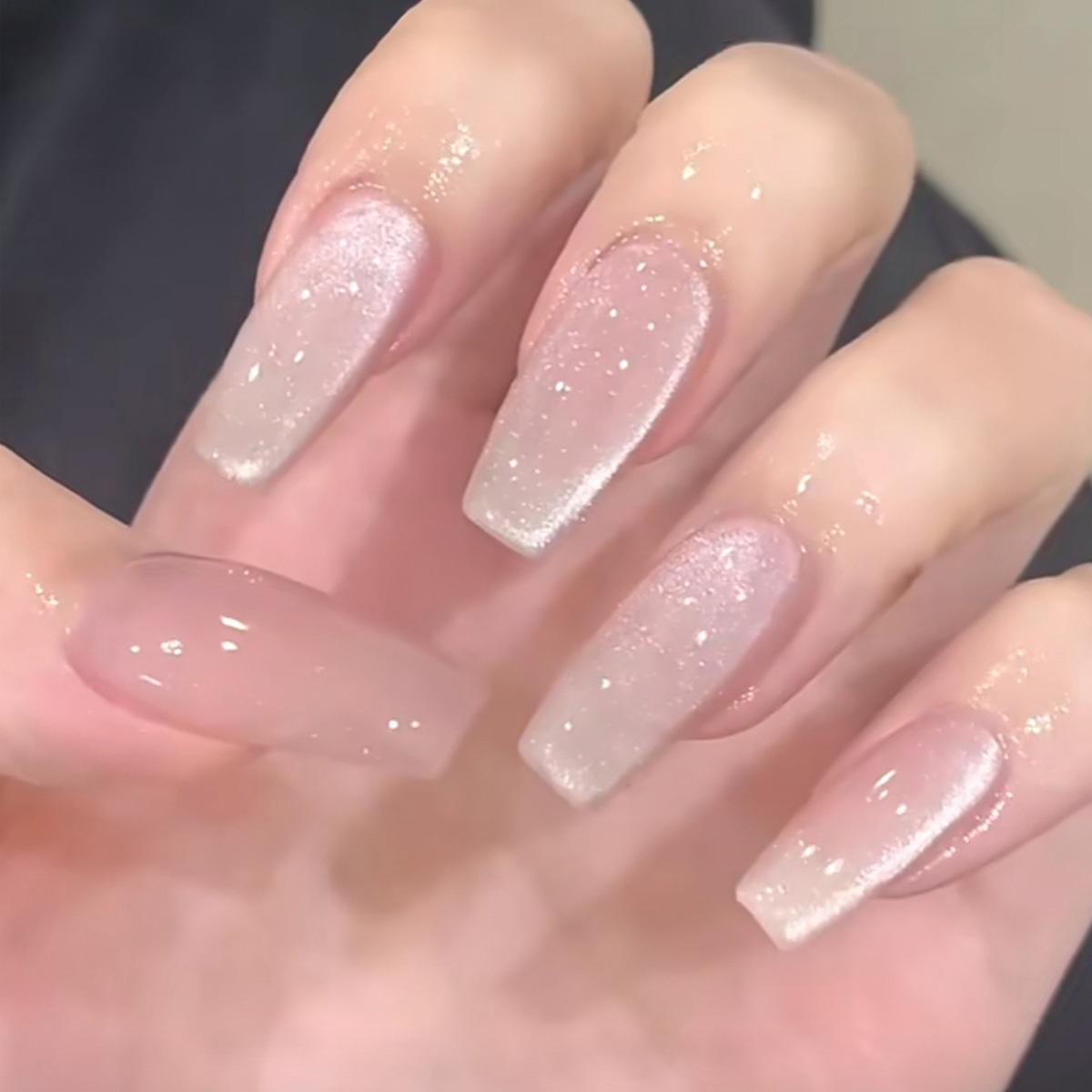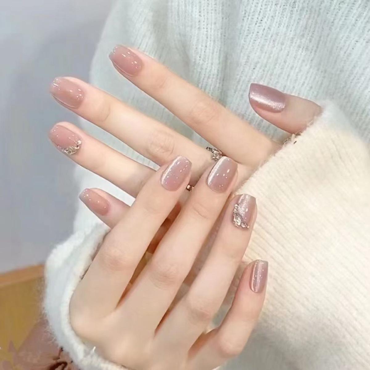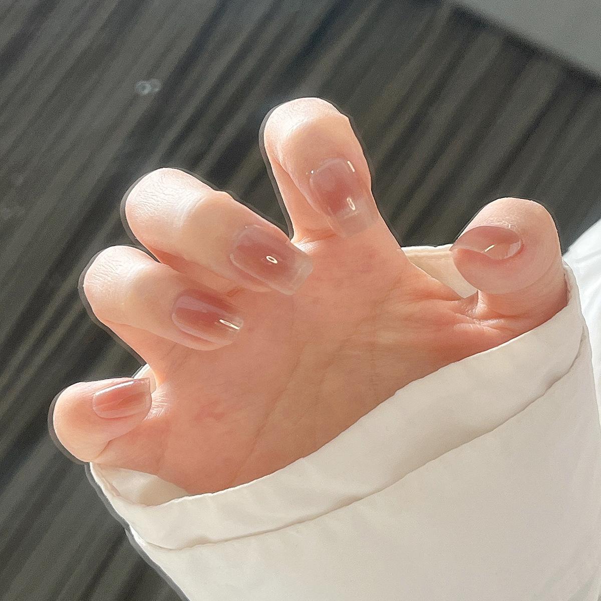 Simples e suave usar unhas nude cor sólida blush de comprimento médio manicure acabado peça de unha removível e reutilizável