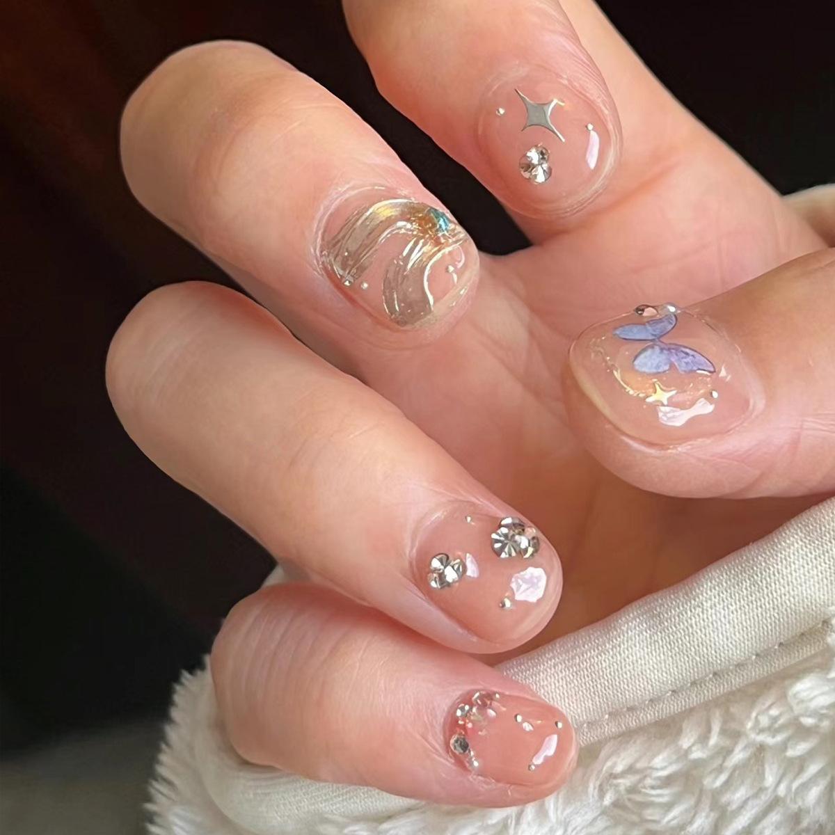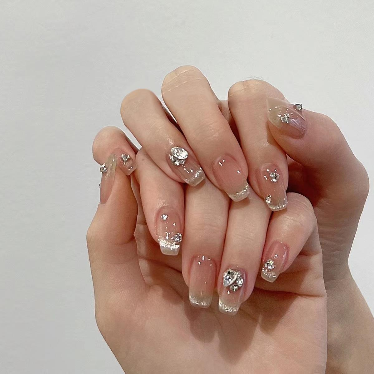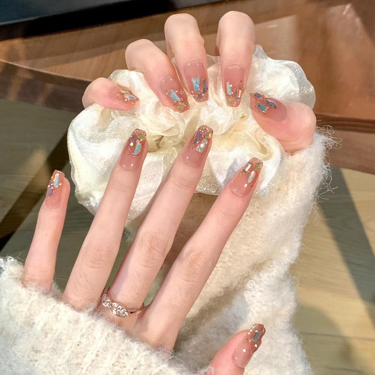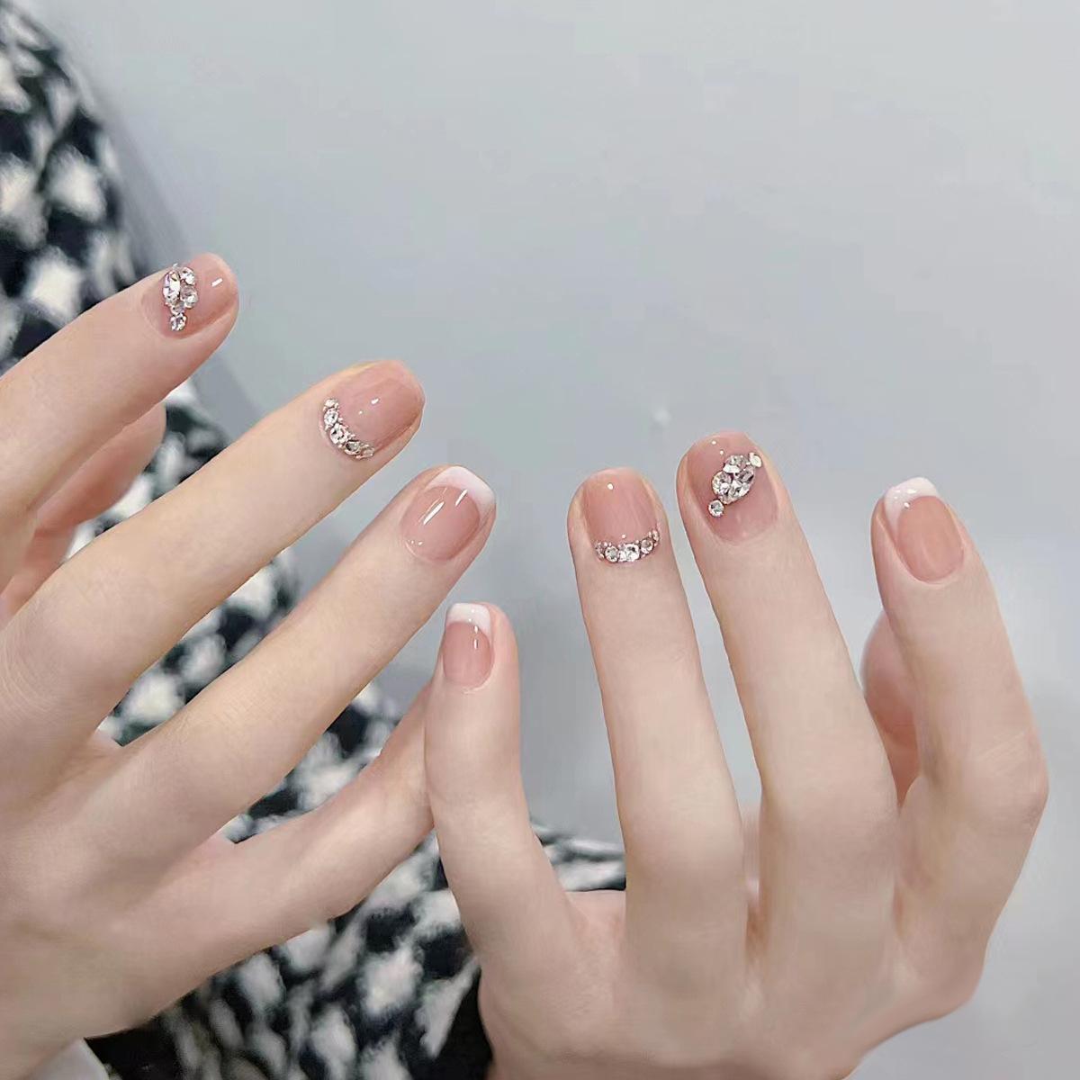 Simples e suave usar unhas nude cor sólida blush de comprimento médio manicure acabado peça de unha removível e reutilizável