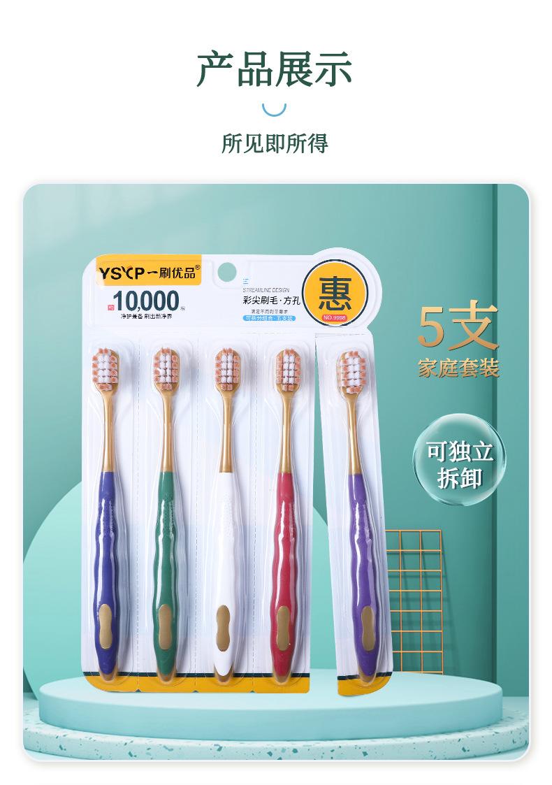 Uma escova excelente produto 5 conjuntos de cabeça larga buraco quadrado escova de dentes de cabelo amantes de viagens ultra-fino cabelo macio escova de dentes fábrica atacado
