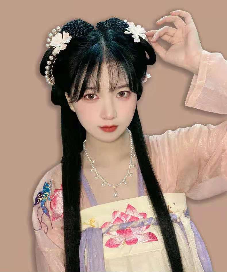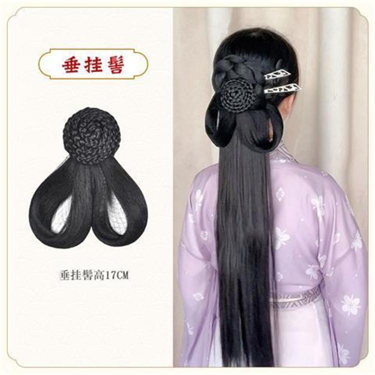 Nome do produto: Peruca de fantasia antiga, coque pendurado em ambos os lados da parte de trás da cabeça, coques de cabelo, coques estilo Hanfu
