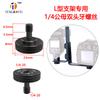 Suporte em L com rosca de conversão de tripé para câmera odontológica de cabeça dupla, com encaixe macho e fêmea de 1/4", adaptador de flash e acessórios para fotografia.