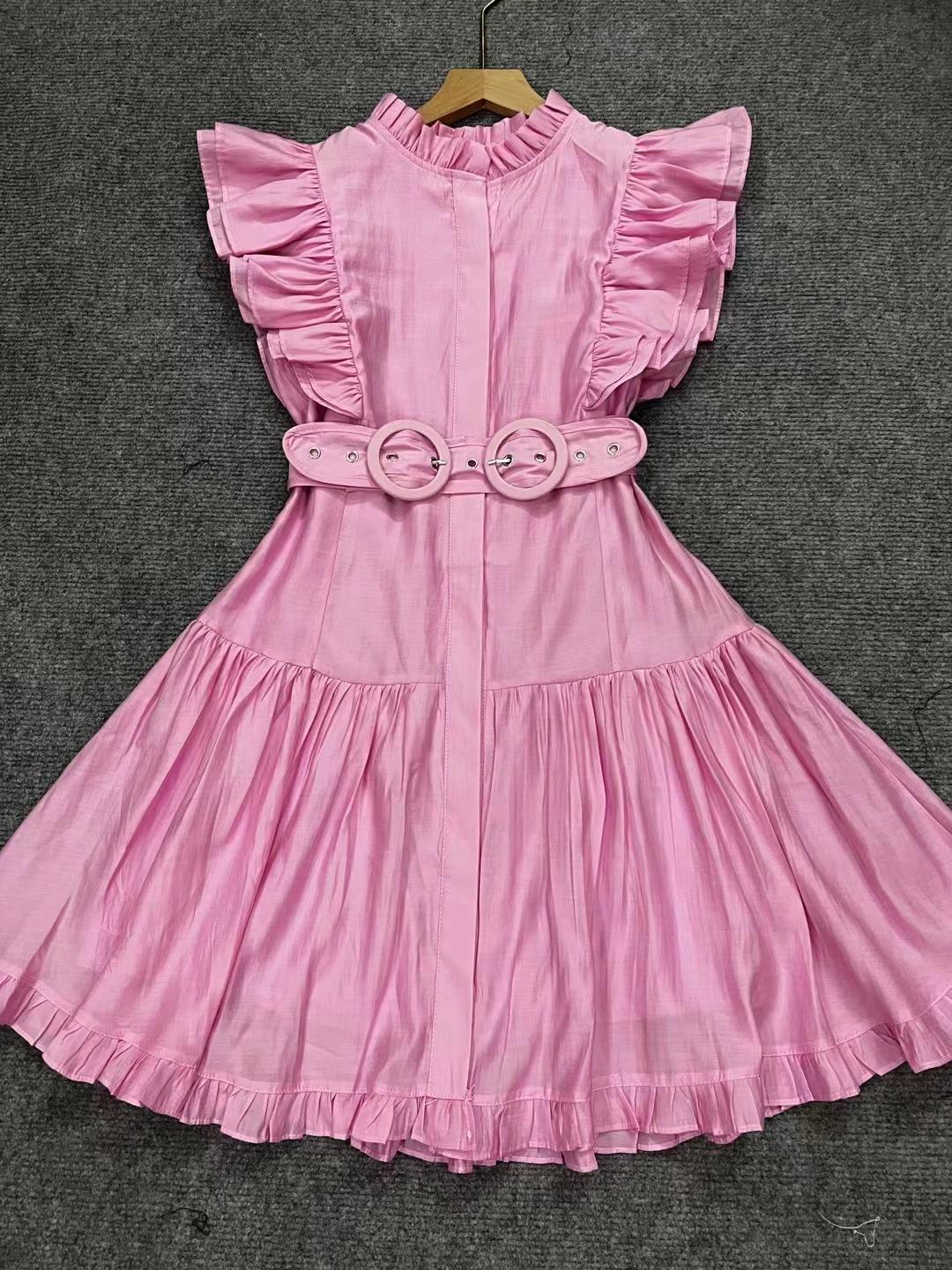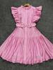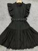 Comércio Exterior Europeu e Americano Cross-border 2024 Verão Novo Pescoço Redondo Manga Voadora Single-breasted Cinto Cintura Vestido Curto Mulheres