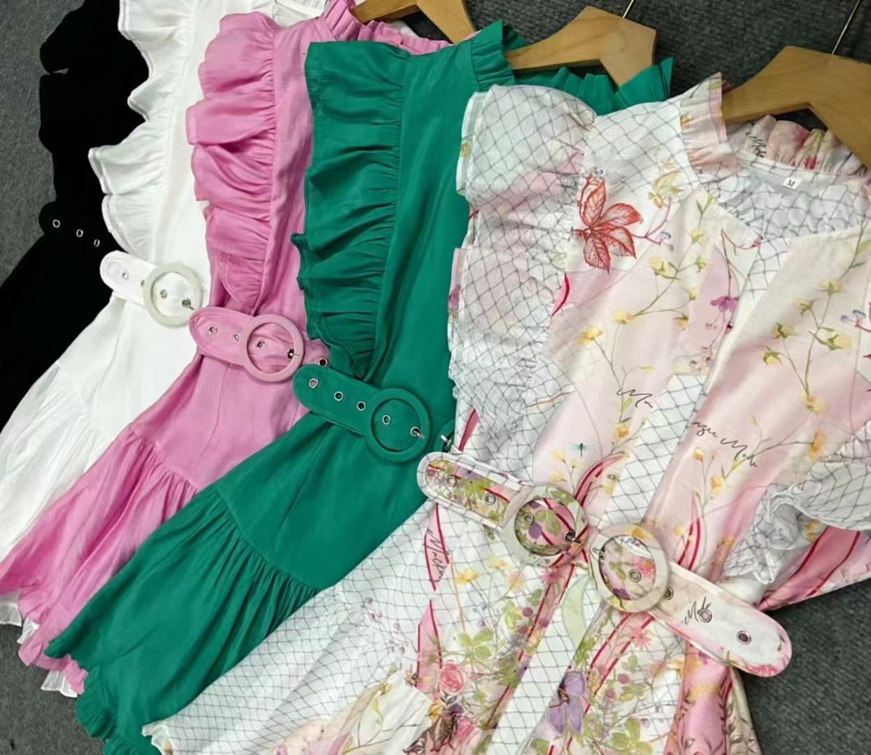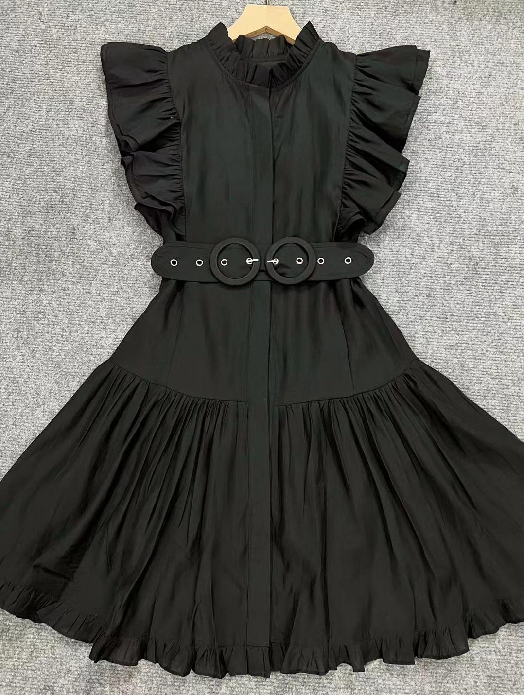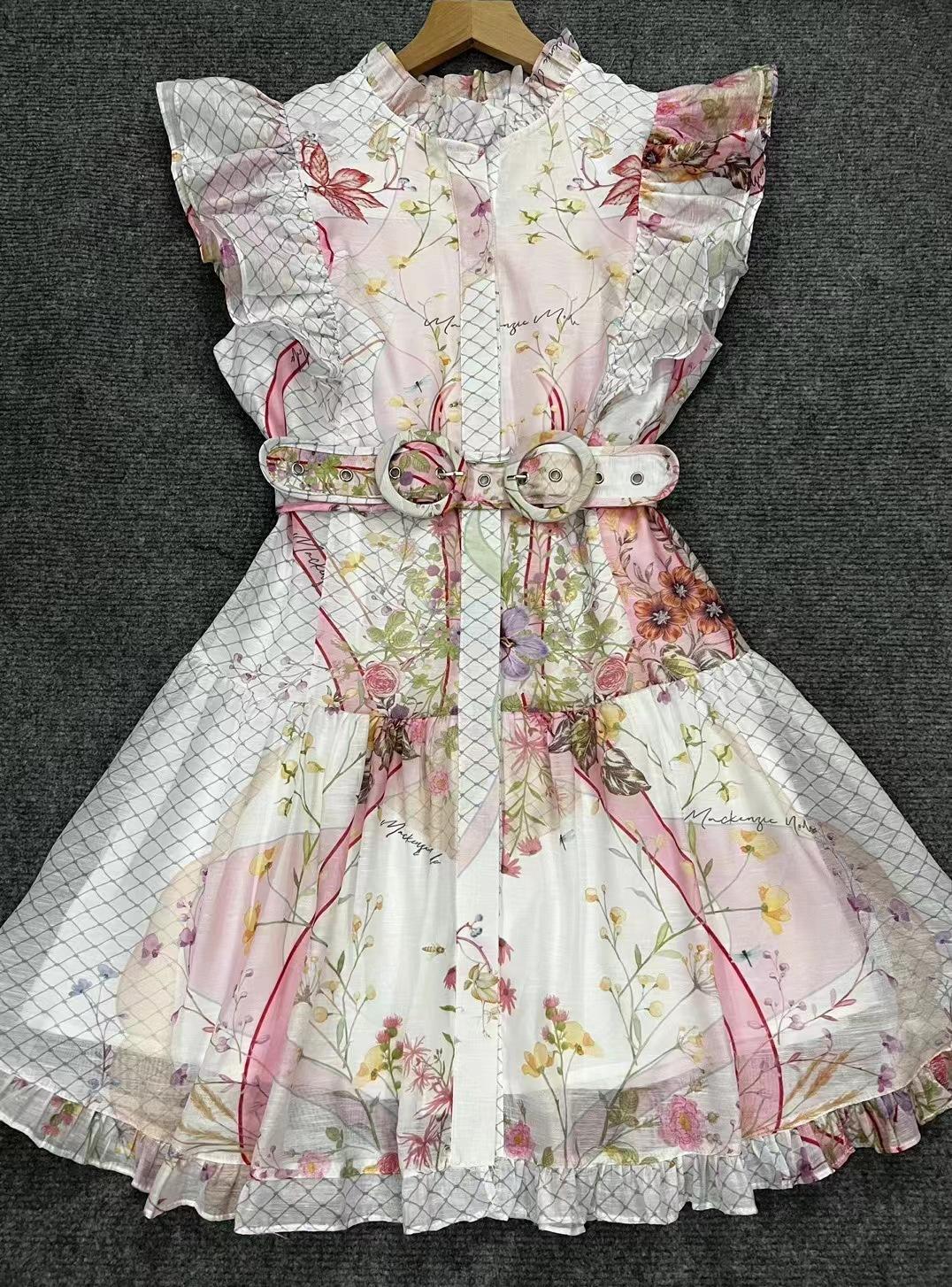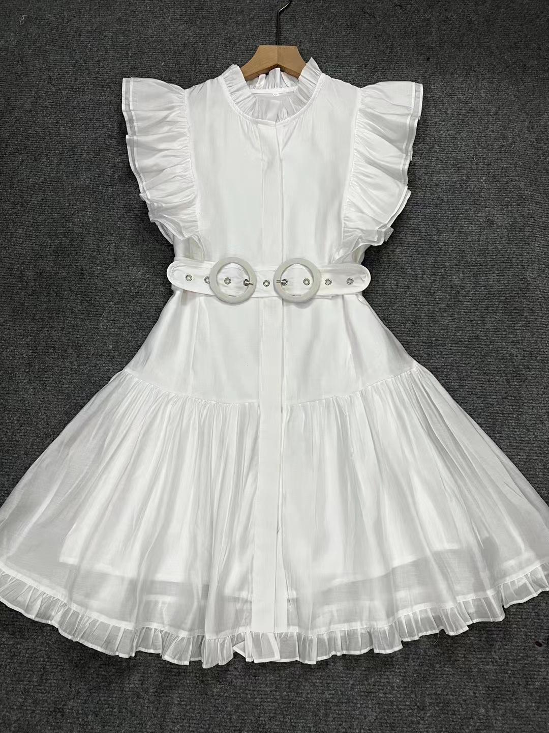 Compre Comércio Exterior Europeu e Americano Cross-border 2024 Verão Novo Pescoço Redondo Manga Voadora Single-breasted Cinto Cintura Vestido Curto Mulheres no atacado no Joom.pro