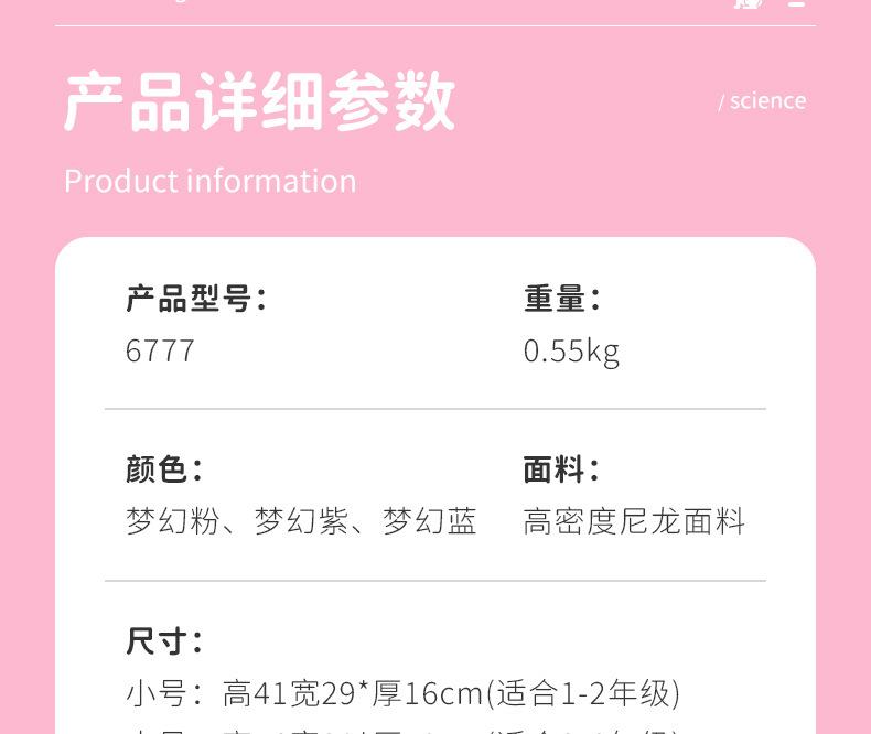 Nova escola escola saco feminino porta do refrigerador de grande capacidade Light Grade 1-6 Dream Children ombro atacado