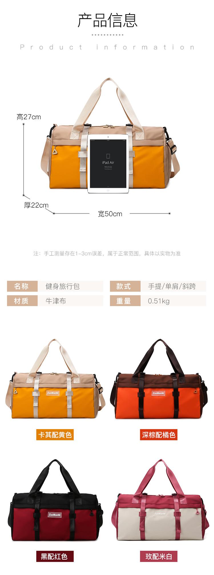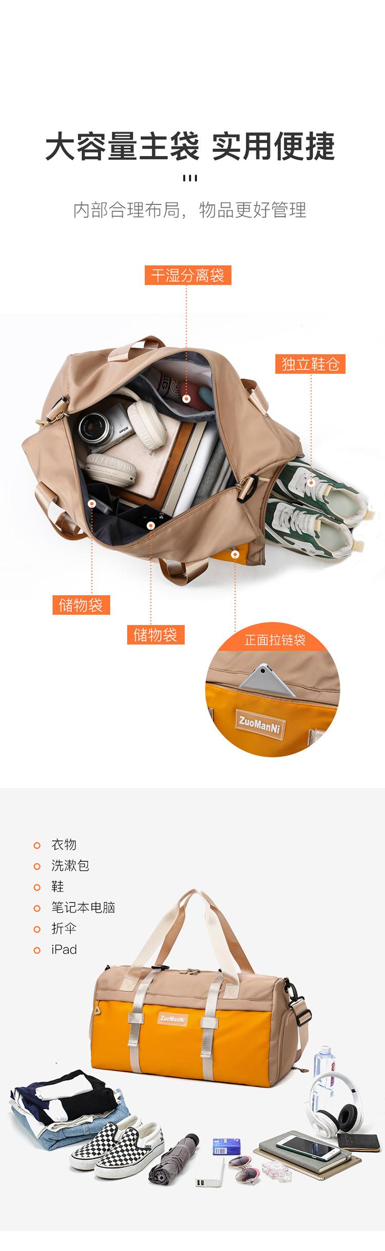 Saco de bagagem de viagem de curta distância de grande capacidade, saco de armazenamento portátil de viagem, fitness desportivo, separação molhada e seca pendente de armazenamento