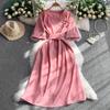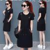 Vestido Verão Novo Estilo Coreano Esportivo Manga Curta Cor Sólida Gola Redonda Comprimento Médio Cintura Emagrecimento Saia Um Passo