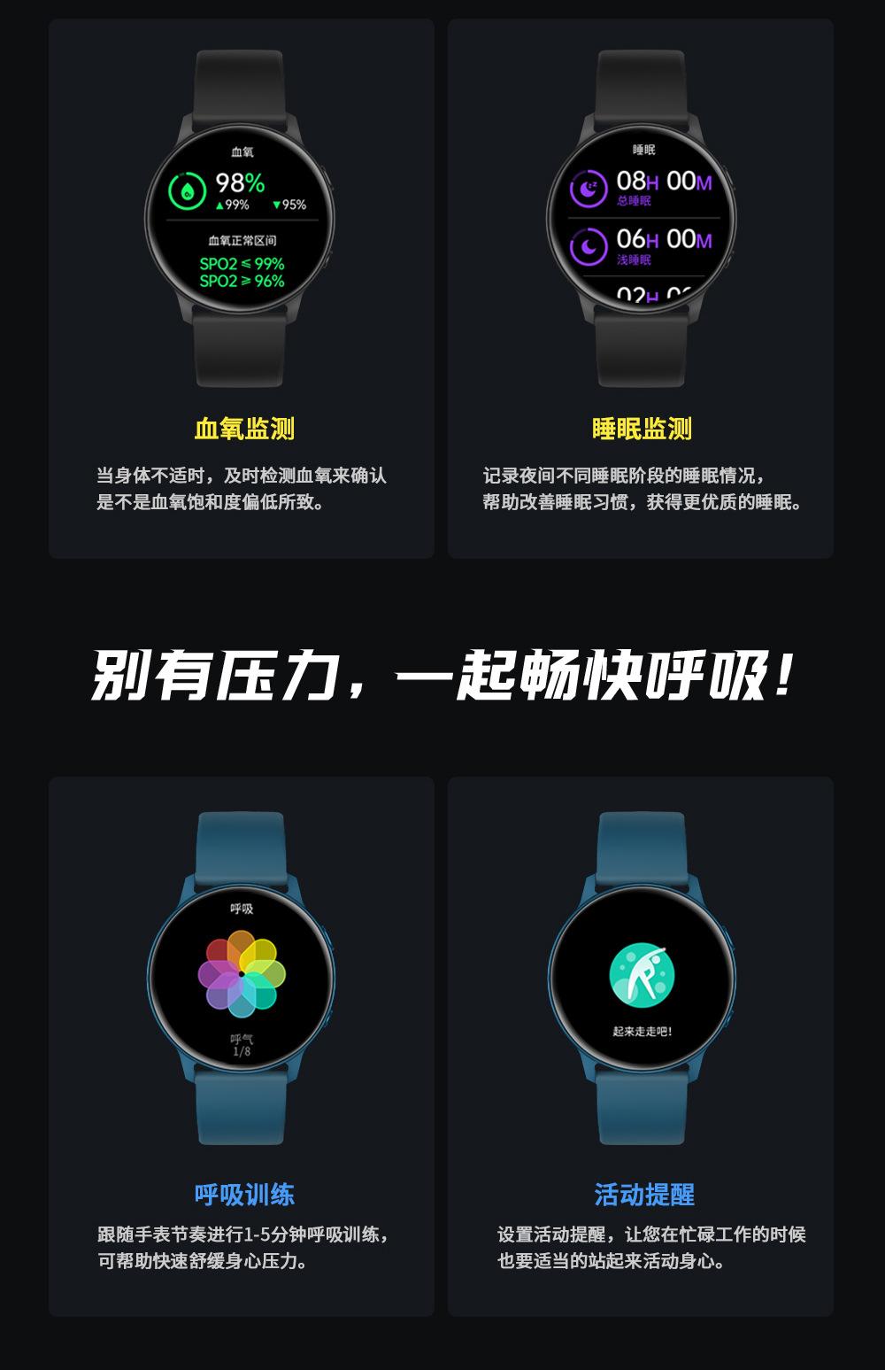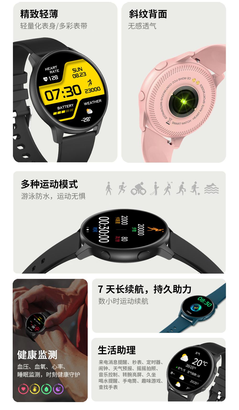 Step counting, Smart reminder, Health monitoring, Information Push