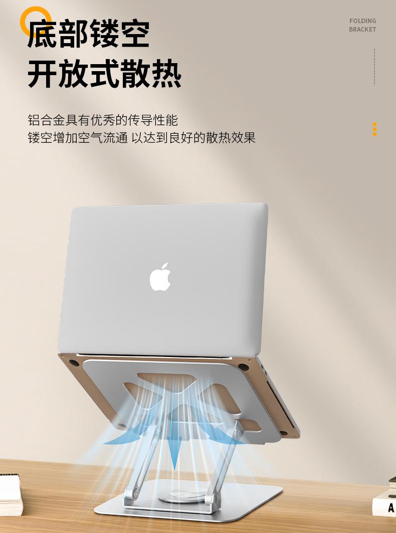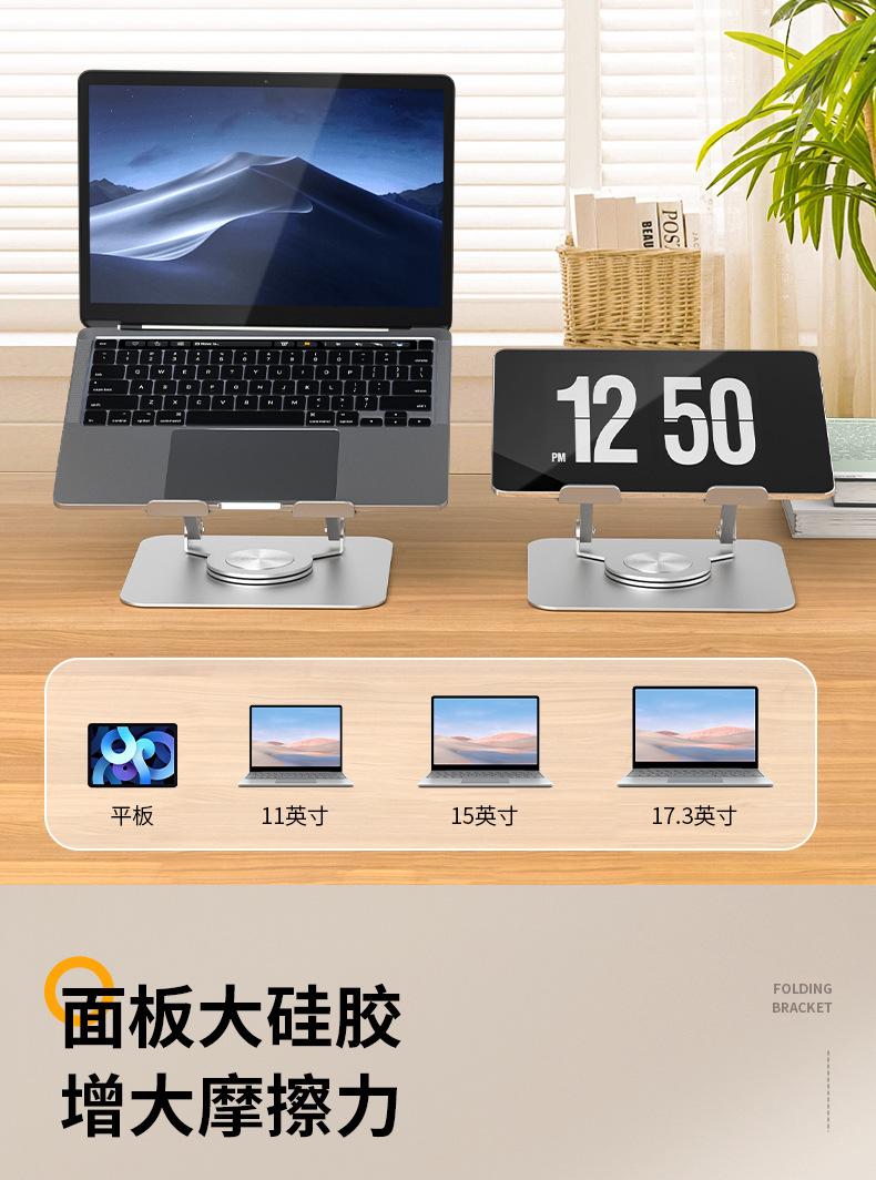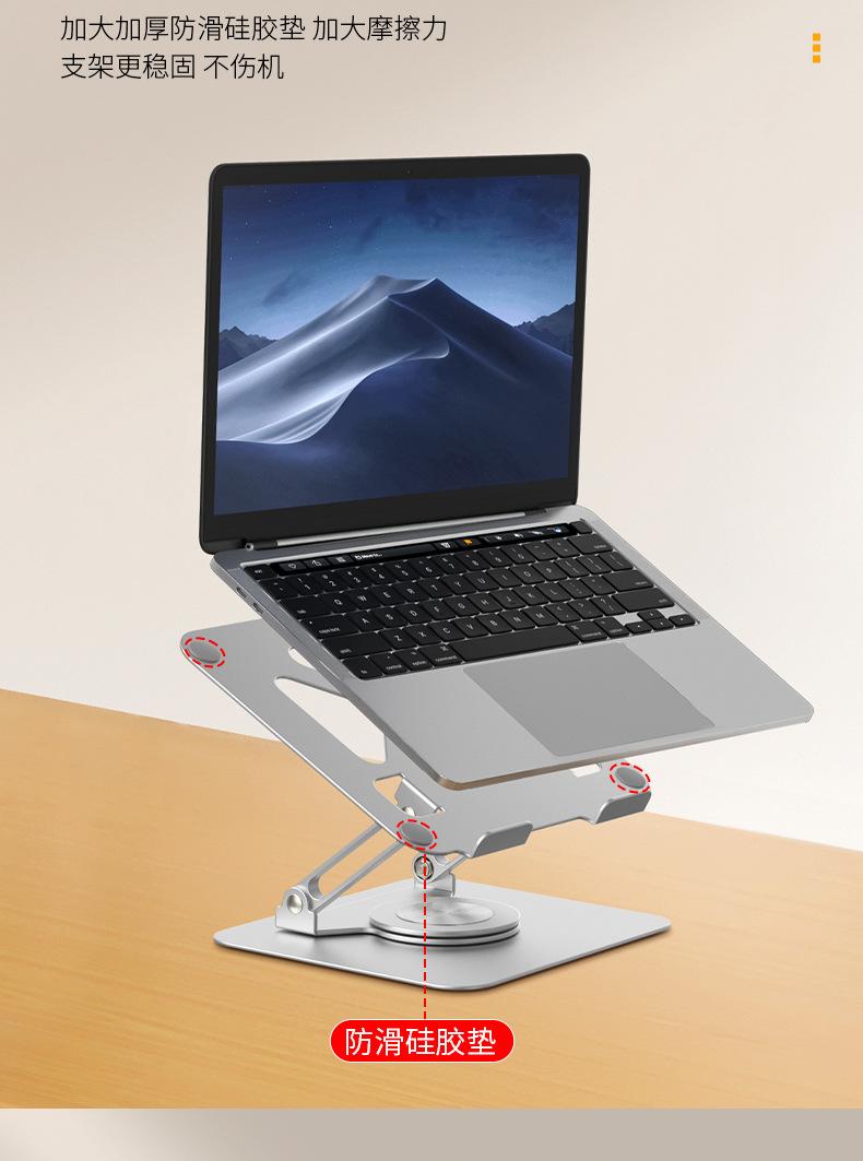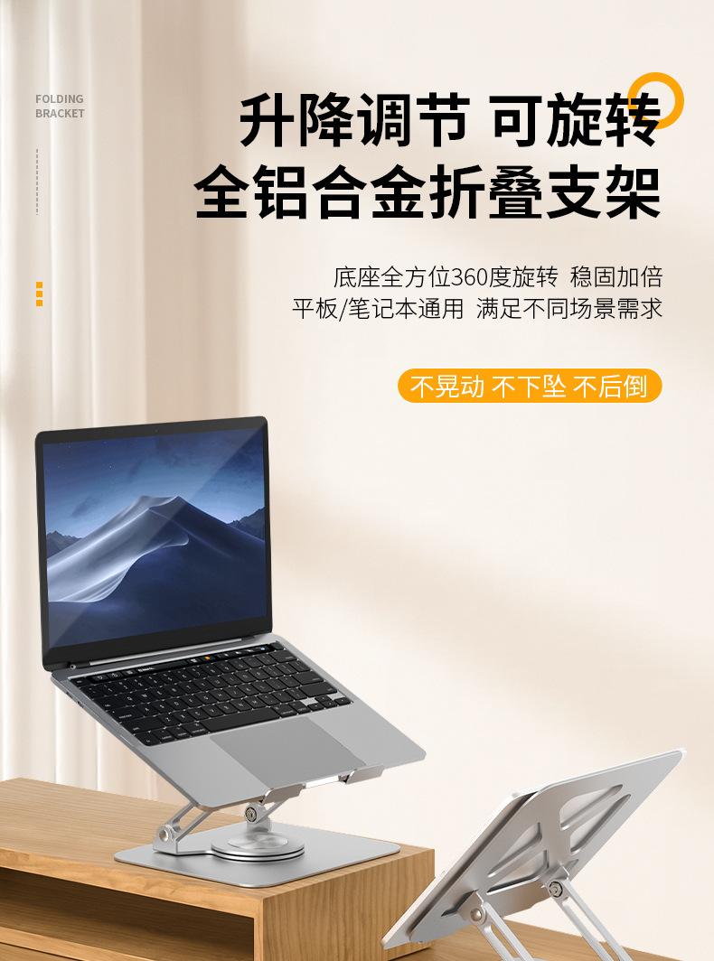 Suporte giratório de 360 graus para laptop, base de computador dobrável elevada de liga de alumínio portátil com dissipação de calor