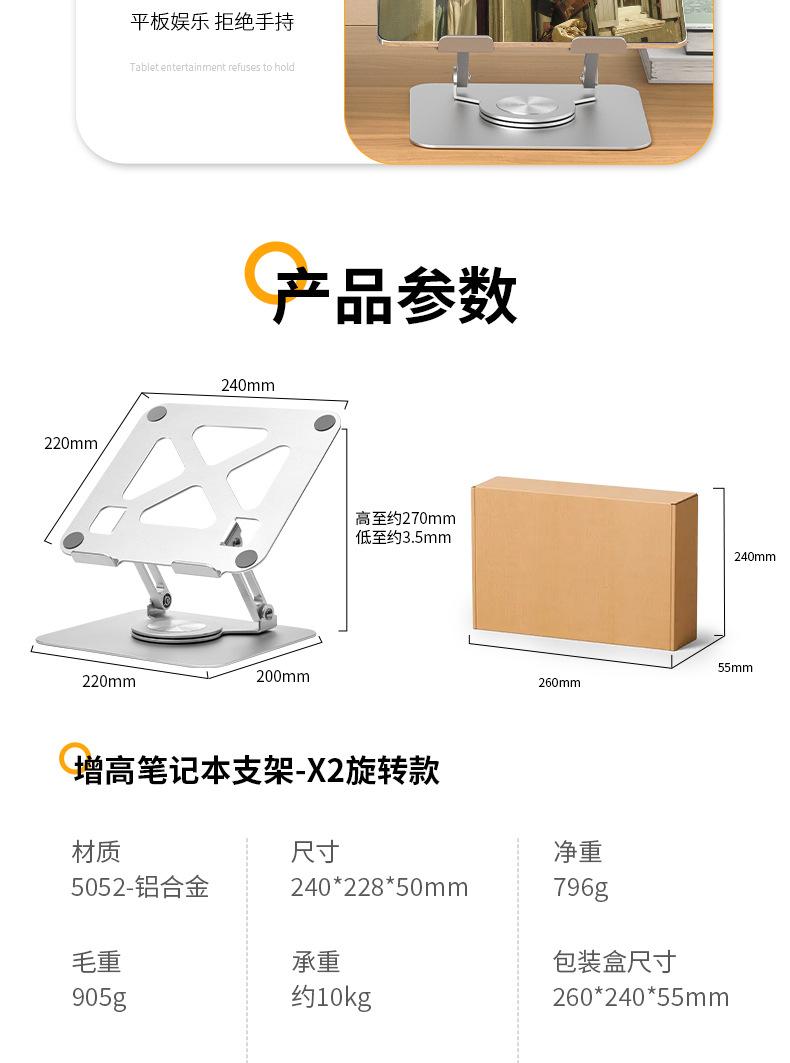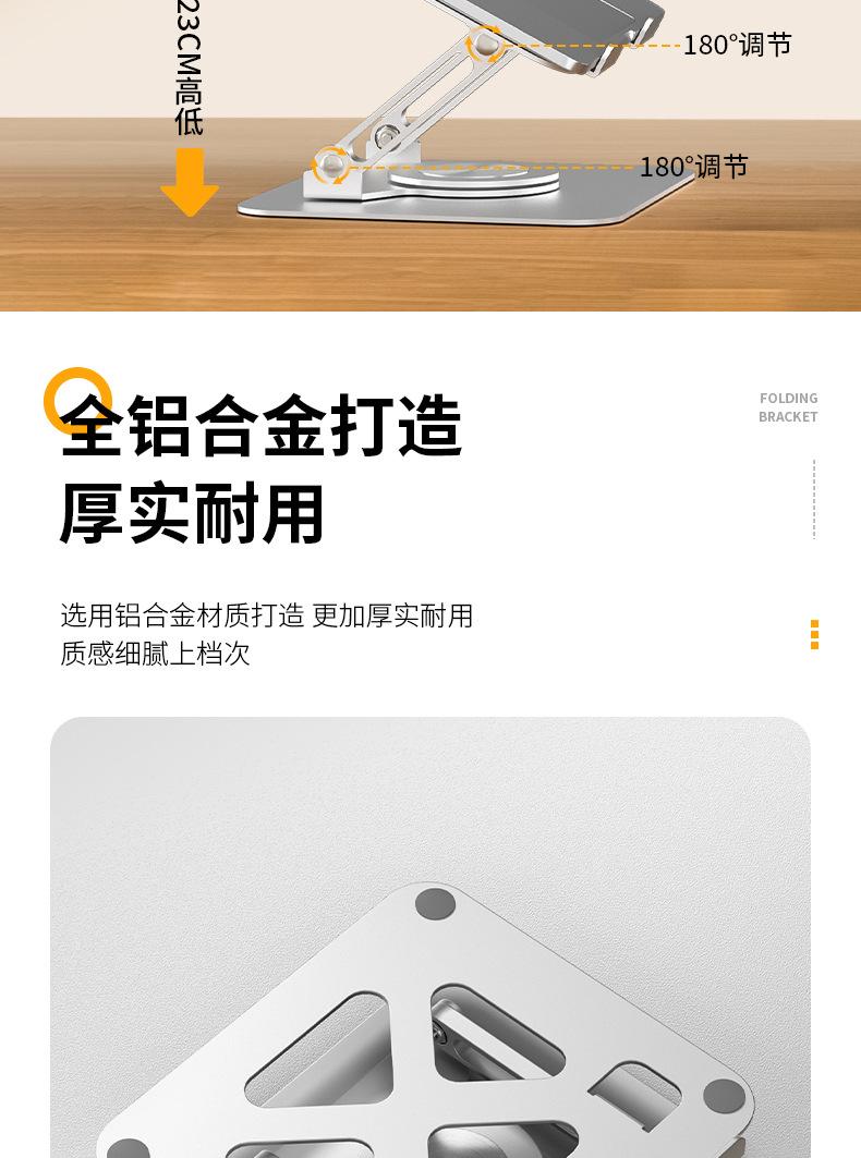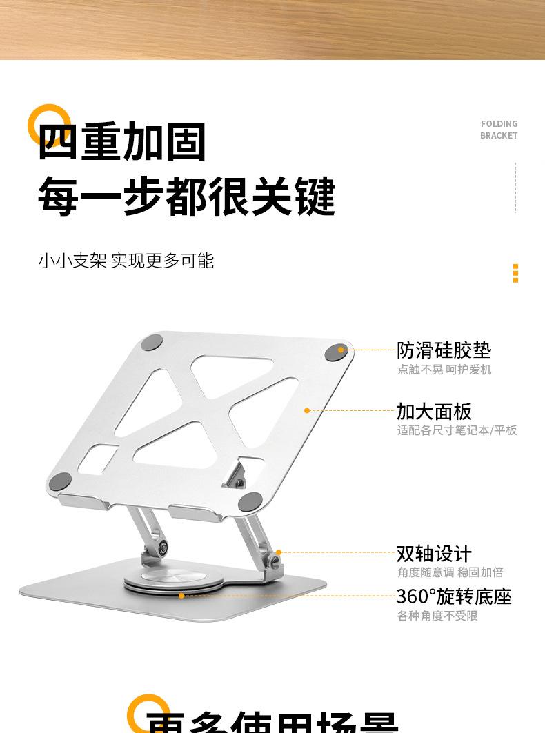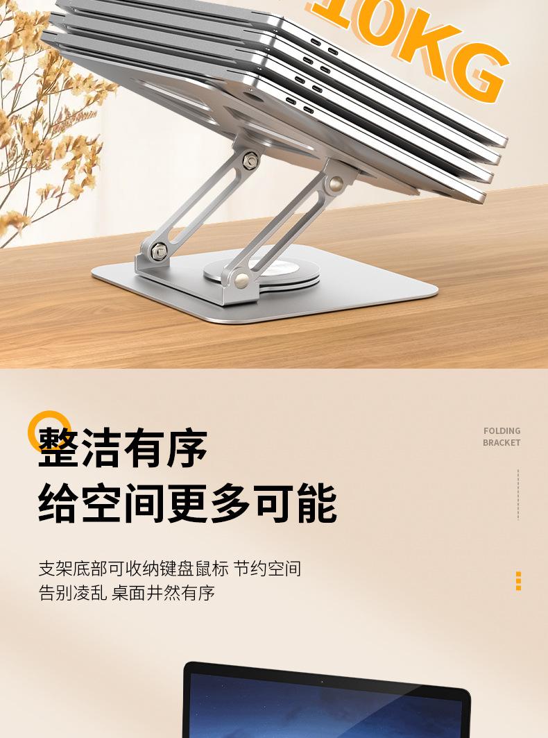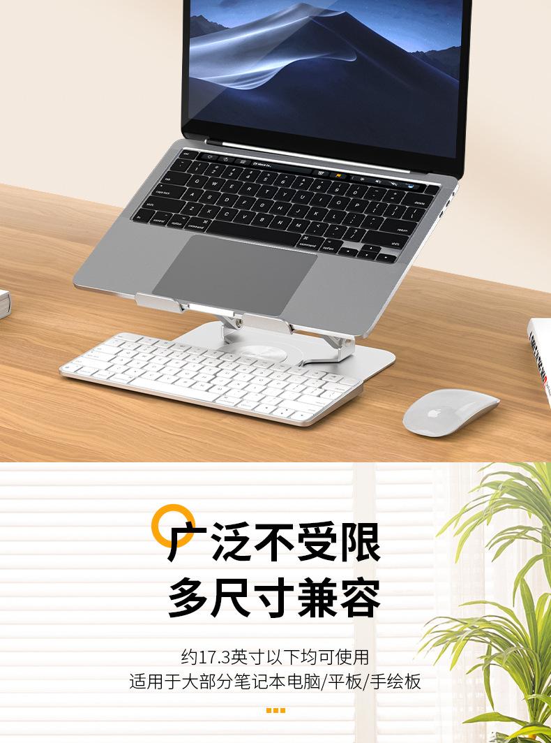 Suporte giratório de 360 graus para laptop, base de computador dobrável elevada de liga de alumínio portátil com dissipação de calor