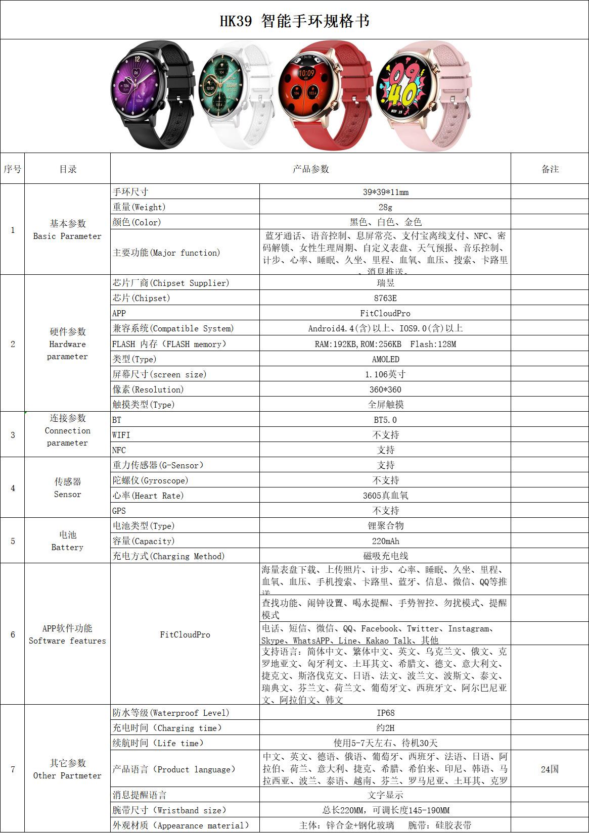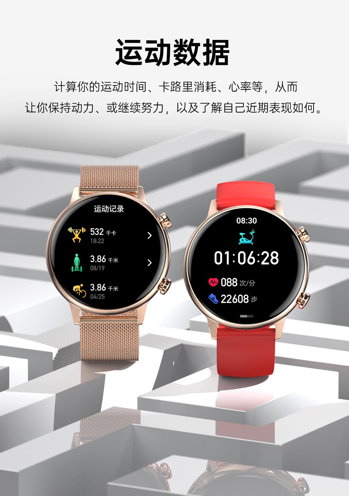 Blood pressure measurement, Bluetooth call, Smart Reminder, Remote control self-timer, Sleep monitoring, Blood oxygen test