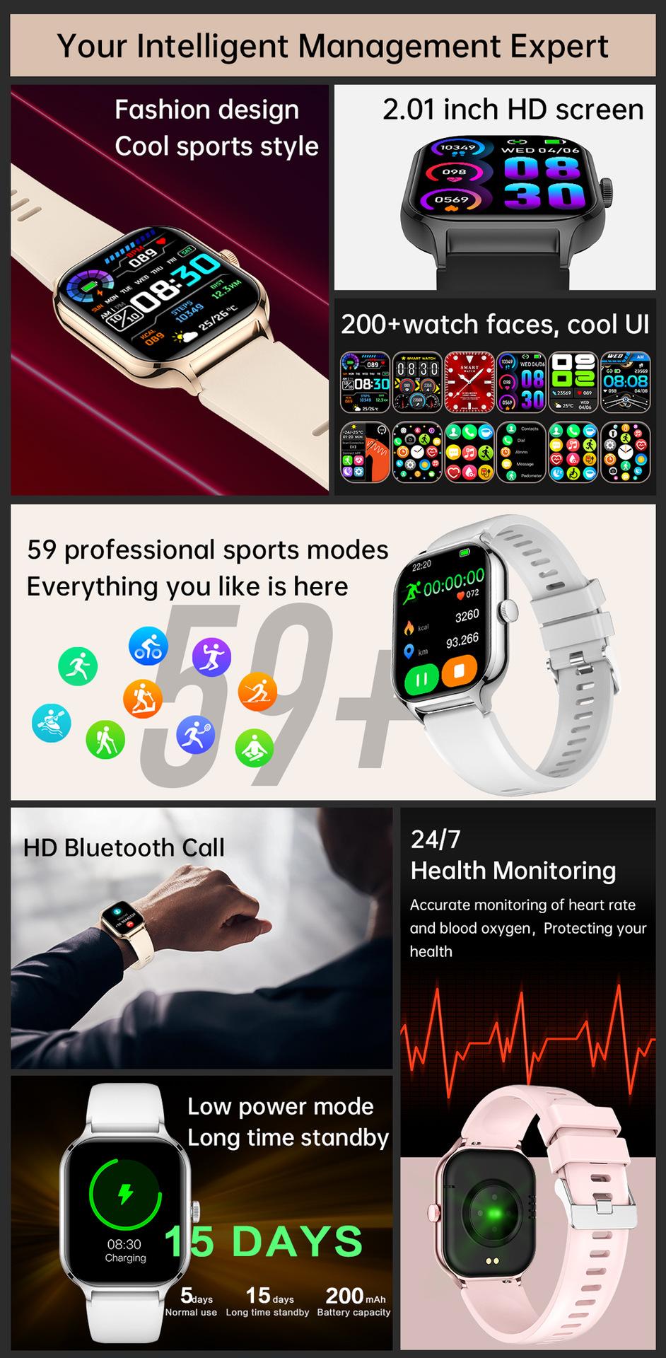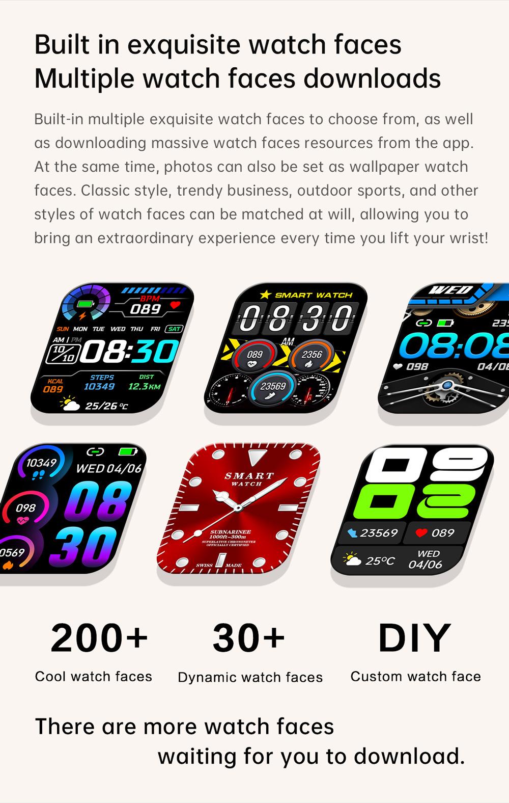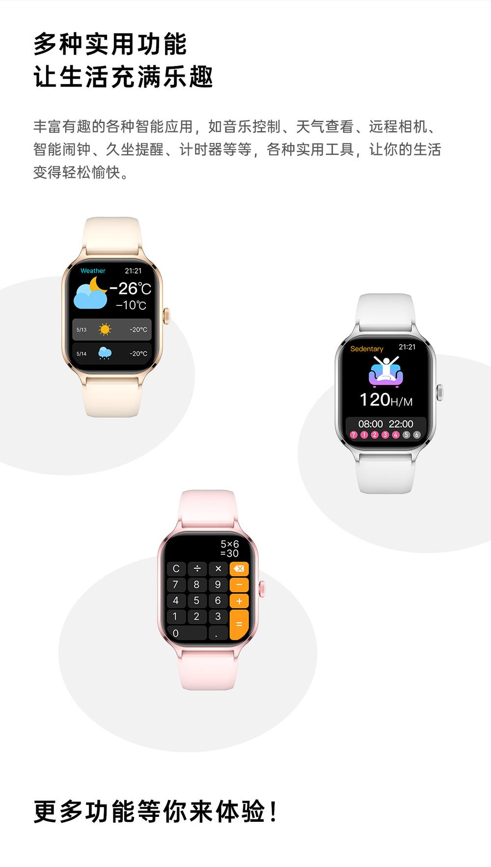 Step counting, Heart rate monitoring, Blood pressure measurement, Bluetooth call, Smart reminder, Remote contr...