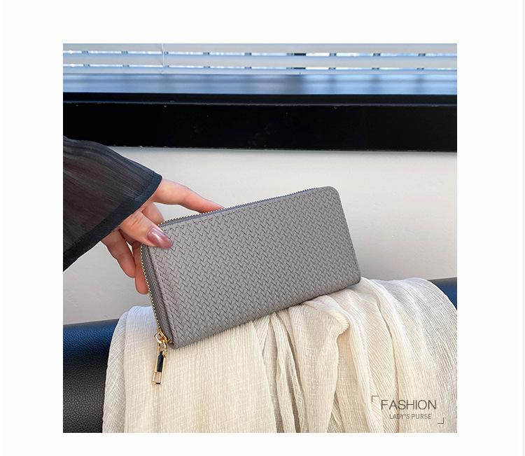 Nova carteira das mulheres longo zíper clutch bag estilo europeu e americano moda comércio exterior pu couro tecido carteira moeda carteira