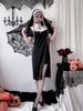 Fantasia de Halloween Vestido de Mulheres Vestido de Freiras Vampira Vestido Cruzado Vestido Gótico Escuro Cos Performance Dress