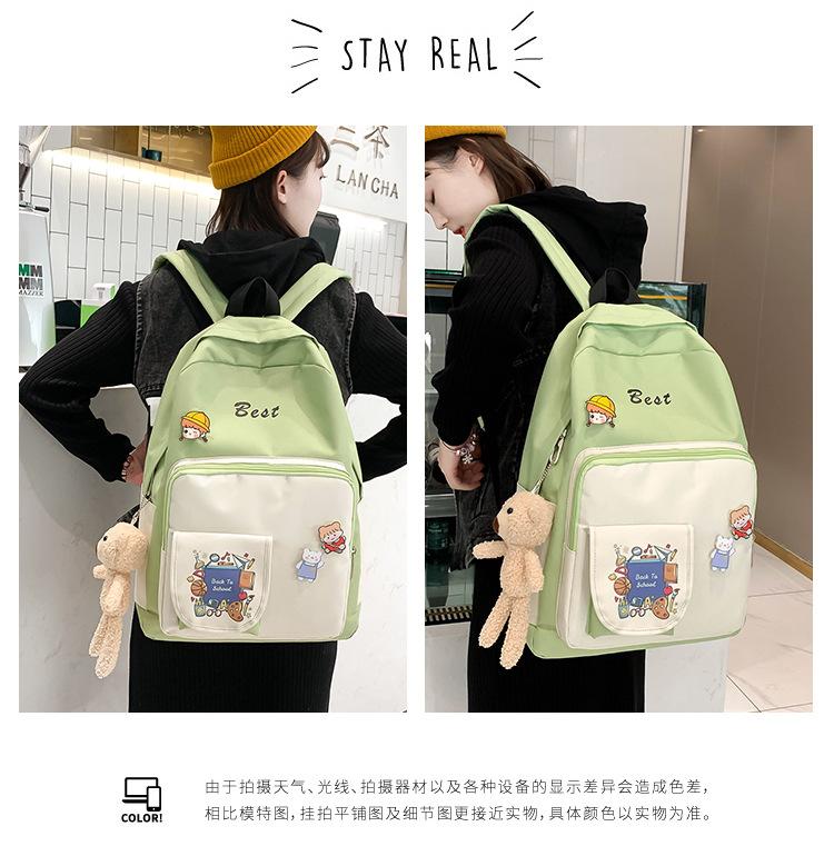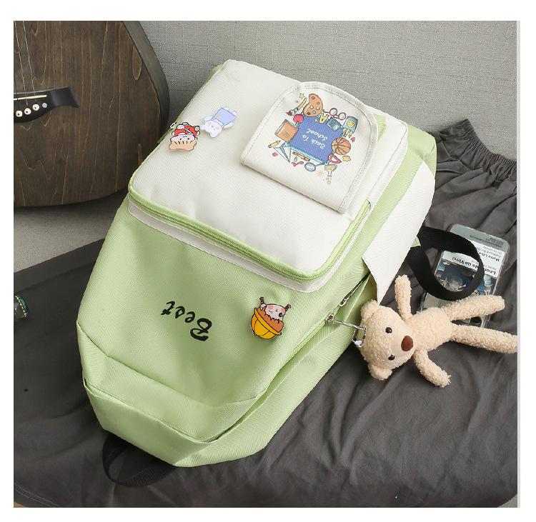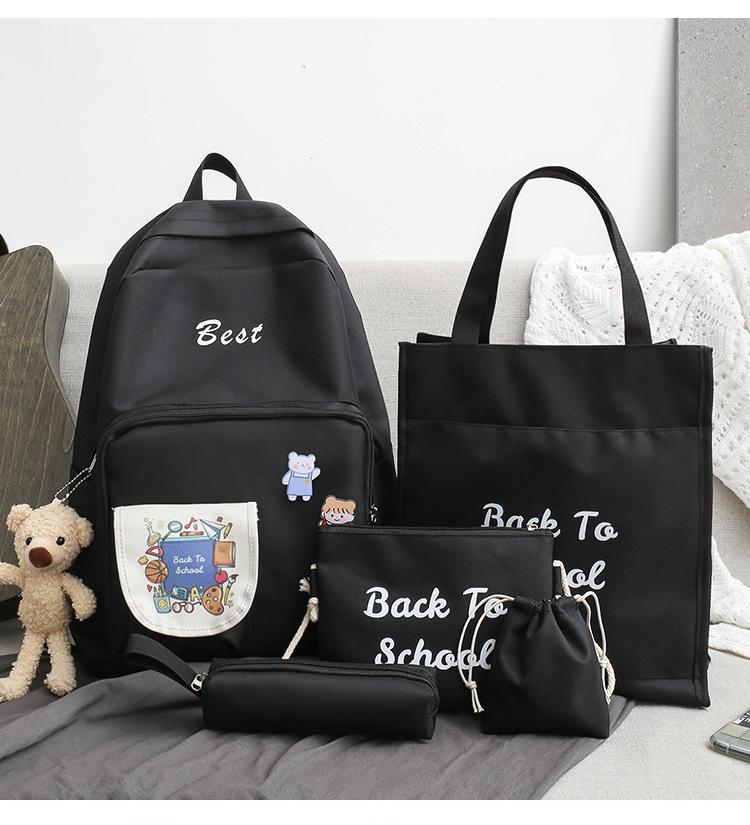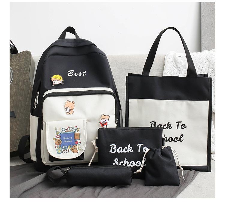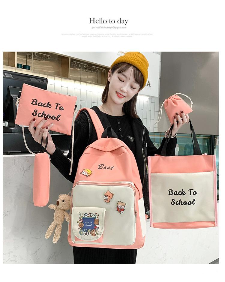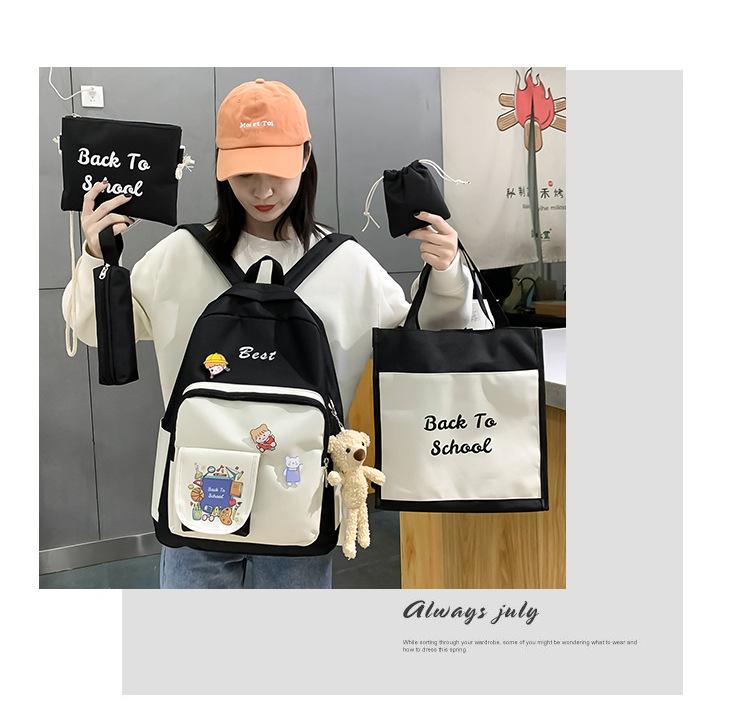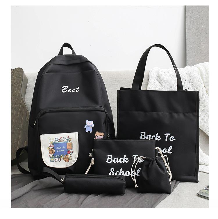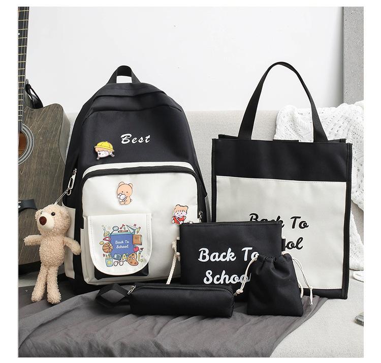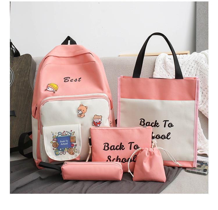 Schoolbag Mulheres Novo Estilo Coreano bonito estilo fresco Junior High School Estudante Campus Mochila feminina de cinco peças Mochila Personalizada
