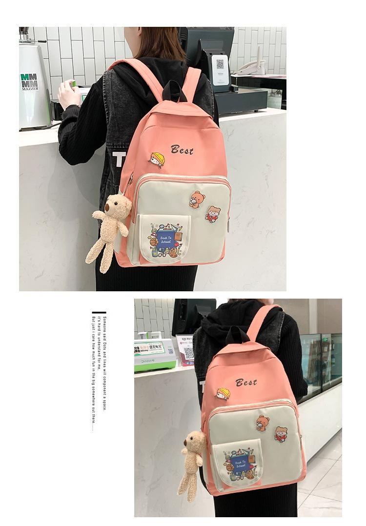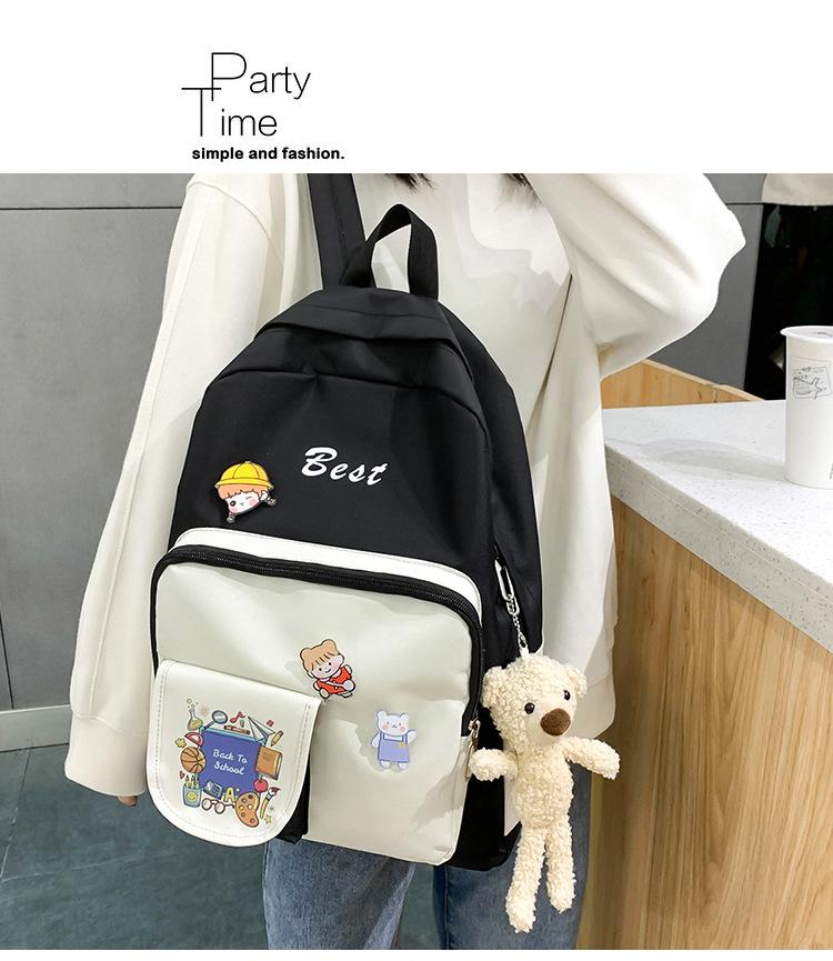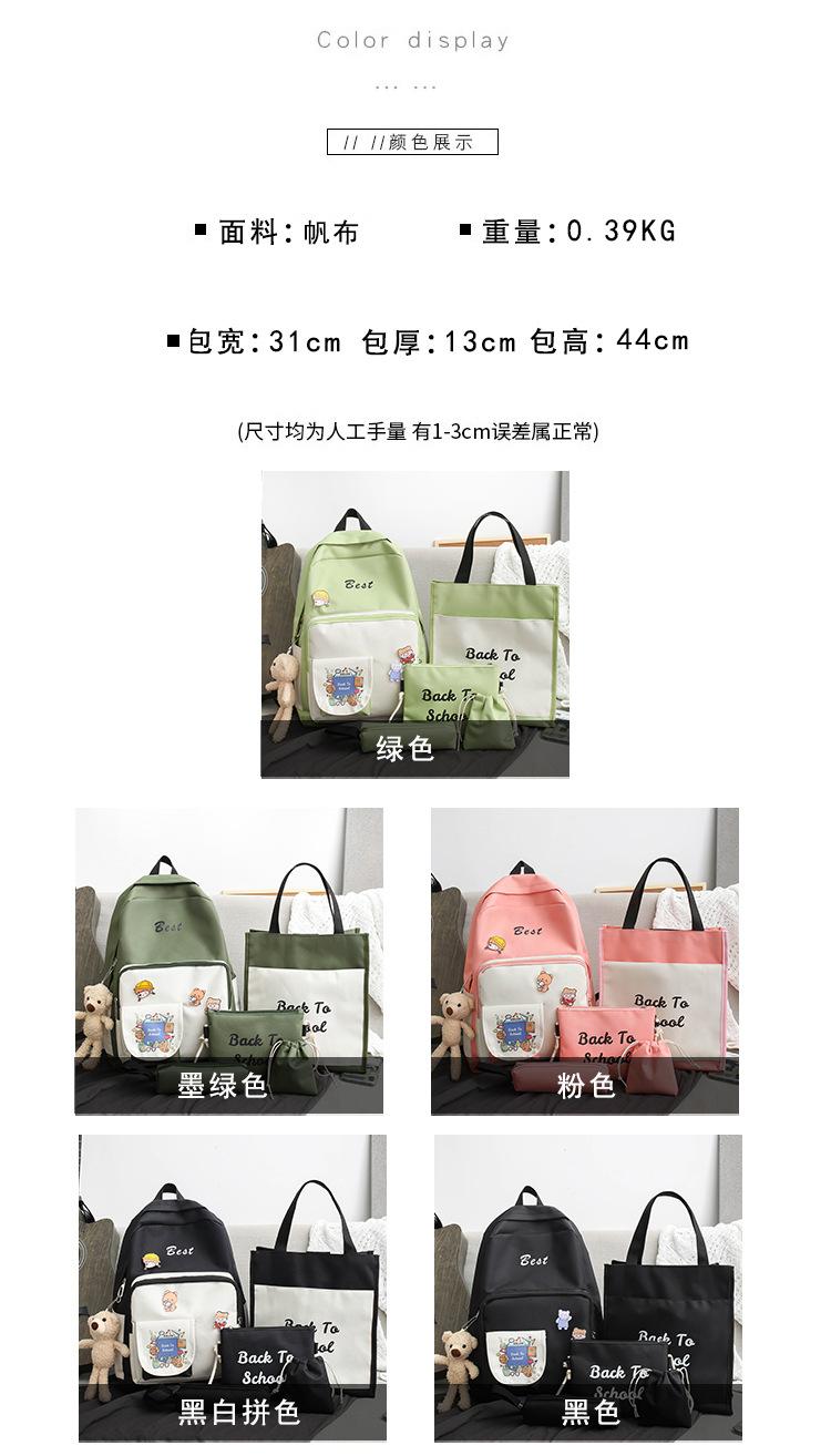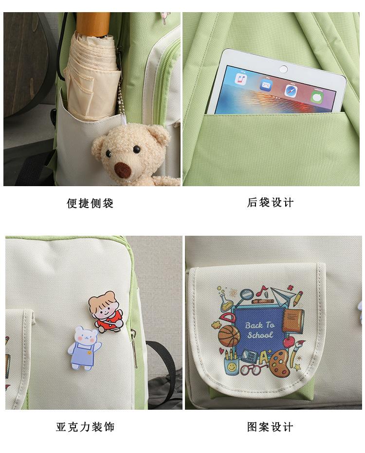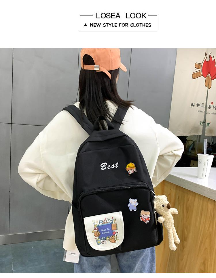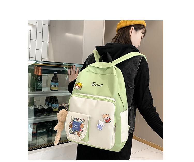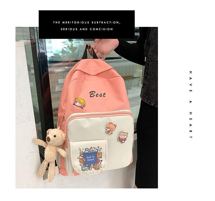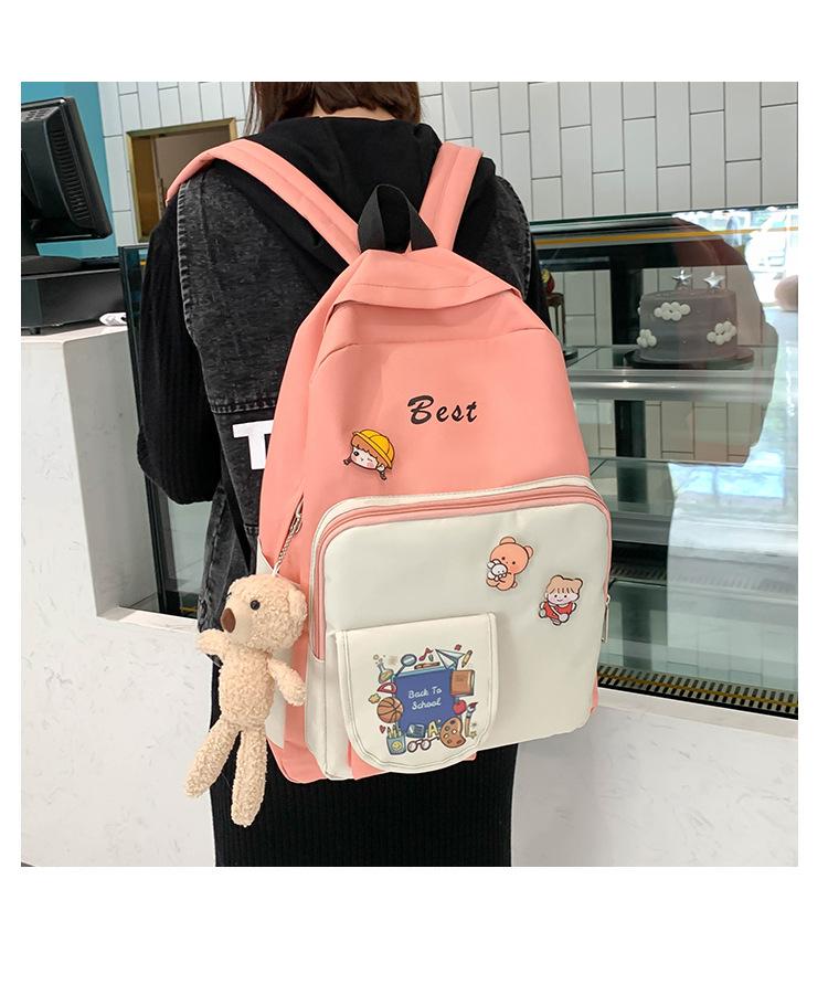 Schoolbag Mulheres Novo Estilo Coreano bonito estilo fresco Junior High School Estudante Campus Mochila feminina de cinco peças Mochila Personalizada