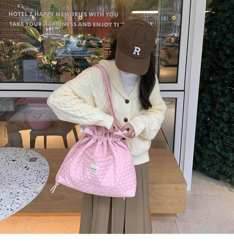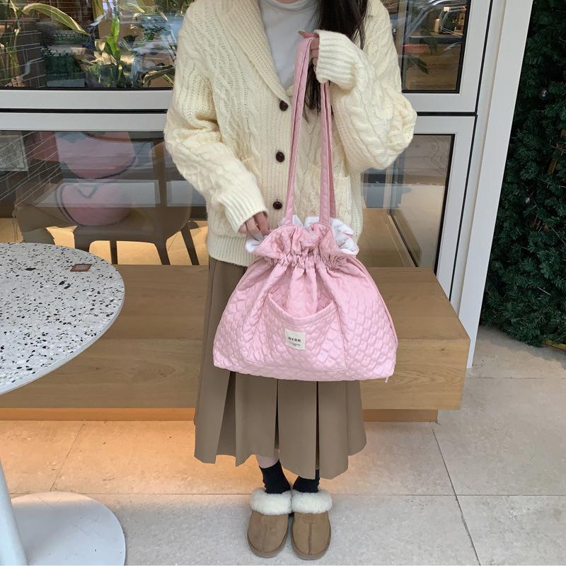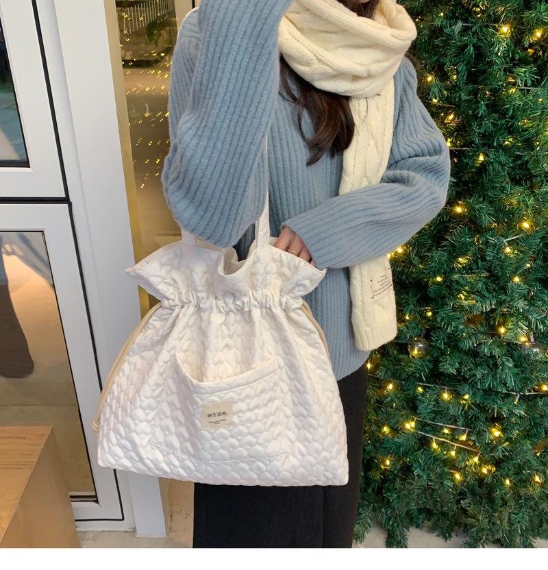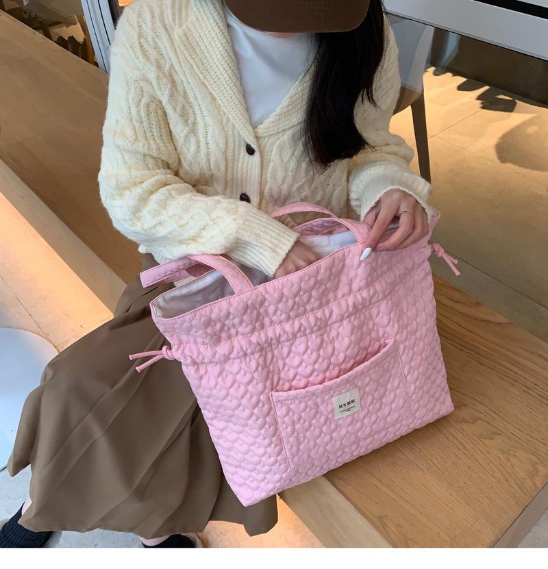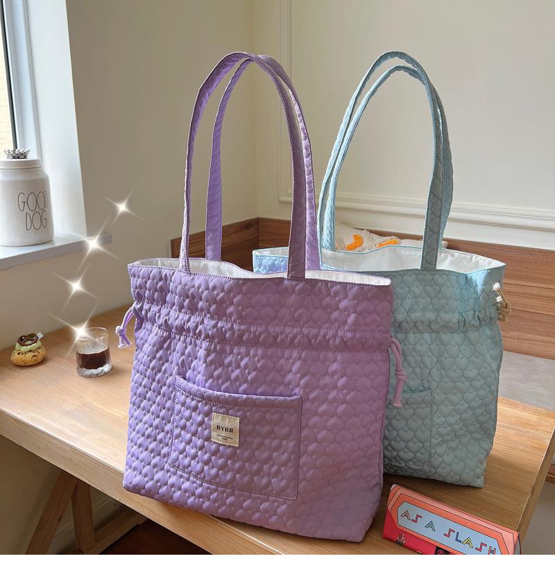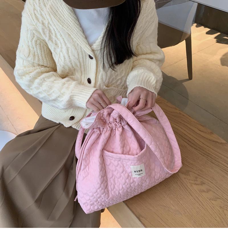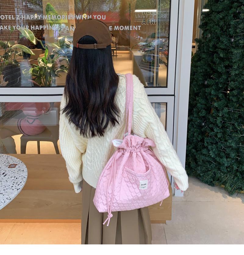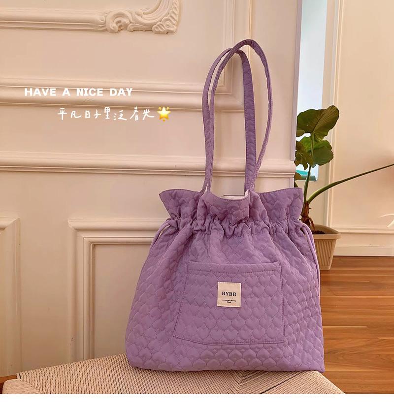 Beige BYBR Quilted Love Drawstring Shoulder, Pink BYBR quilted love drawstring shoulder, Purple BYBR quilted l...