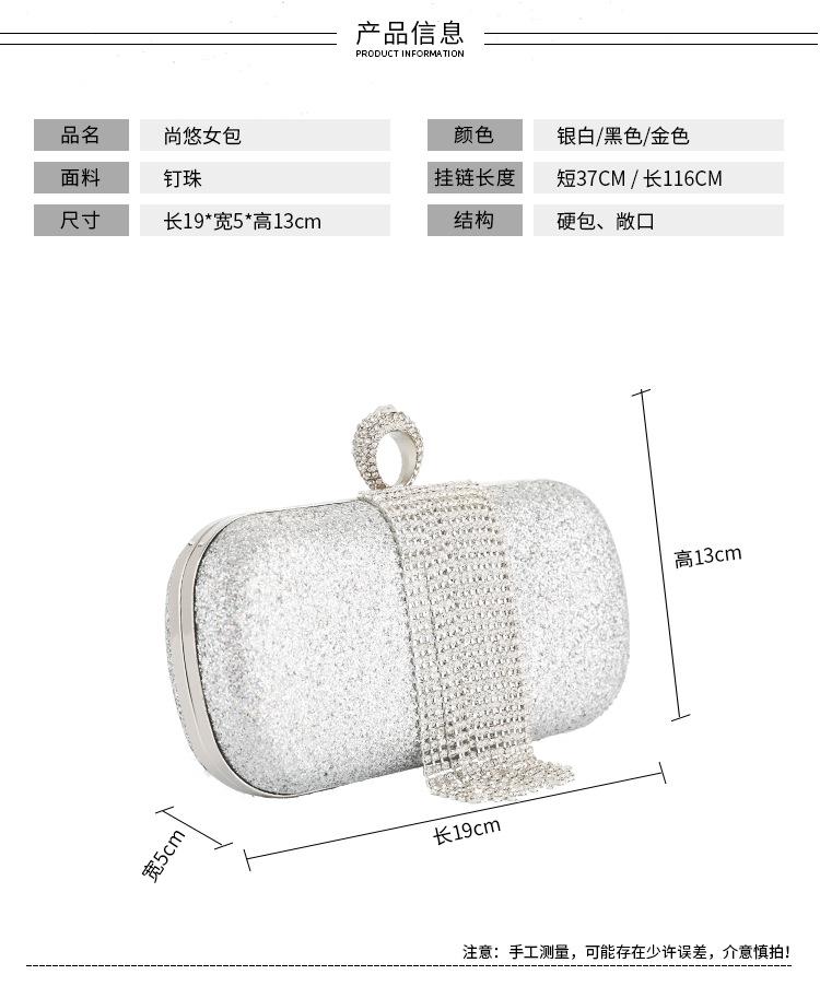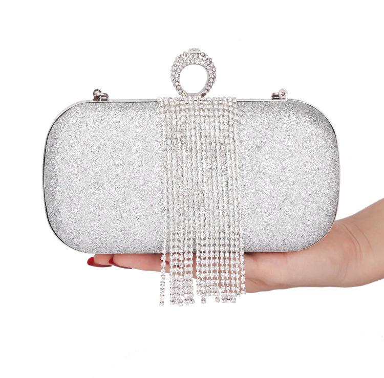 Novo Cross-border Tassel Evening Bag Mulheres incrustado de diamante Banquetes Bag Vestido Cheongsam Clutch Bag Shoulder Crossbody Bag Evening Bag