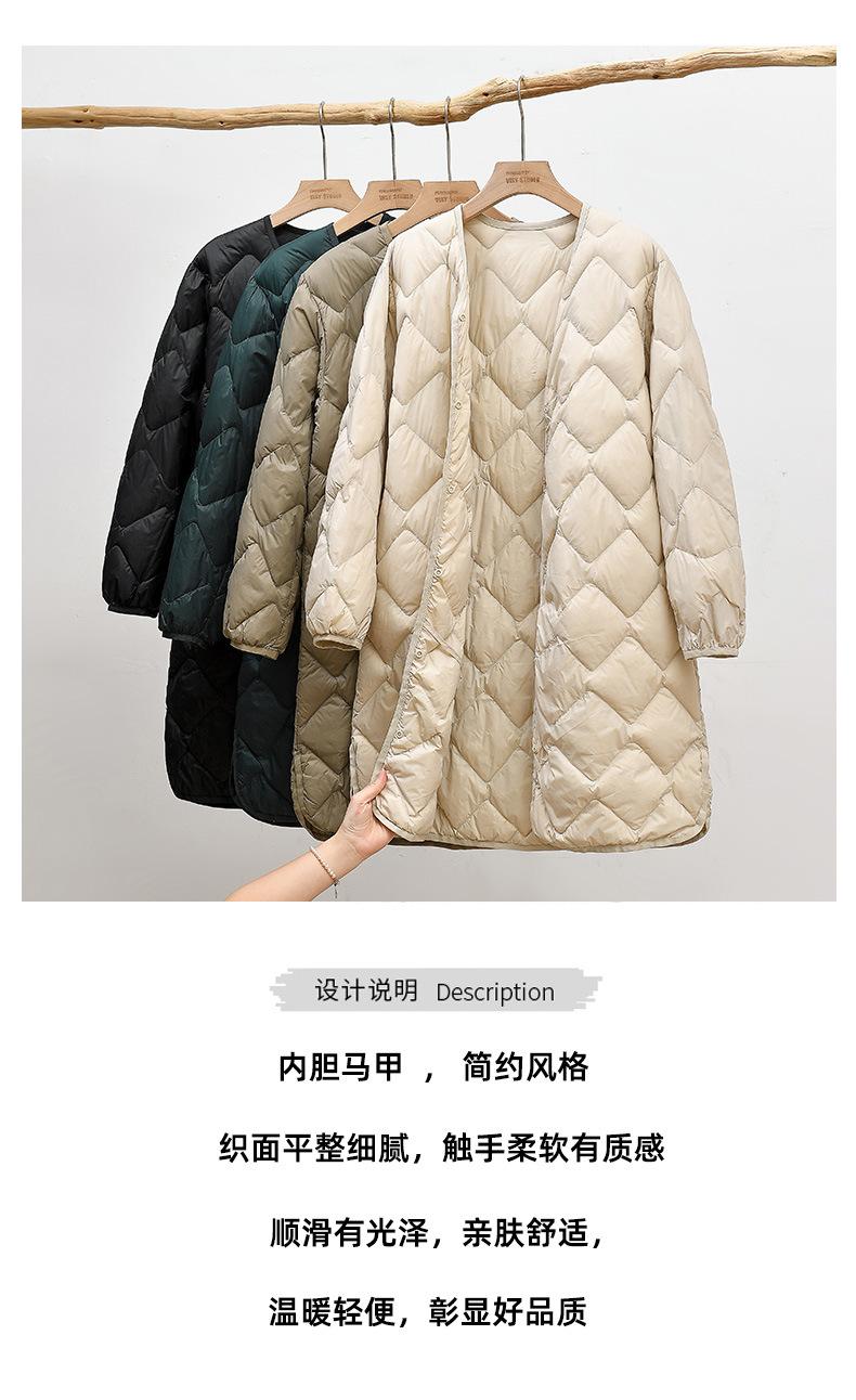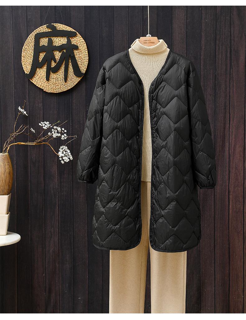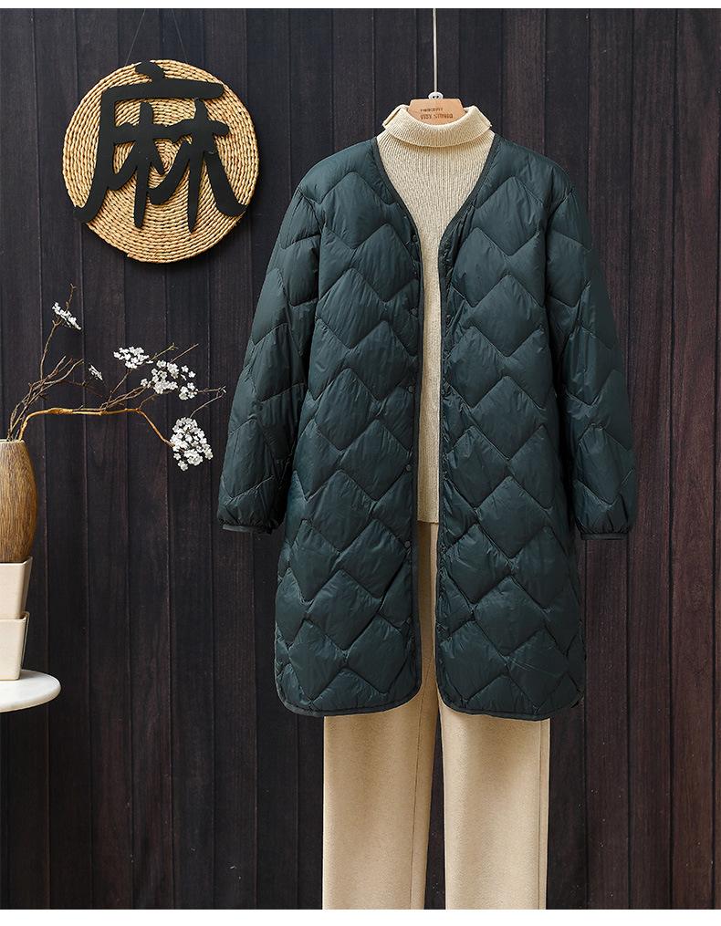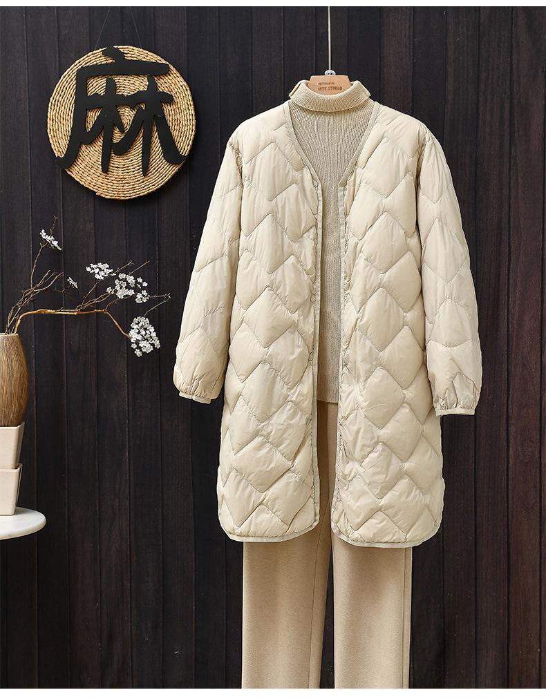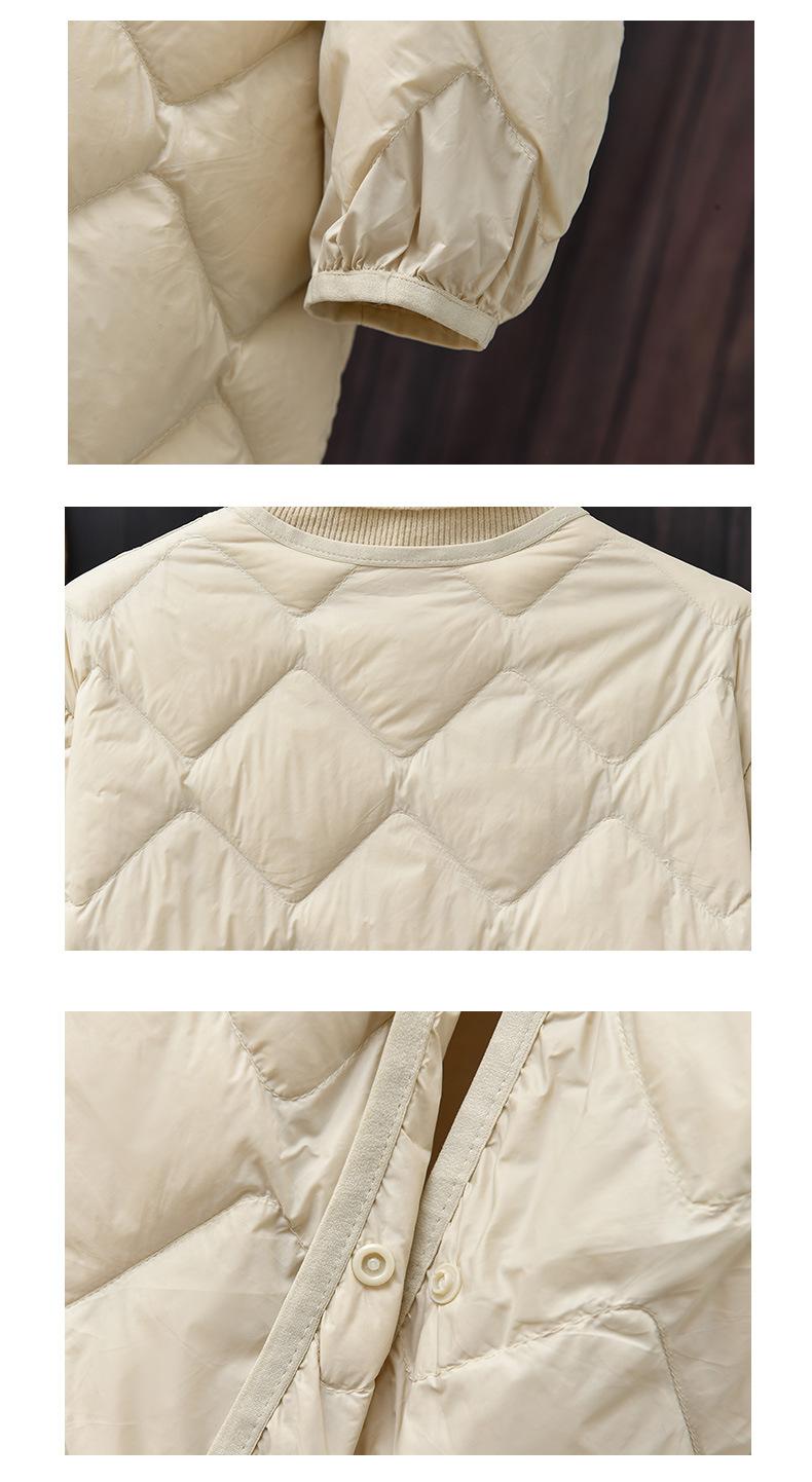 2024 Novo Casaco Leve de Penas Leves Jaqueta Feminina de Comprimento Médio Forro com Xadrez Diamante Penas de Pato Branco Jaqueta Quente Inverno