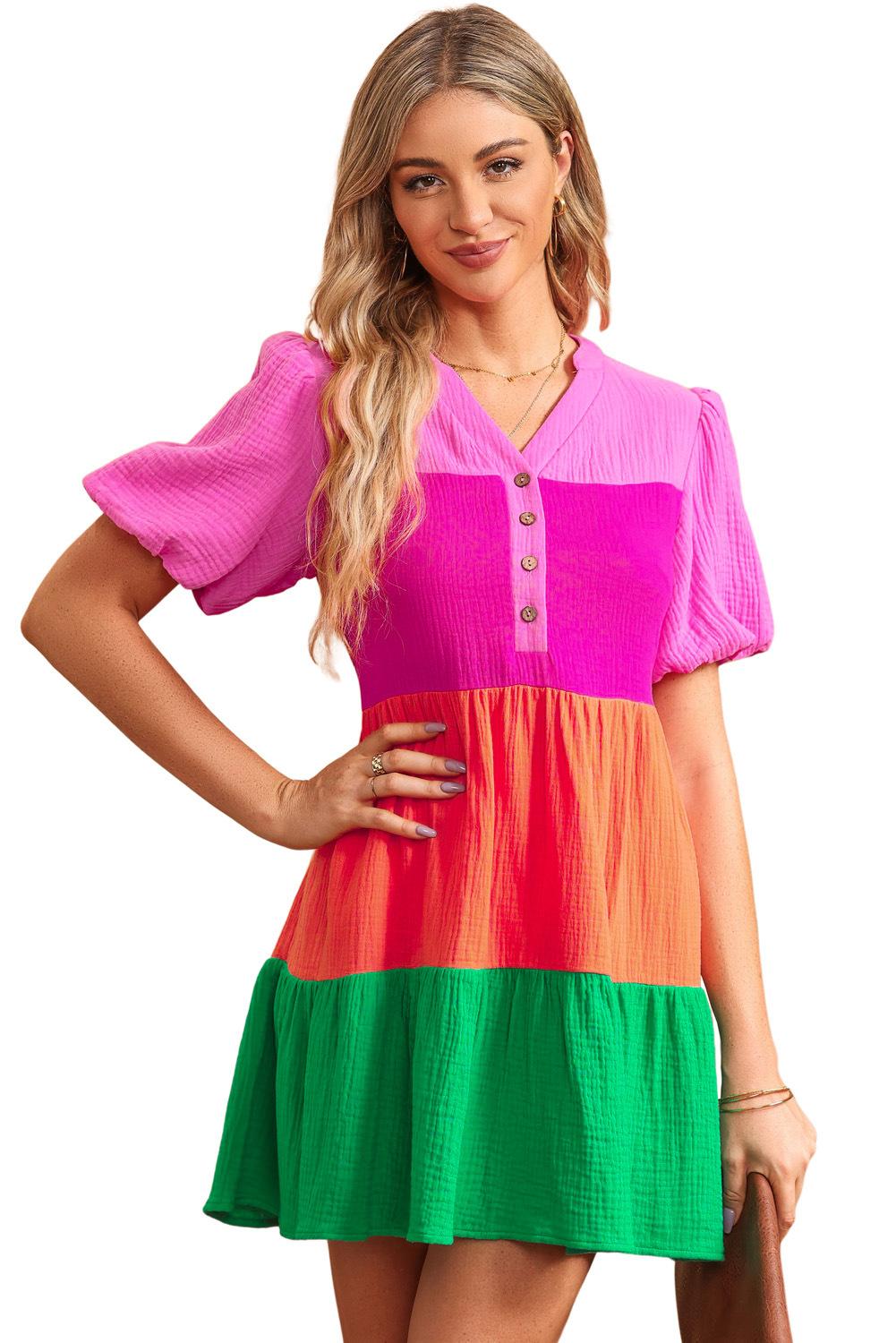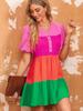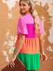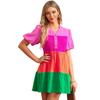 Compre Vestido de Manga Curta com Emenda de Cores Contrastantes Europeu e Americano Fino 2025 Verão Novo Ajuste Slim Manga Média Saia na Altura do Joelho para Mulheres no atacado no Joom.pro