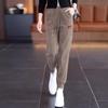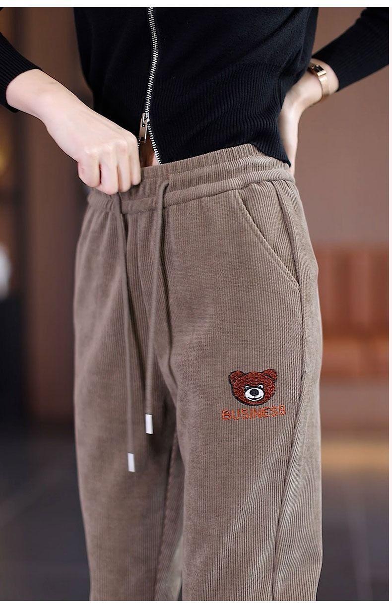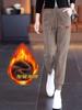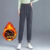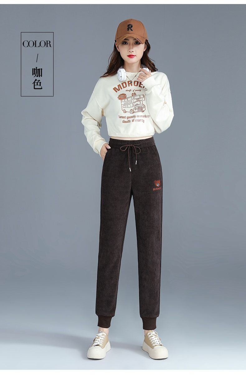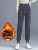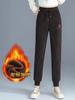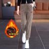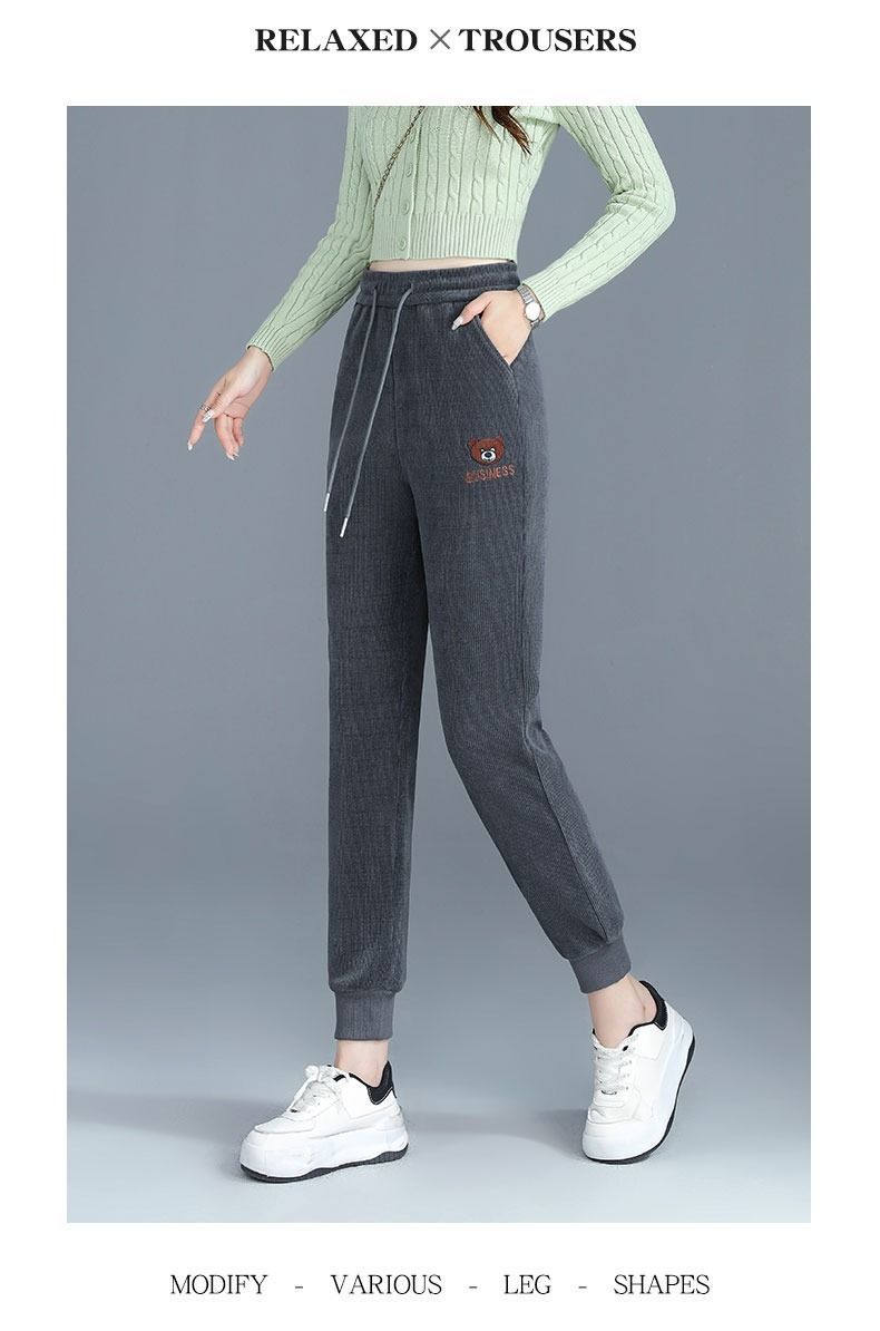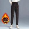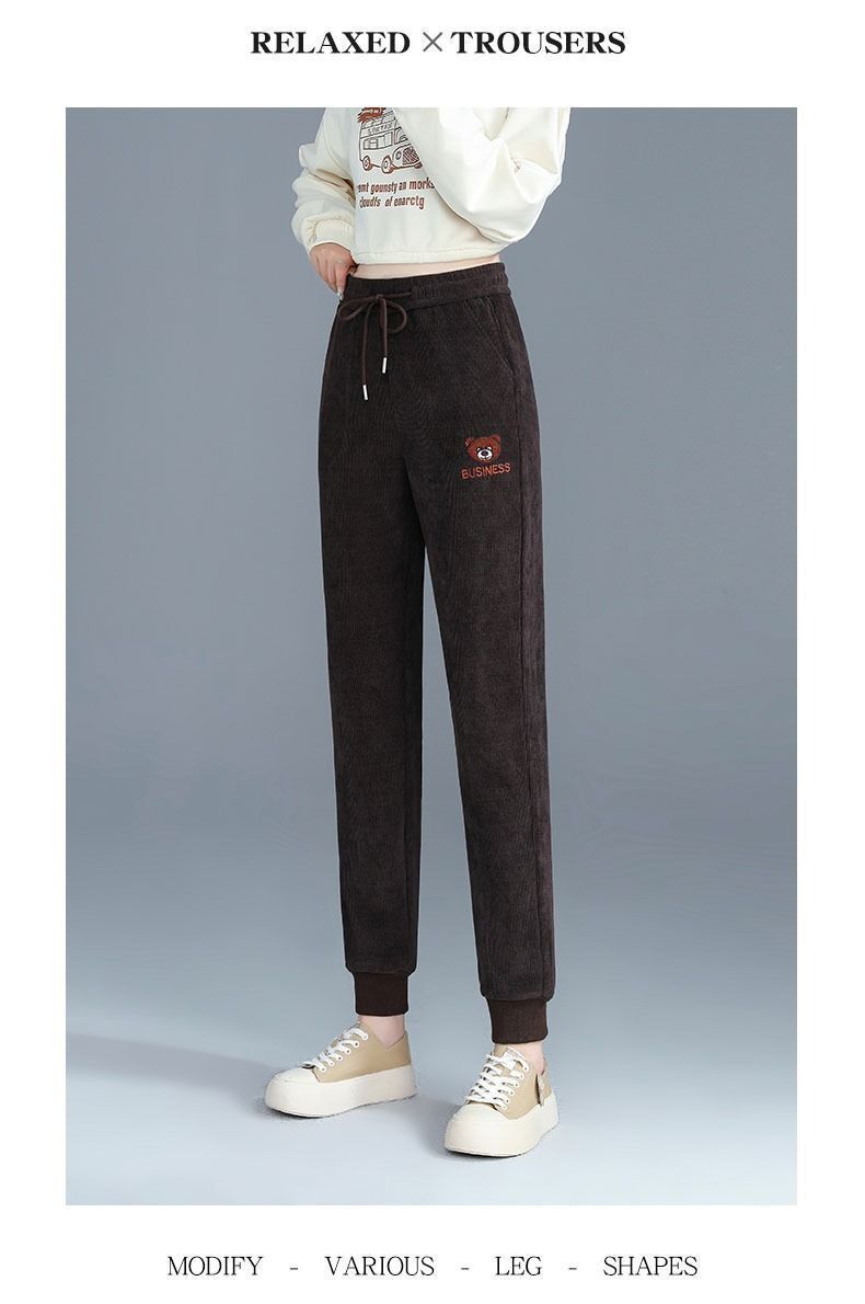 Calça engrossada forrada de lã Calças femininas outono e inverno Nova calça harém cintura alta bordada calça toda empatada no tornozelo calça folgada emagrecedora calça casual