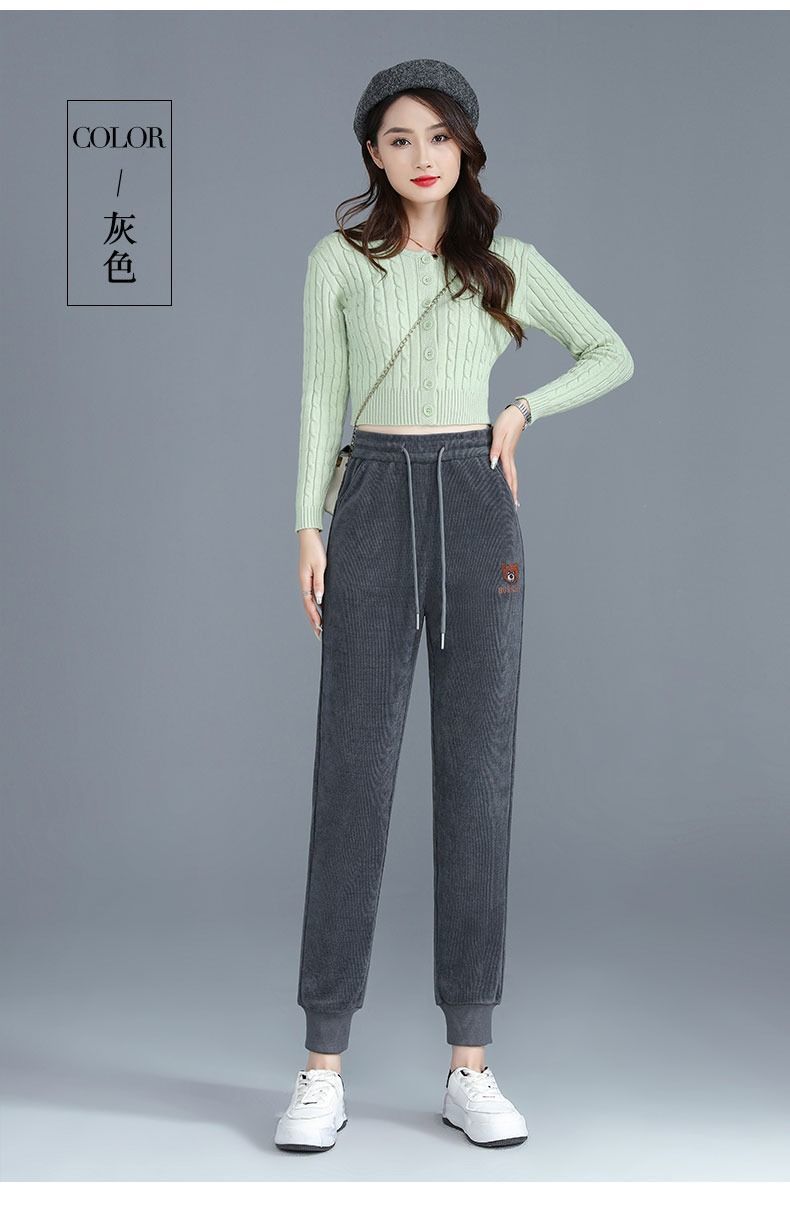 Compre Calça engrossada forrada de lã Calças femininas outono e inverno Nova calça harém cintura alta bordada calça toda empatada no tornozelo calça folgada emagrecedora calça casual no atacado no Joom.pro