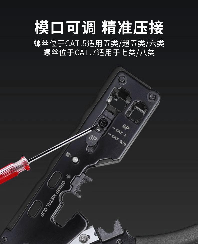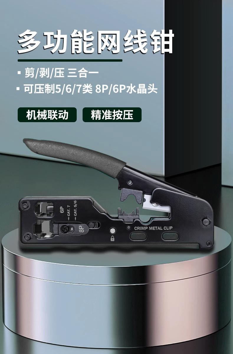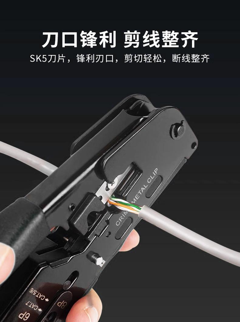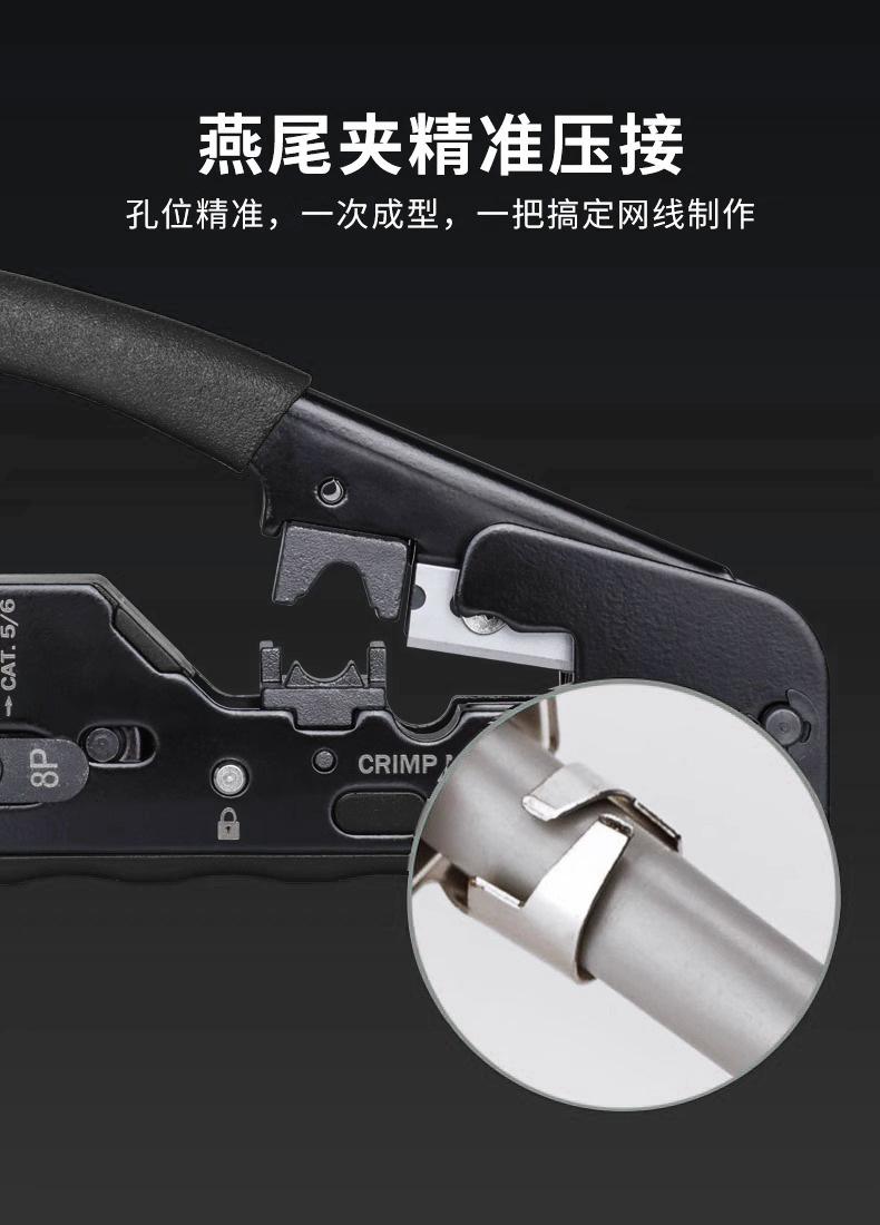 Alicate para Cabo de Rede Categoria 7, Mecânico Multifuncional de Alta Qualidade Categoria 6E Garra Rabo de Andorinha, Alicate de Crimpagem para Cabeça Cristal de Rede Passante