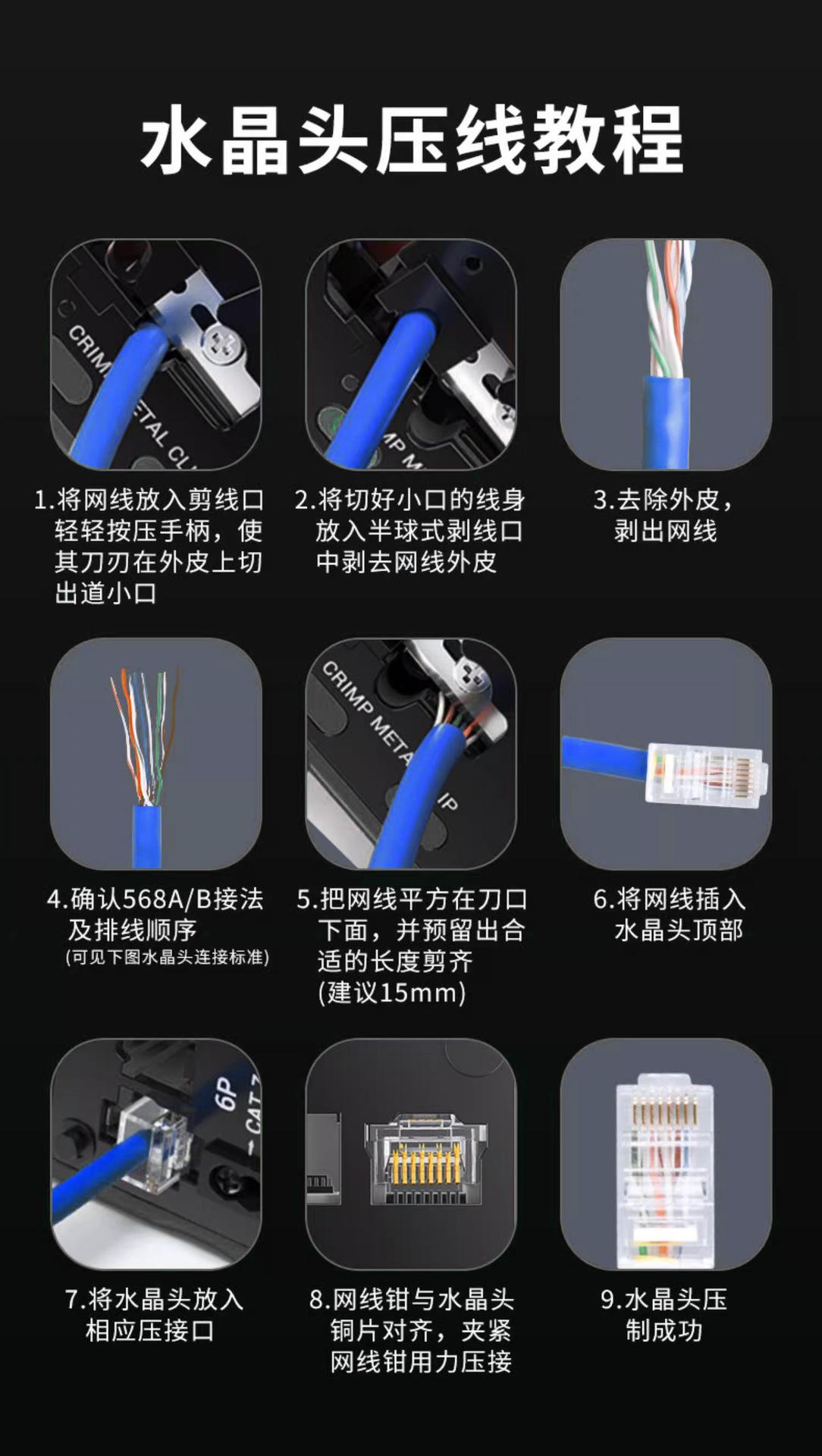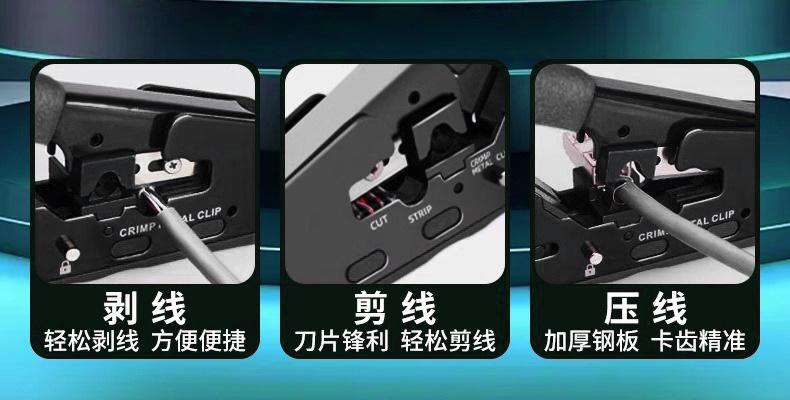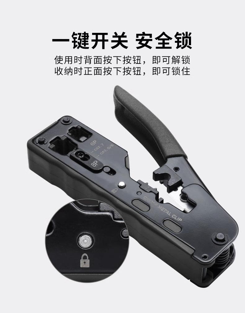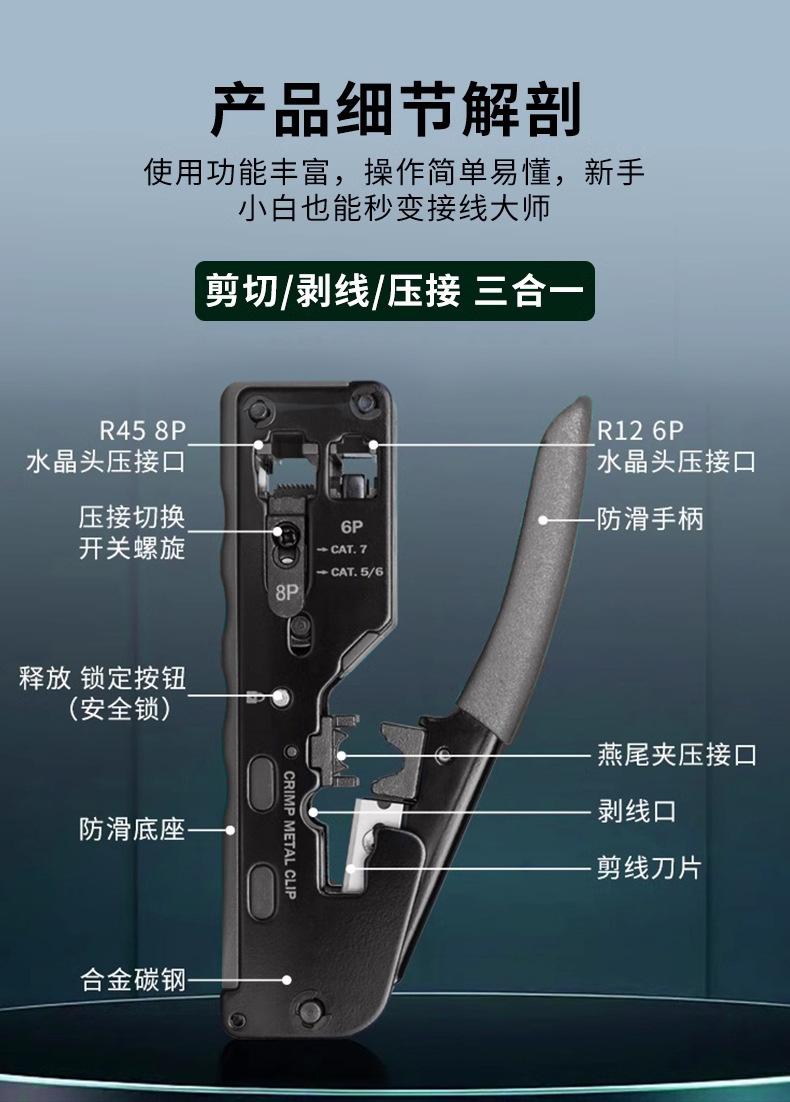 Alicate para Cabo de Rede Categoria 7, Mecânico Multifuncional de Alta Qualidade Categoria 6E Garra Rabo de Andorinha, Alicate de Crimpagem para Cabeça Cristal de Rede Passante