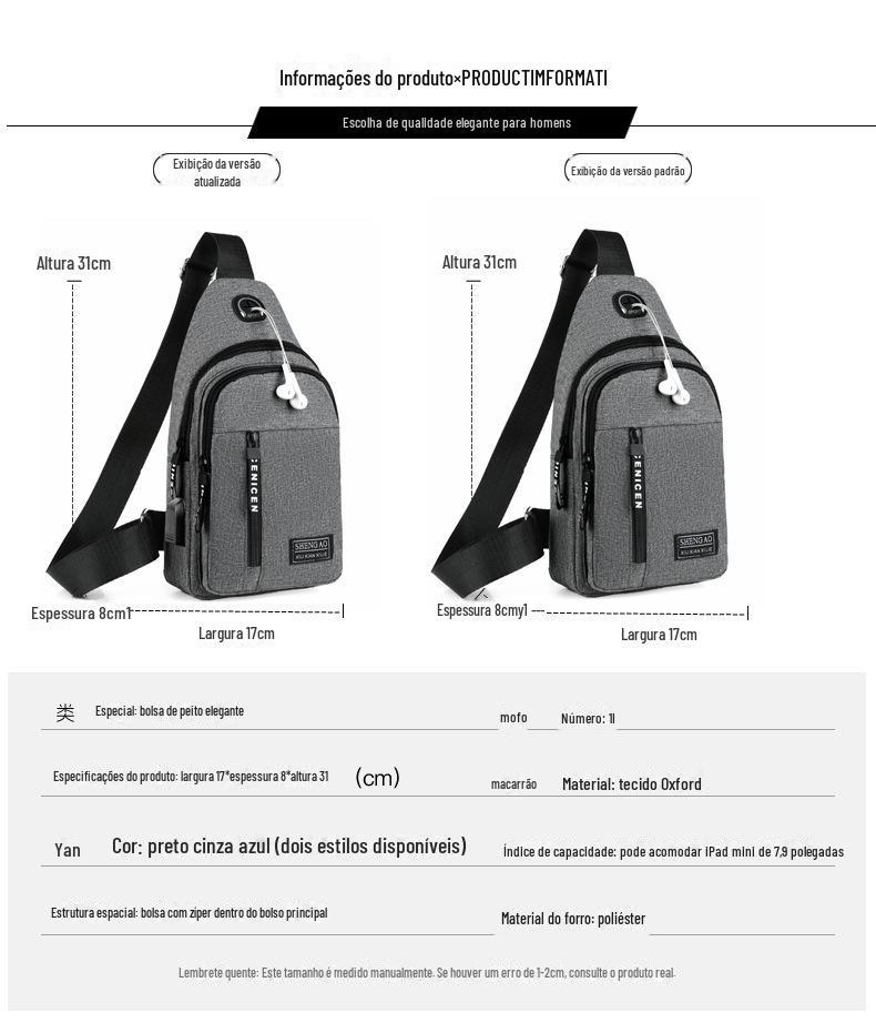 2023 Nova chegada homens Oxford saco peito pano multifuncional esportes ao ar livre Lazer saco de ombro Crossbody Bag