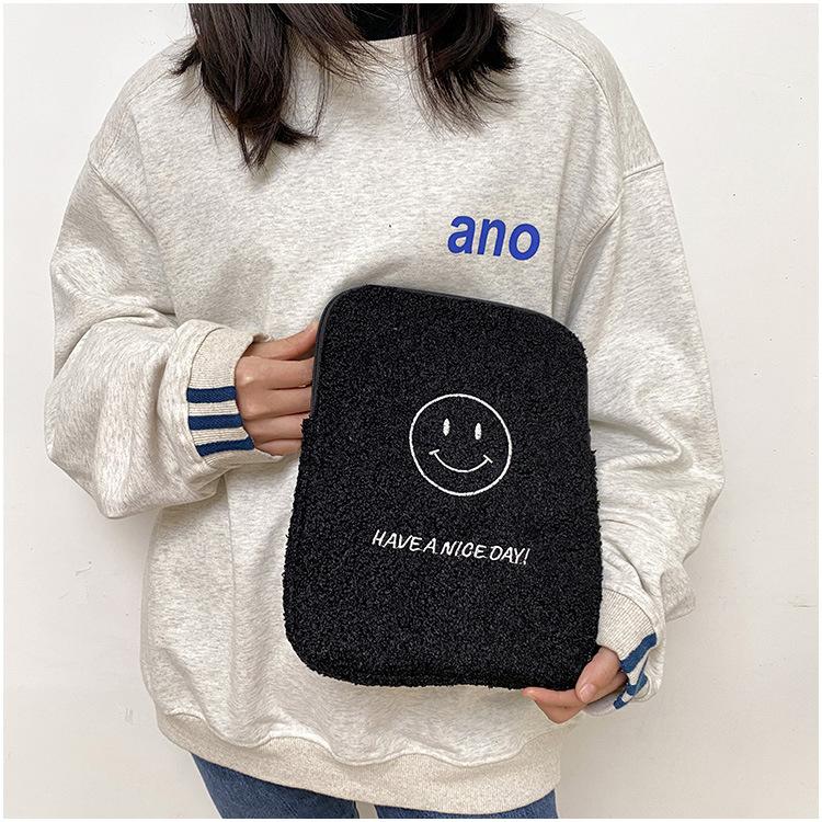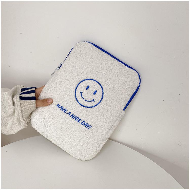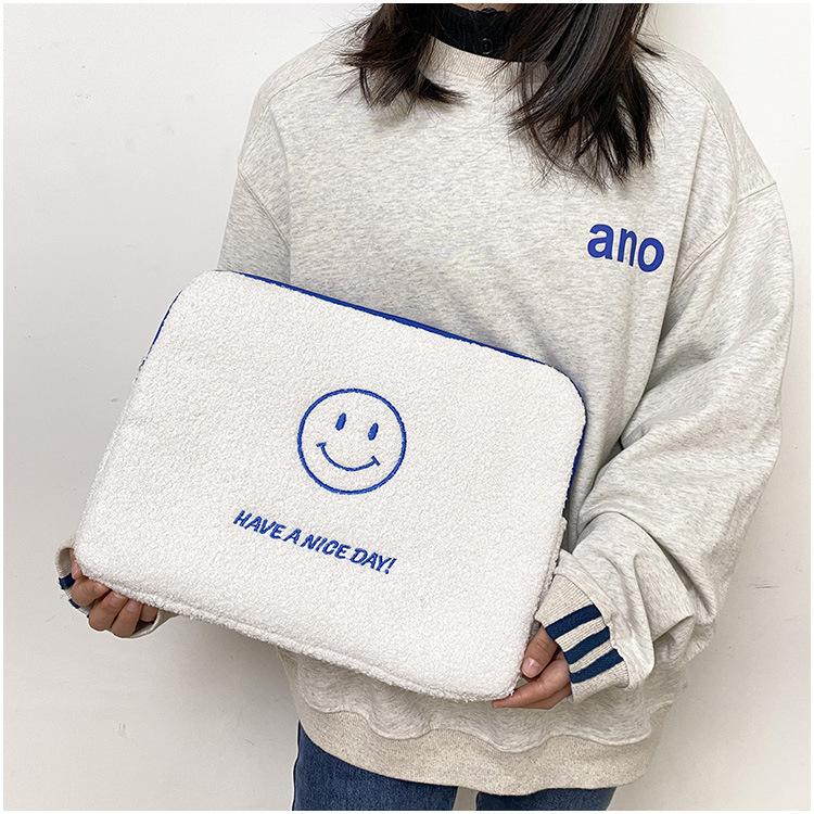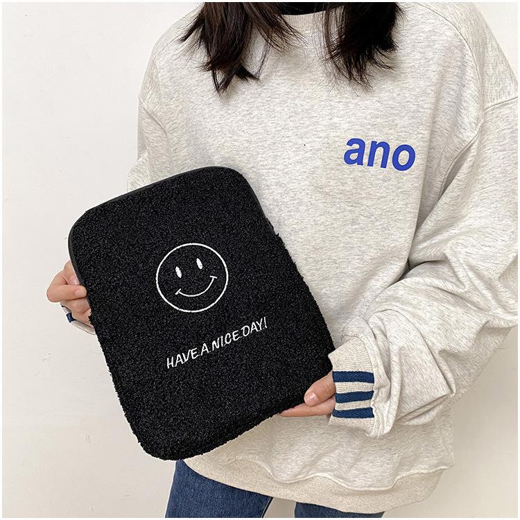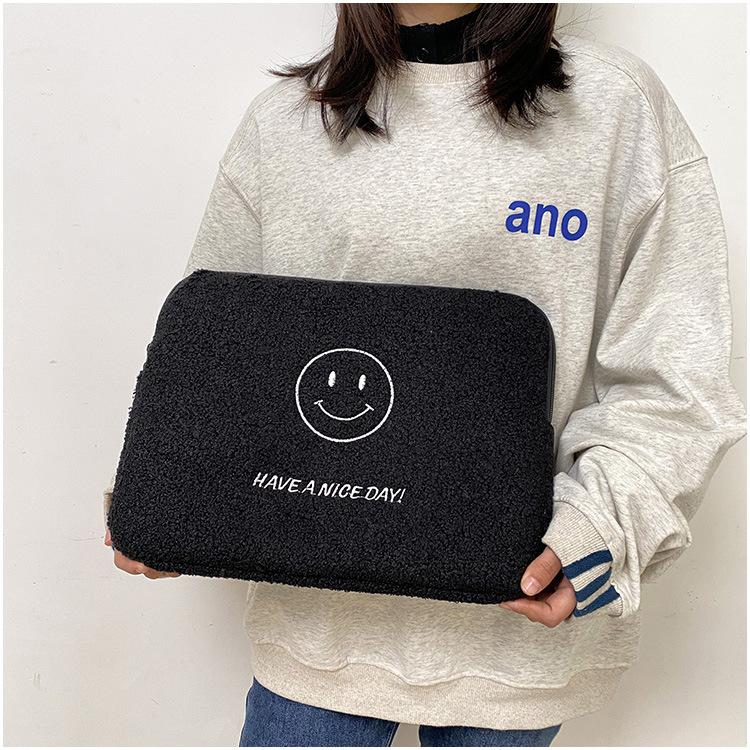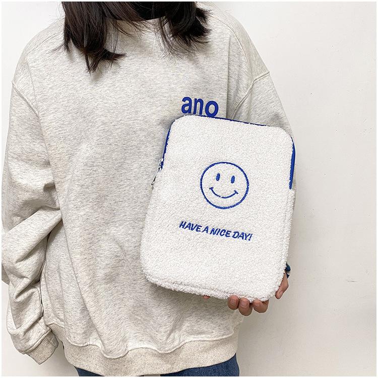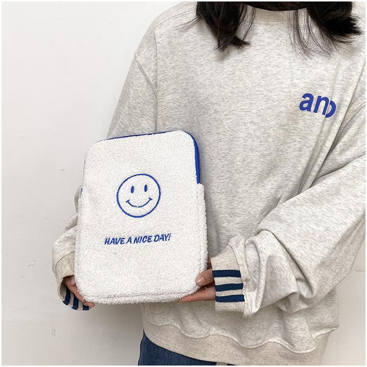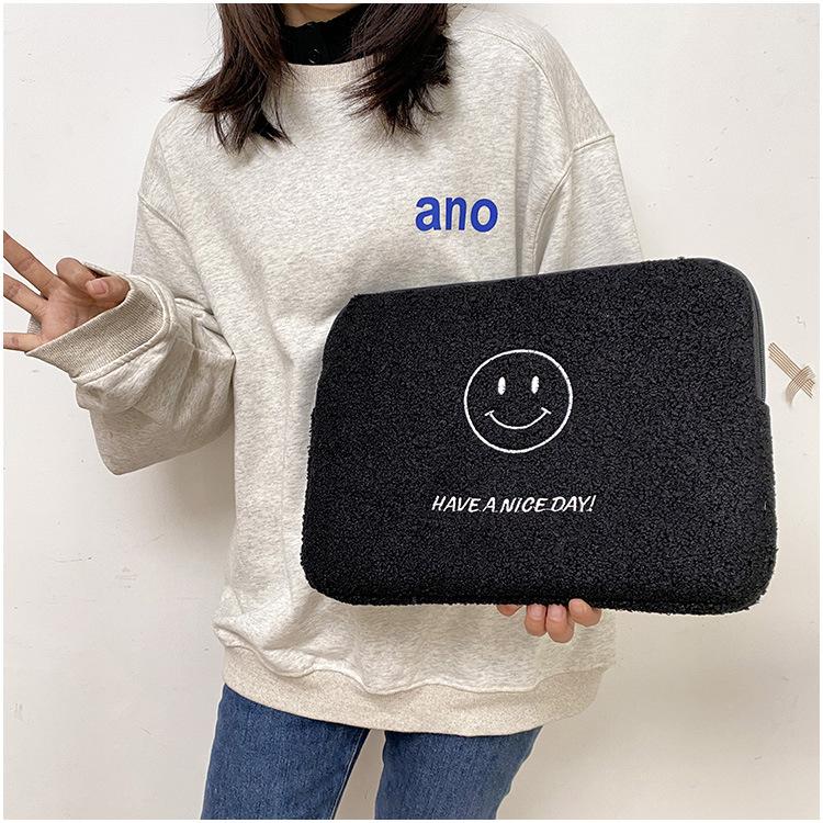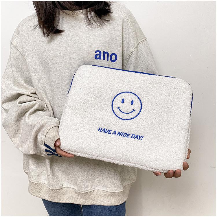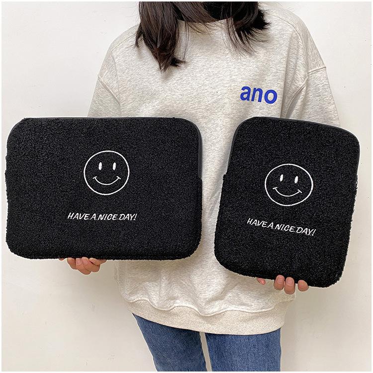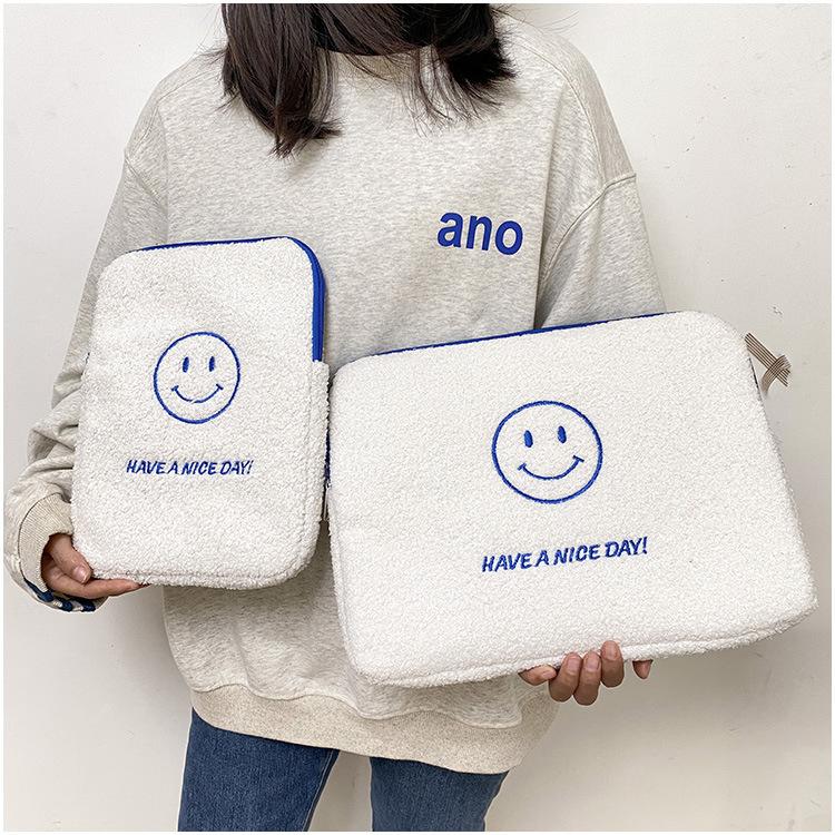 Coreano japonês outono e inverno sorrindo rosto bonito pelúcia capa ipad caso protetor 13.3 14 polegadas Tablet PC Bag