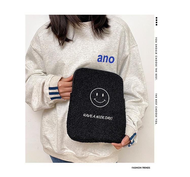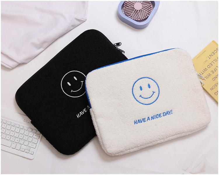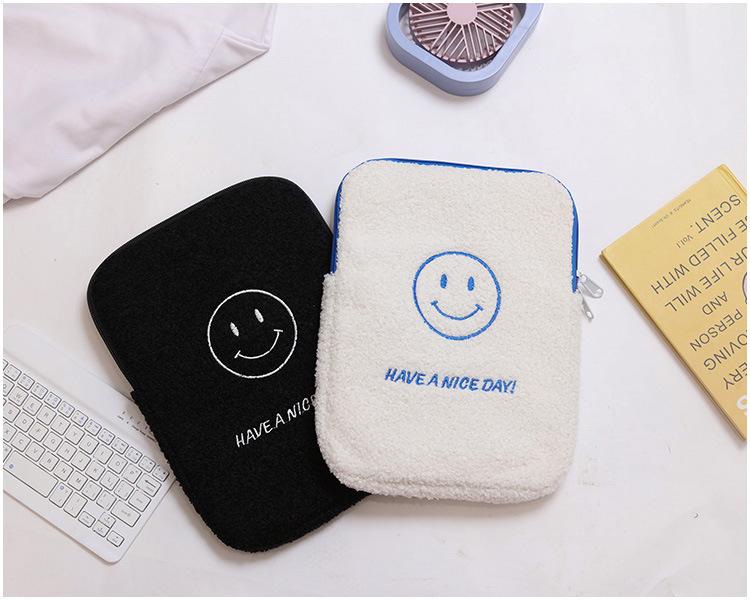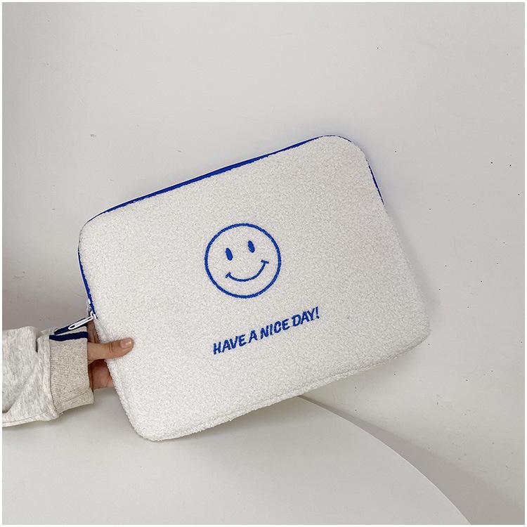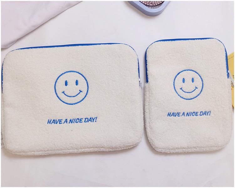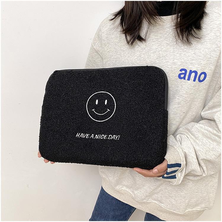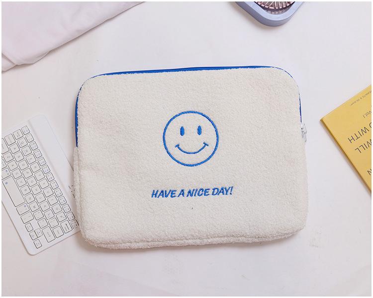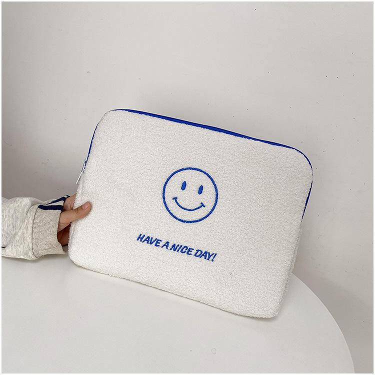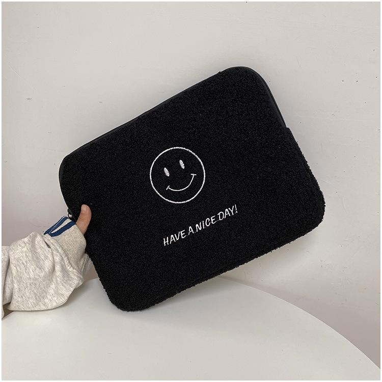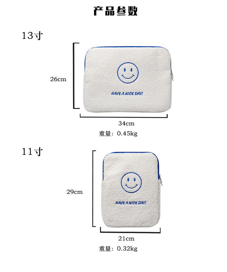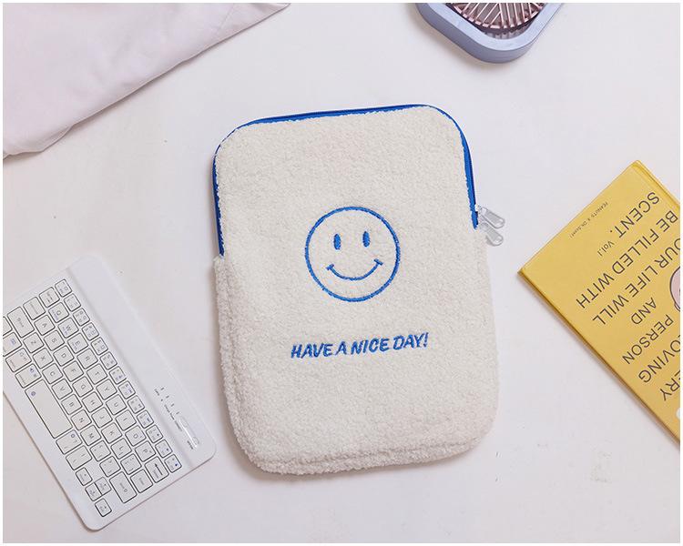 Coreano japonês outono e inverno sorrindo rosto bonito pelúcia capa ipad caso protetor 13.3 14 polegadas Tablet PC Bag