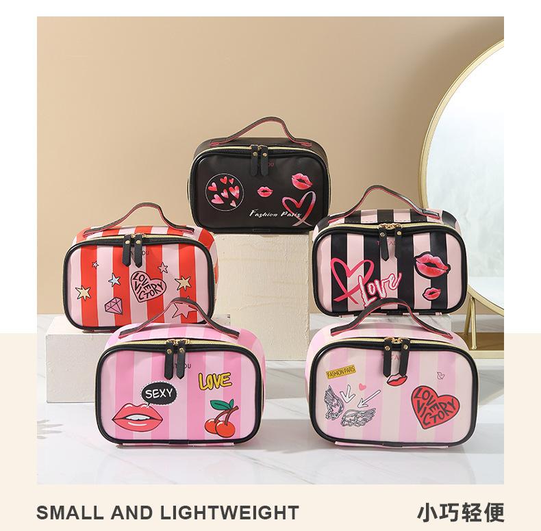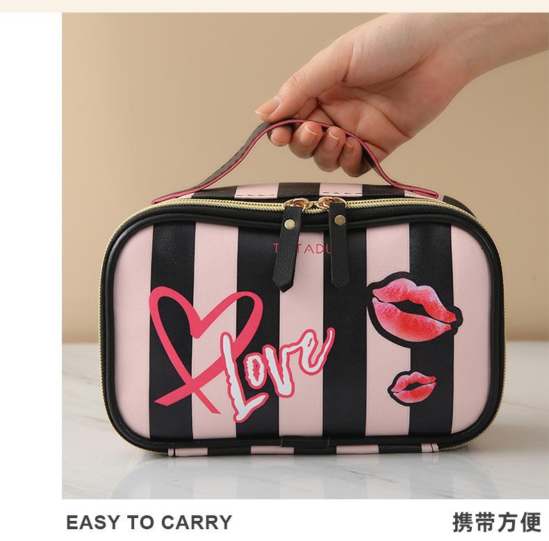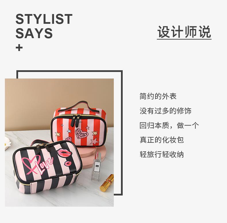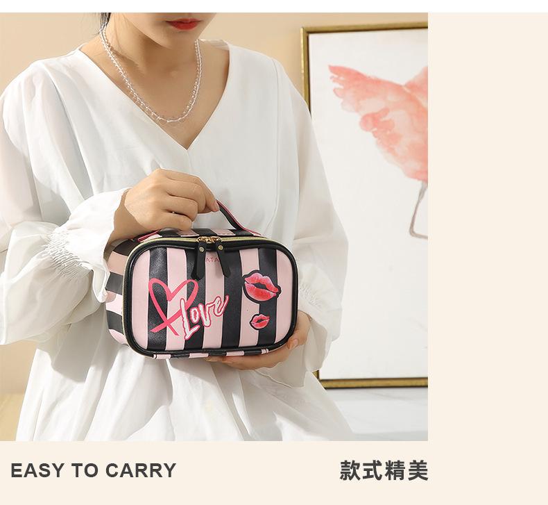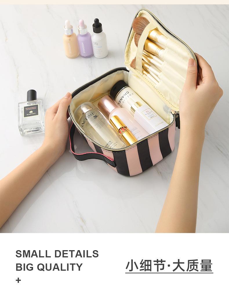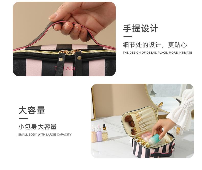 Bolsa de armazenamento listrada estilo europeu e americano, bolsa de viagem portátil para lavagem, bolsa criativa de cosméticos de grande capacidade