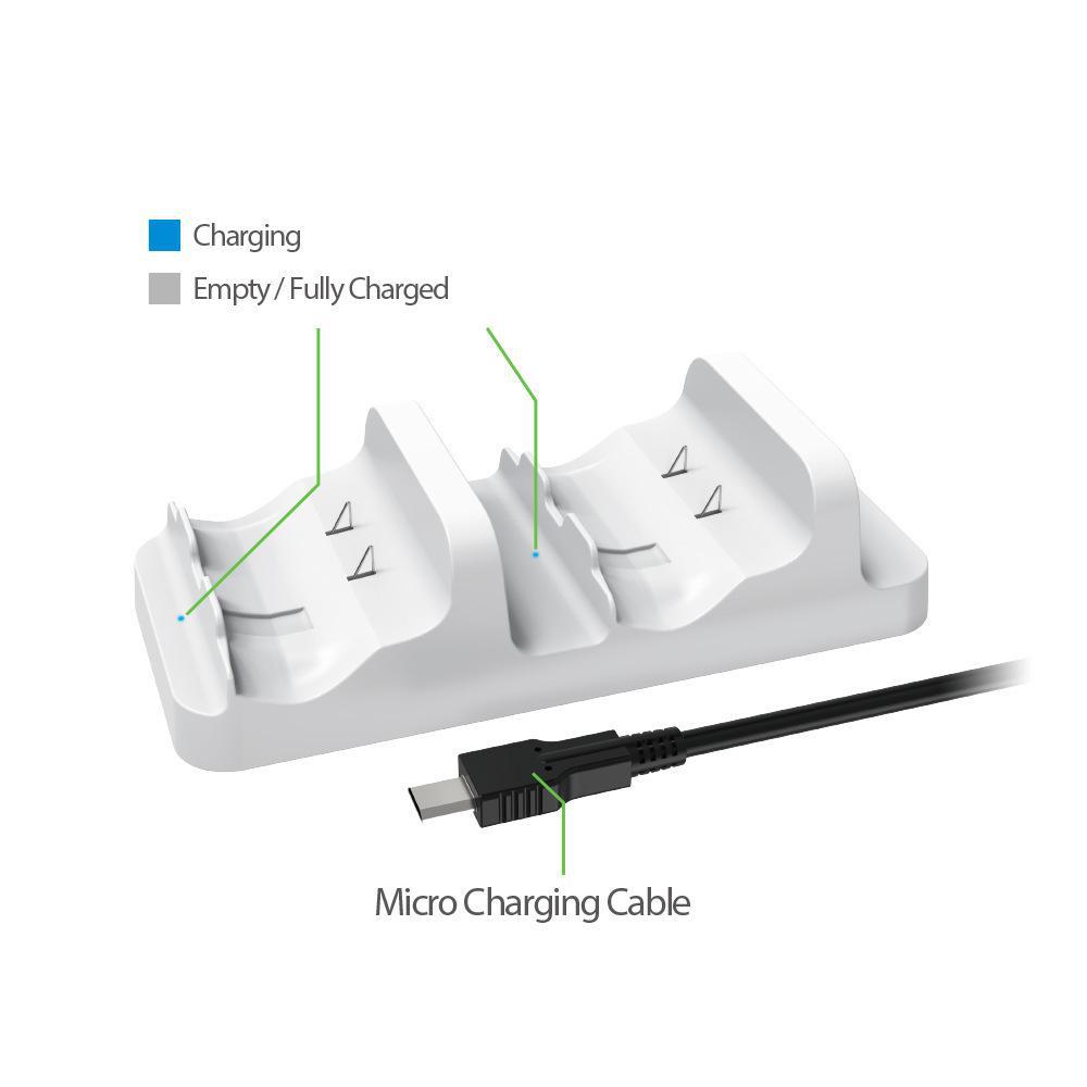 1. O carregador duplo do controle XBOX ONE é um produto de carregamento projetado de acordo com as necessidades de carregamento do controle XBOX ONE. Este produto é equipado com dois pacotes de bateria, que podem ser instalados no controle XBOX ONE para alimentá-los. Este produto também vem com um cabo de carregamento USB, que pode ser conectado à interface MICRO do pacote de bateria por meio de um dispositivo com uma saída USB DC5V padrão ou uma interface de adaptador de incêndio para carregar o pacote de bateria; quando a bateria foi instalada no controle XBOX ONE, o controle pode ser carregado diretamente por meio da base de carregamento duplo deste produto.