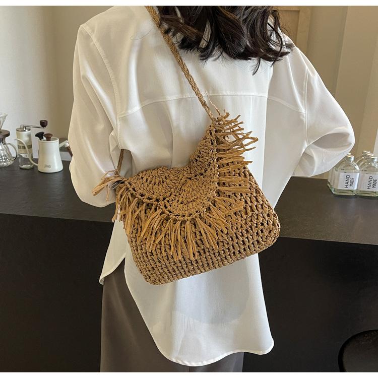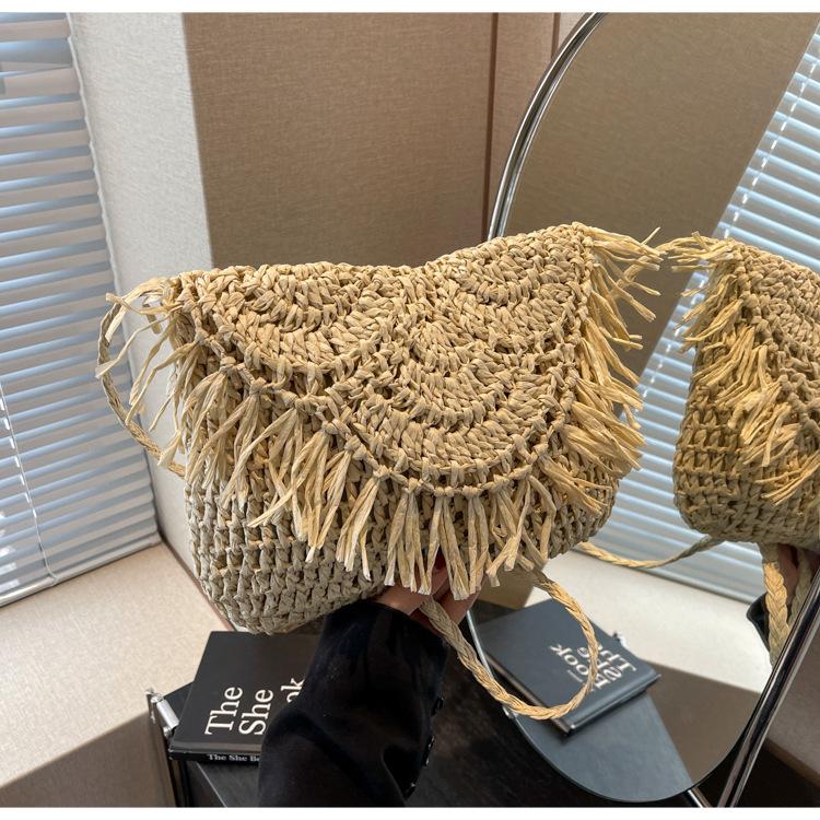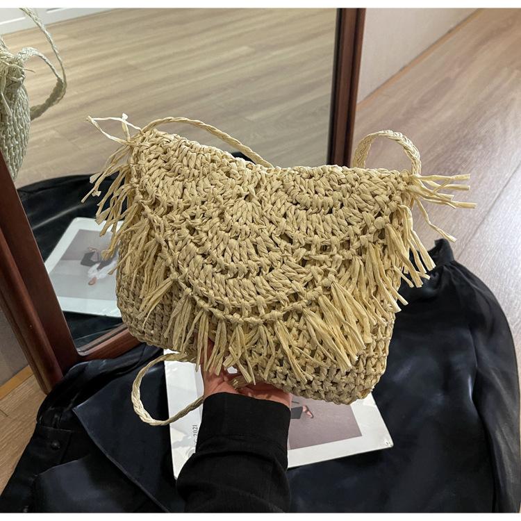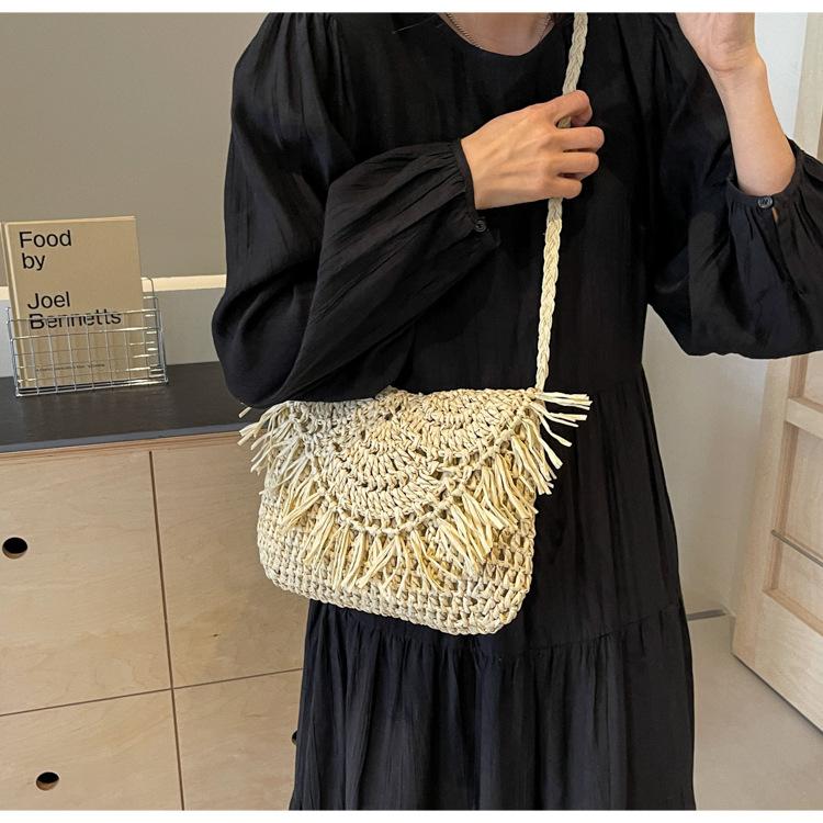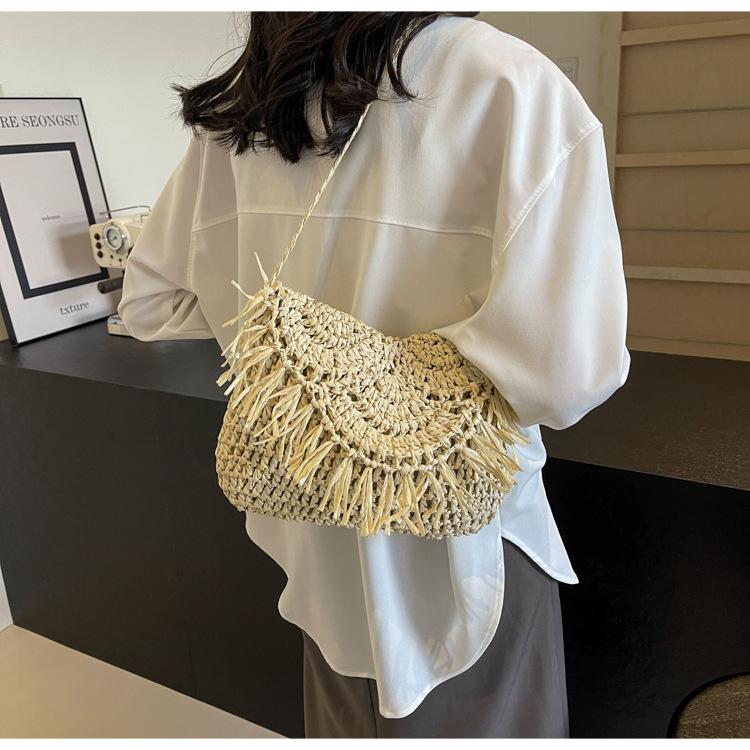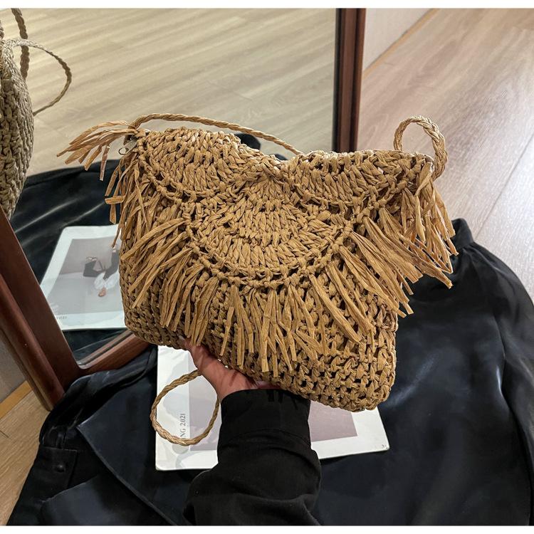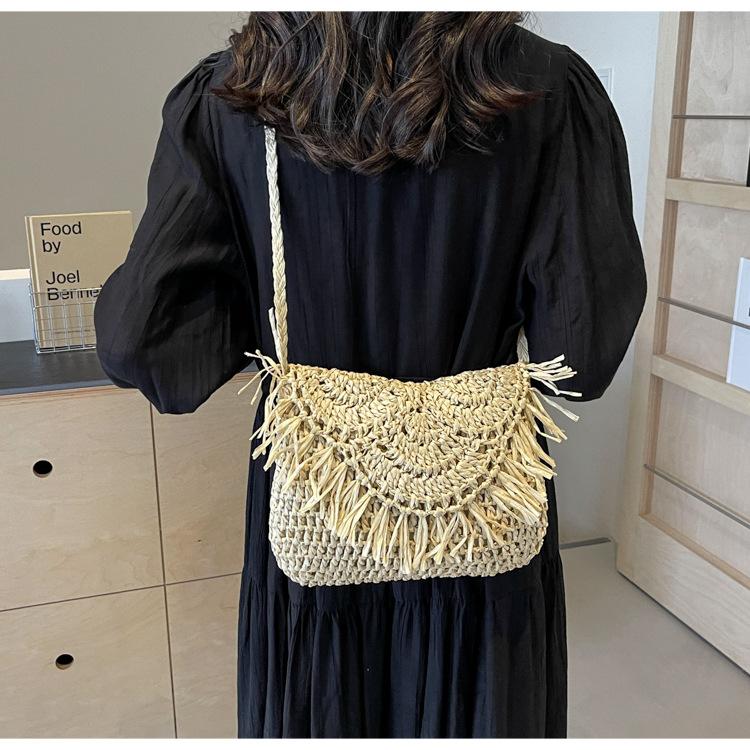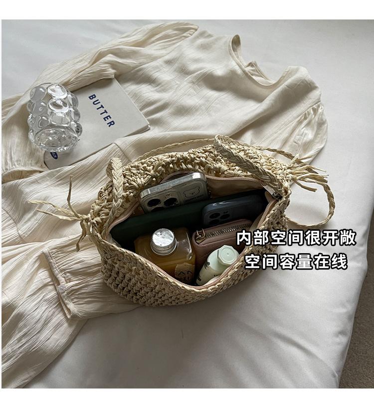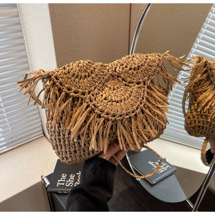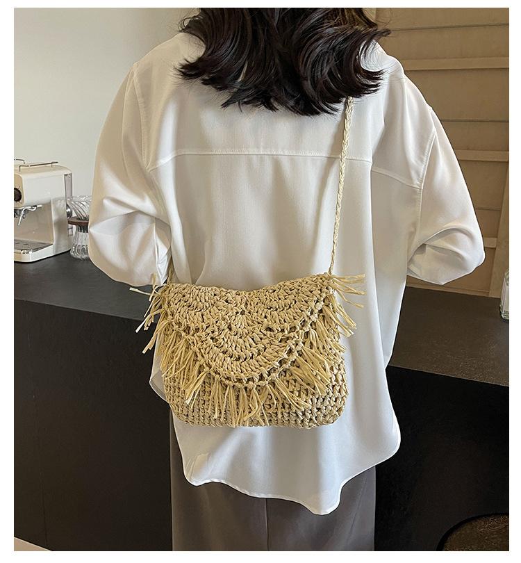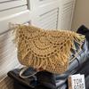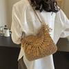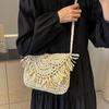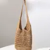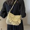 Bolsa de Palha Tecida Feminina Grande Capacidade 2025 Nova Versátil Primavera e Verão Ombro Único Transversal Bolsa de Praia de Férias à Beira-Mar