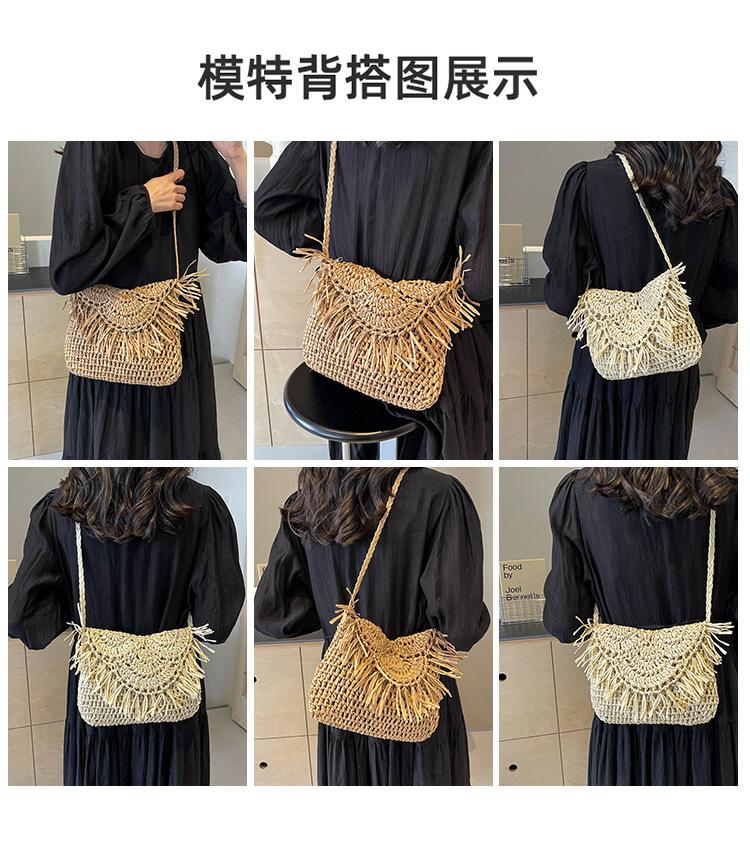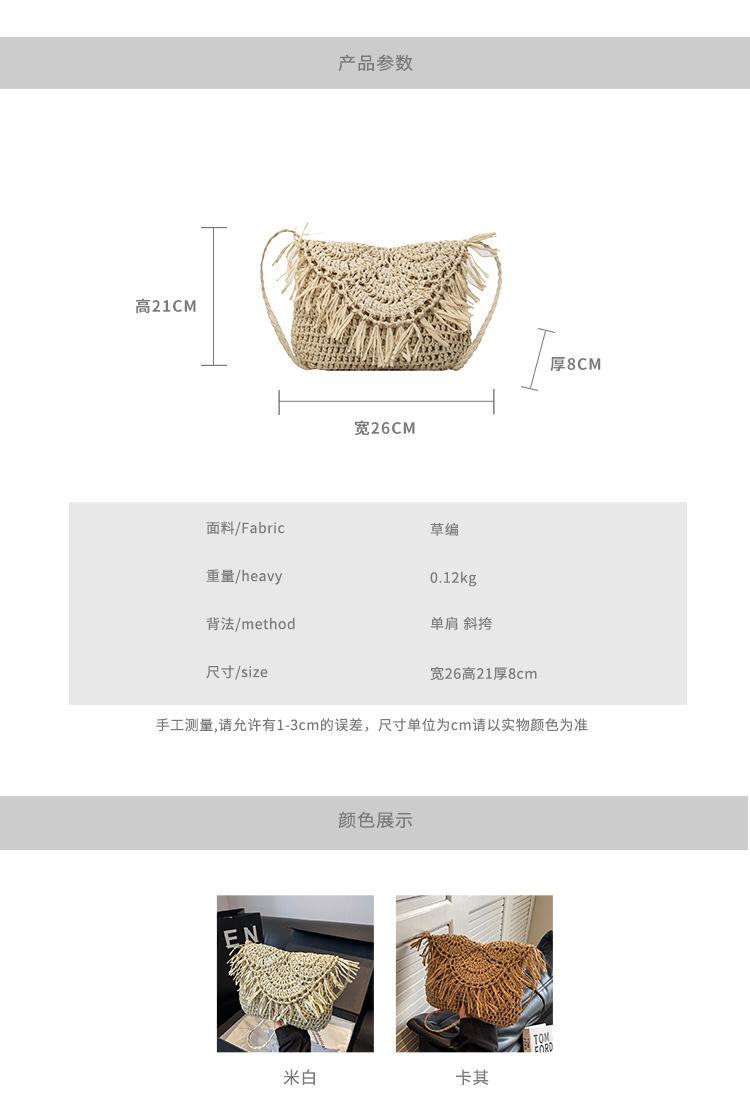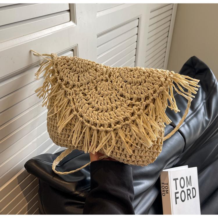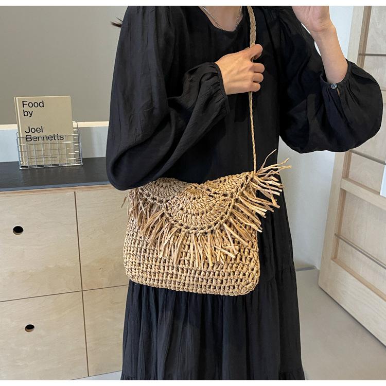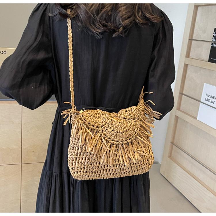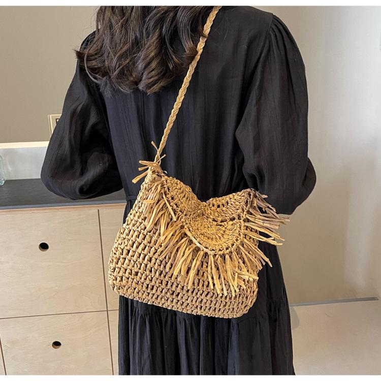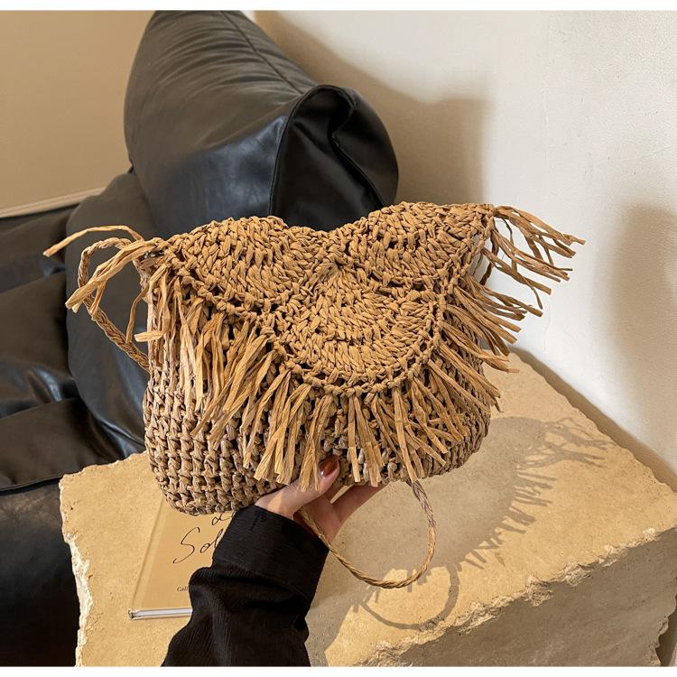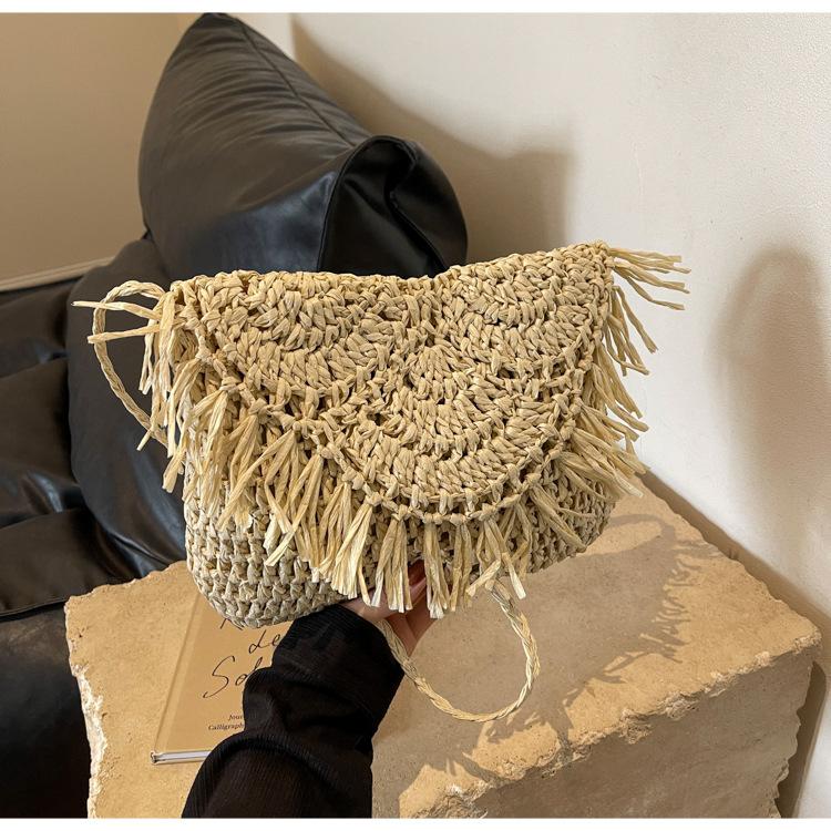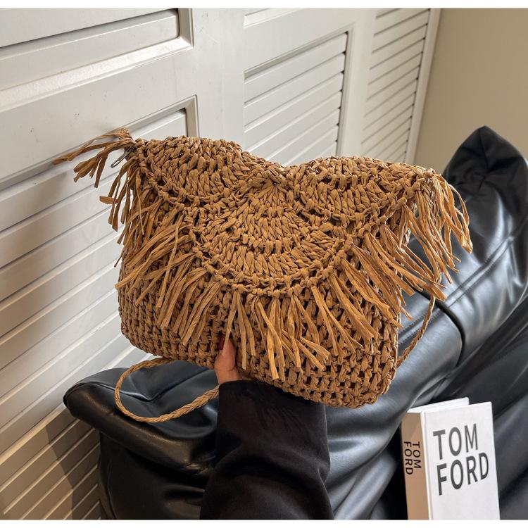 Bolsa de Palha Tecida Feminina Grande Capacidade 2025 Nova Versátil Primavera e Verão Ombro Único Transversal Bolsa de Praia de Férias à Beira-Mar