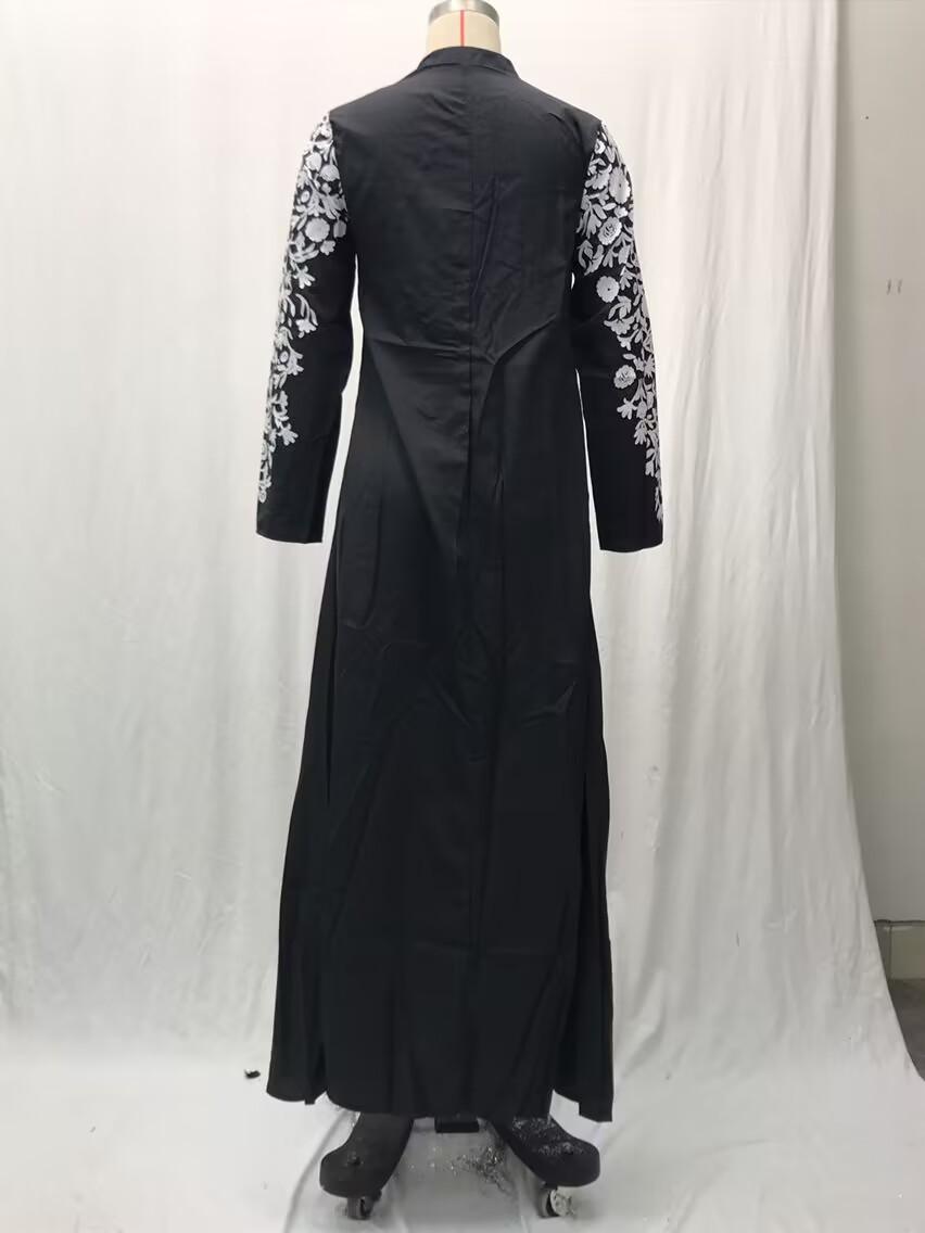 Vestido longo estampado feminino de manga comprida com gola vertical, estilo étnico, estilo amazônico europeu e americano, 2025
