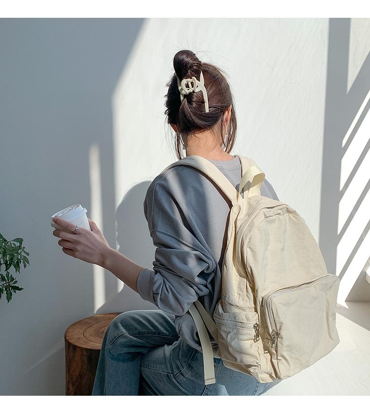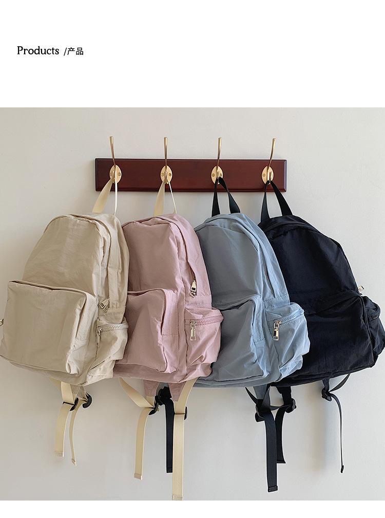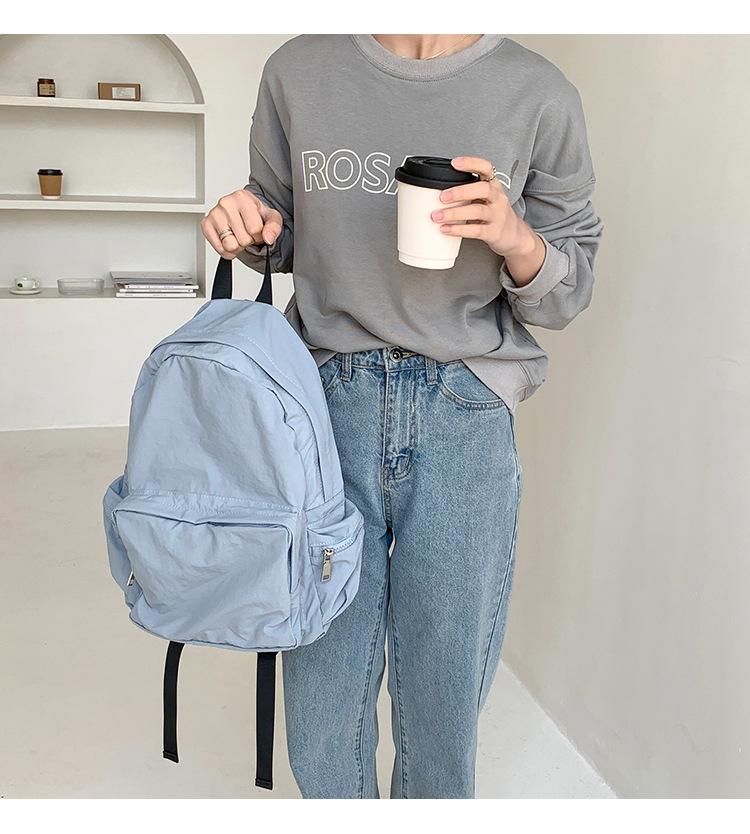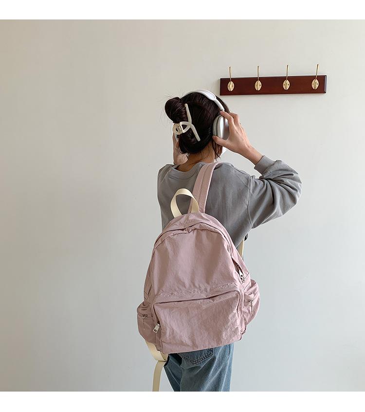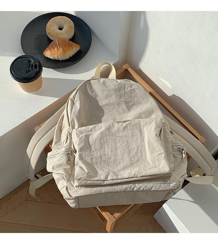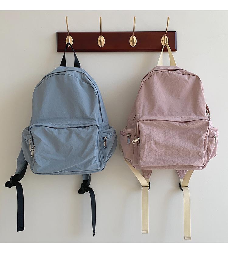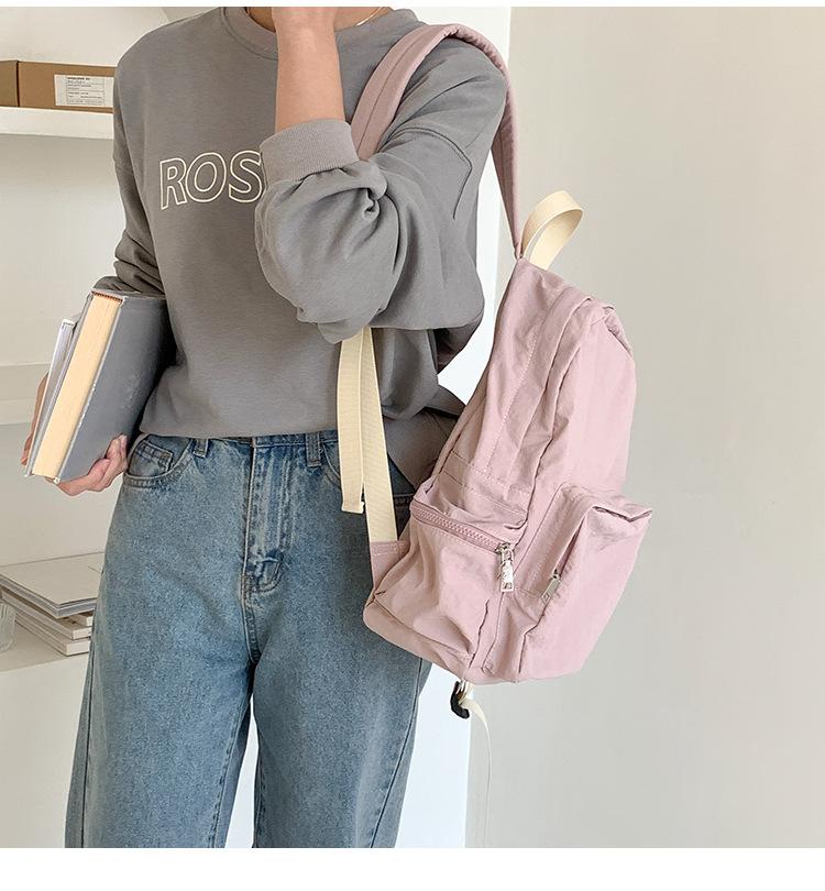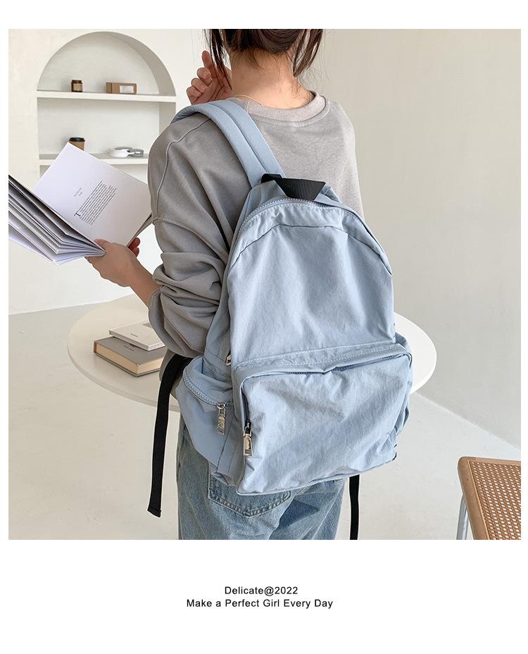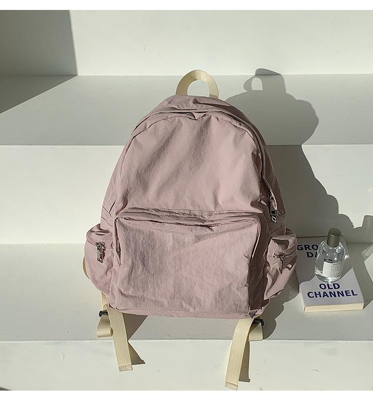 Mochila Leve para Deslocamento, Grande Capacidade, Mochila Estilo Harajuku, Cor Sólida, Bolsa Escolar Simples de Tecido de Nylon para Estudantes, Casual e Versátil