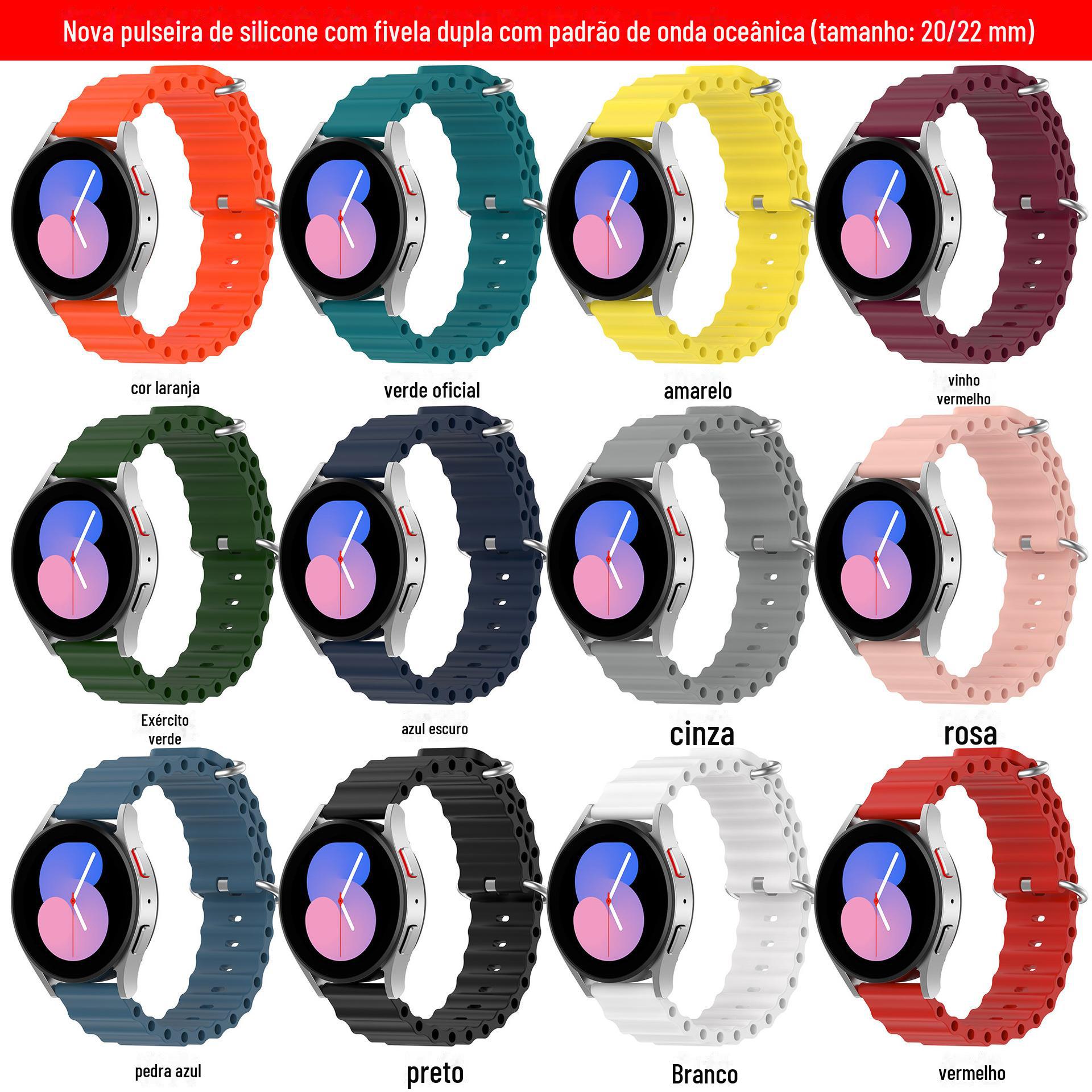 Aplicável a Samsung watch5/Huawei 20/22mm alça oceânica padrão de onda oficial mesmo estilo esportes fivela dupla silicone