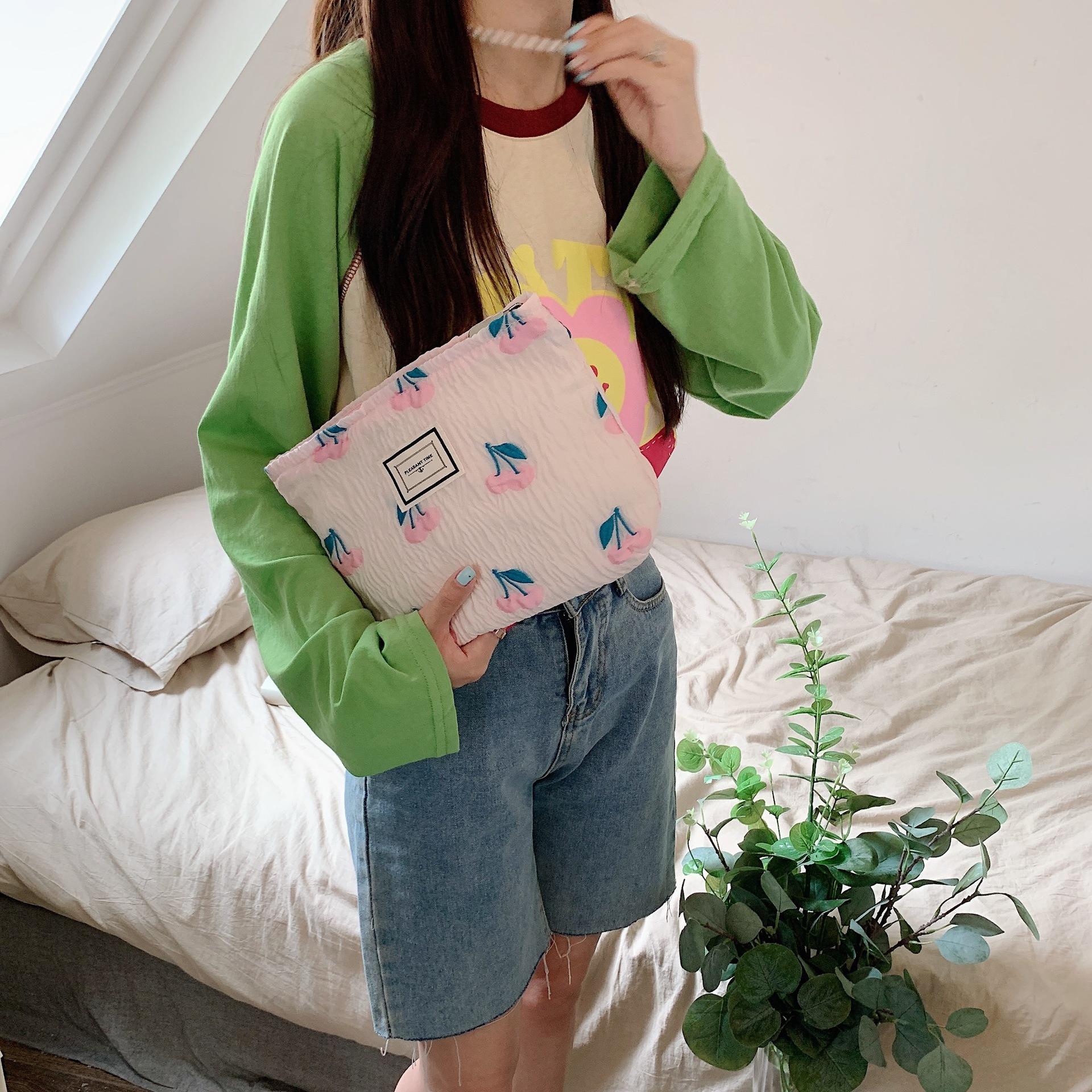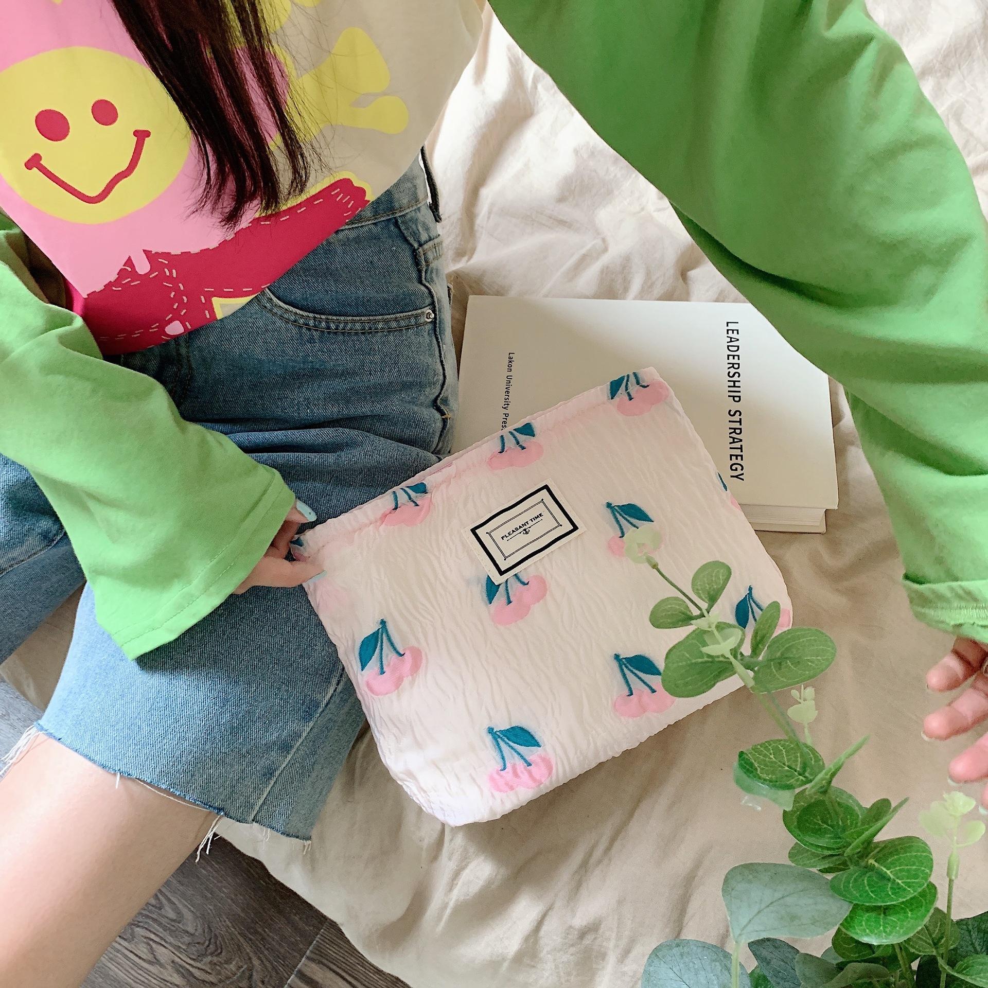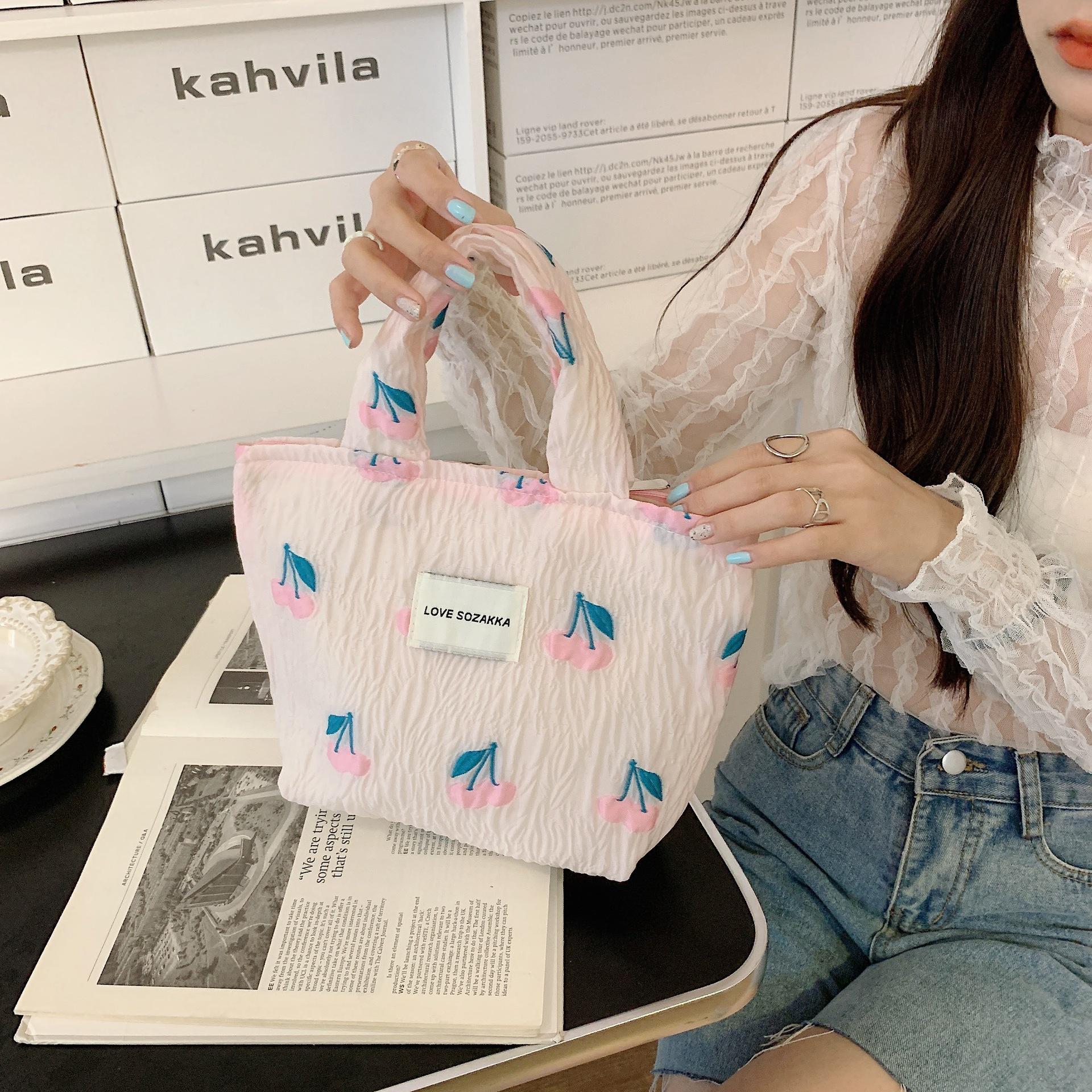 25247 Em relevo cereja grande capacidade portátil saco de embreagem saco apto saco de sacola feminina único ombro puxar alça de ombro