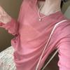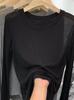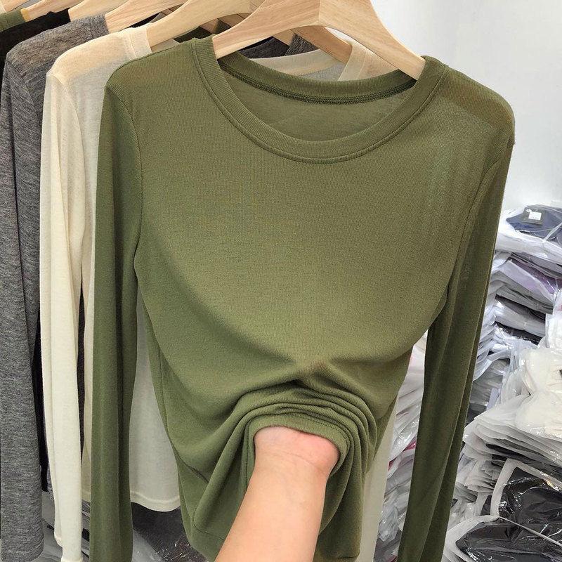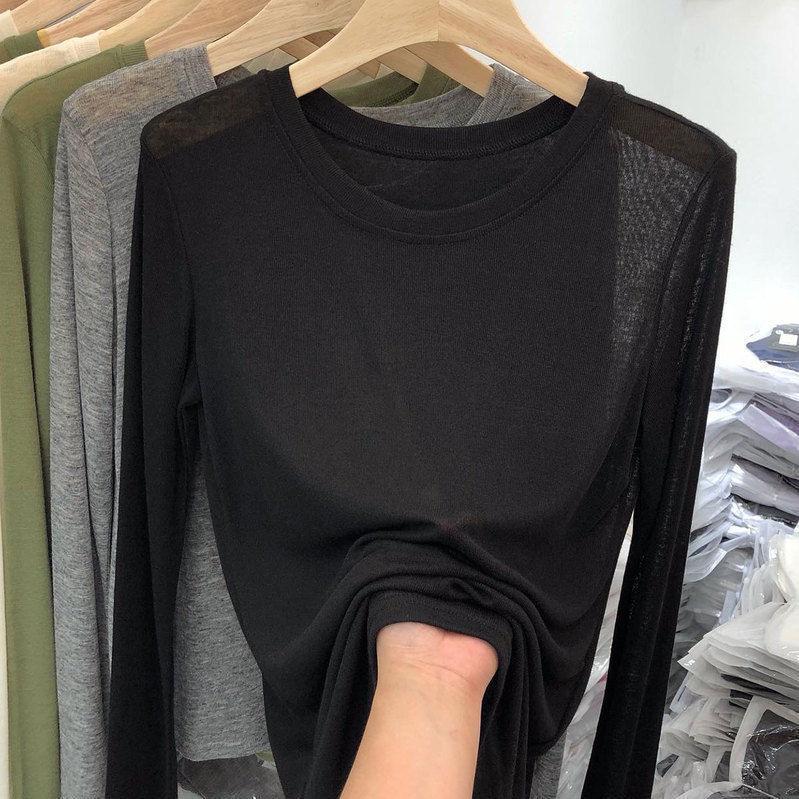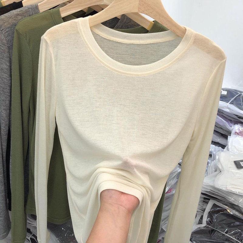 Camiseta de Manga Comprida com Gola Redonda Suave Roupa de Proteção Solar para Mulheres Primavera 2025 Novo Estilo Coreano Slim Cor Pura Camiseta Básica Tops para Mulheres