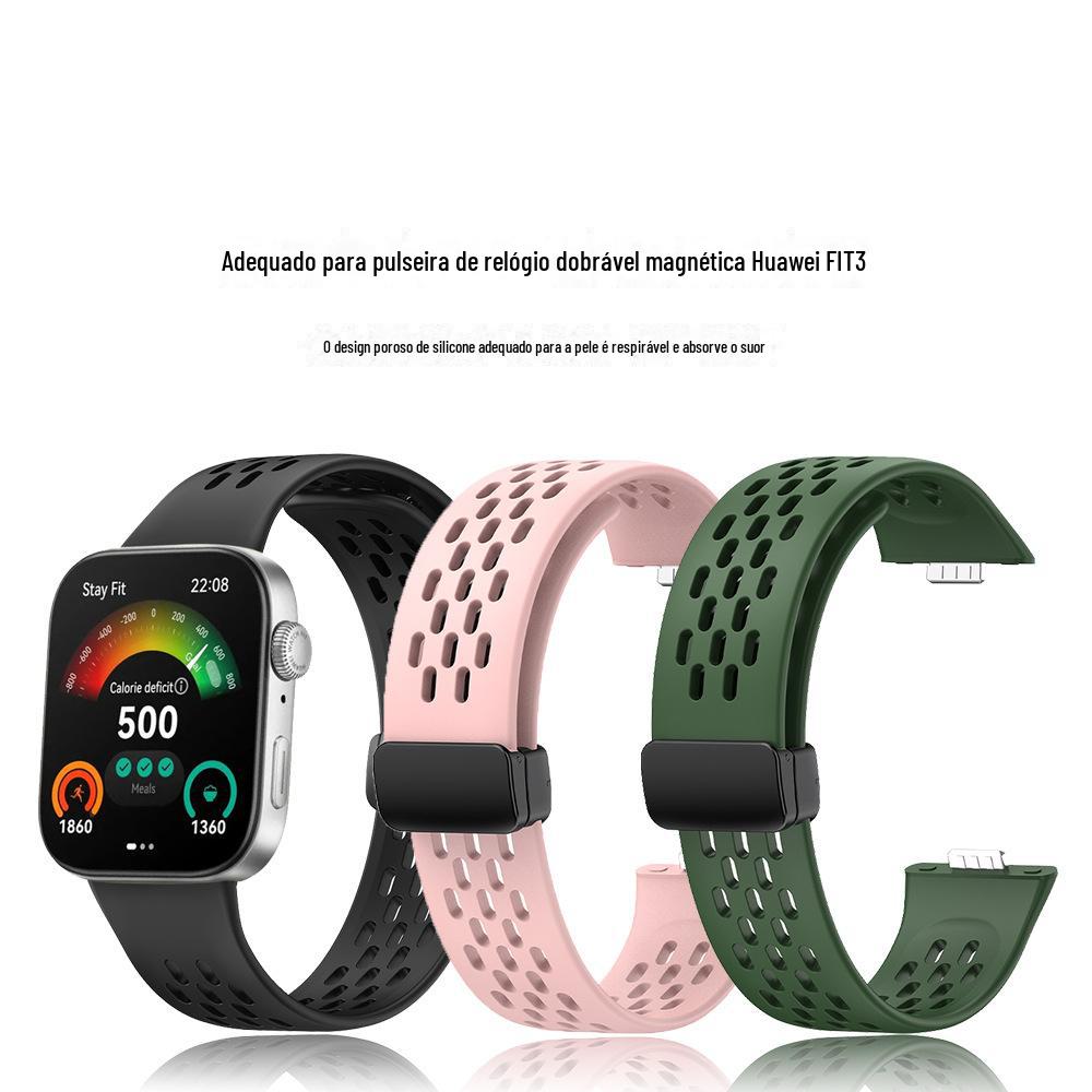 Para Huawei Fit3 Watch pulseira de silicone Huawei relógio FIT3 Porous respirável pulseira dobrável magnética