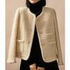 Jaqueta Tweed de Lã com Toque de Alta Qualidade, Estilo Curto Tweed Vermelho, Roupa de Inverno para Mulheres, Blusa de Outono 2025