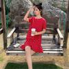 Mamão leite verão Novo temperamento coreano manga curta listrada cintura fina moda longo A- linha vestido