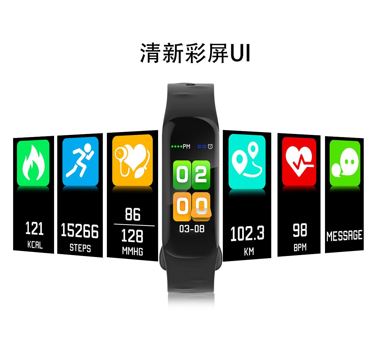 Pulseira inteligente esportiva pulseira de tela colorida pulseira de tela colorida pulseira inteligente à prova d'água pulseira de monitoramento de sono