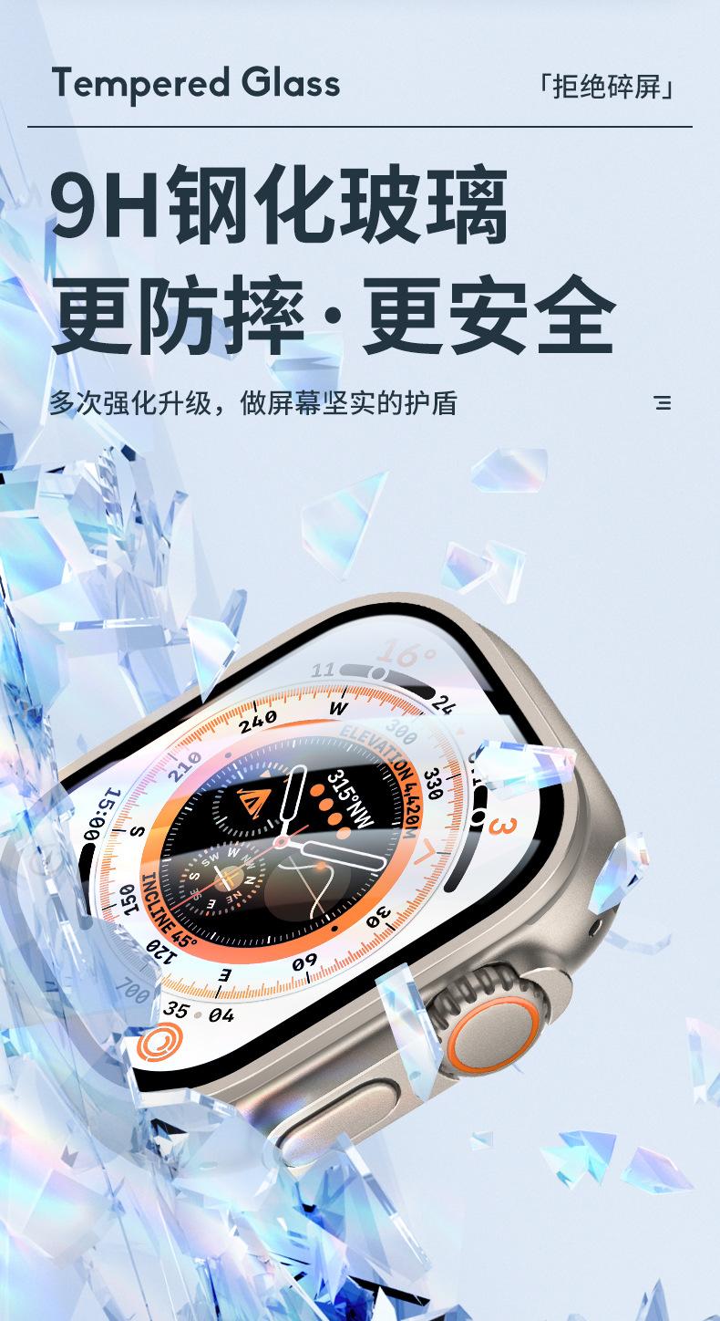 【Nome do produto】BH26 Série Hidden Resistente com estrutura de liga de alumínio de borda larga e película protetora integrada 【Produtos aplicáveis】Apple Ultra/Ultra2 49mm