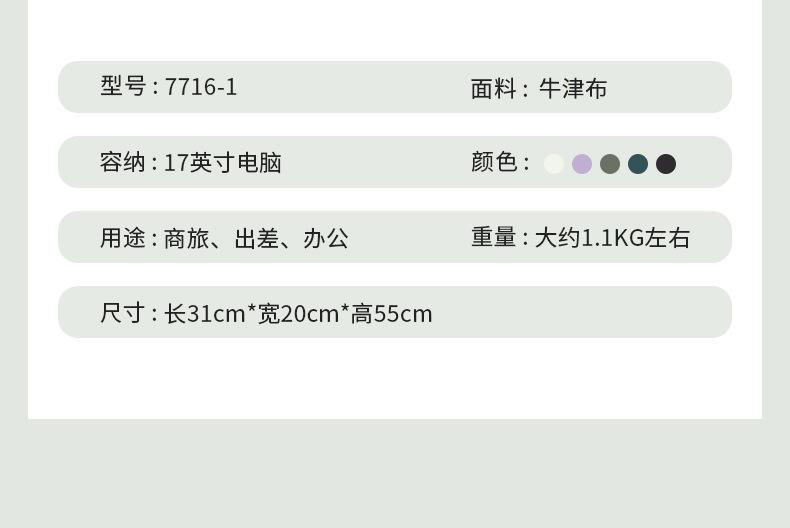 Mint green, Dark green, Military green, Purple, Black, Camouflage, Gray, Navy blue