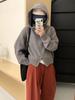 Pequeno cardigan camisola com capuz solto para as mulheres outono e inverno Novo estilo coreano curto duplo zíper top tricotado M5689