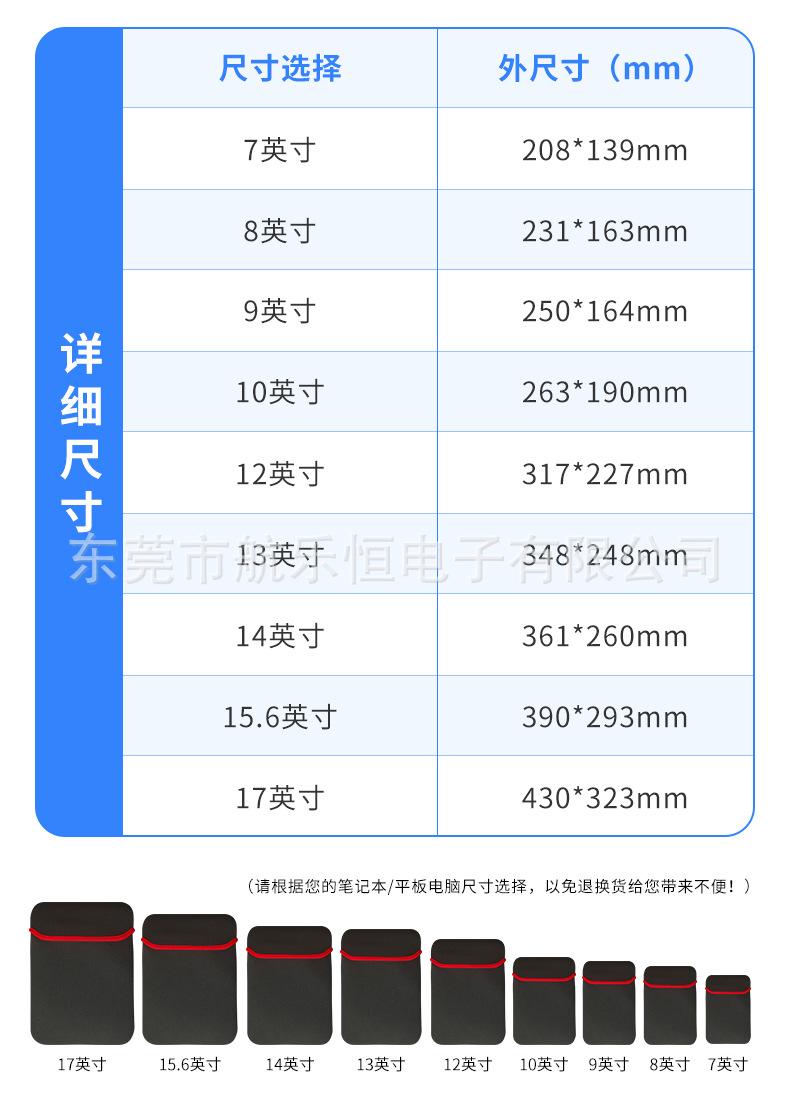 7inch, 8inch, 9inch, 10inch, 12inch, 13inch, 14inch, 15inch, 17inch
