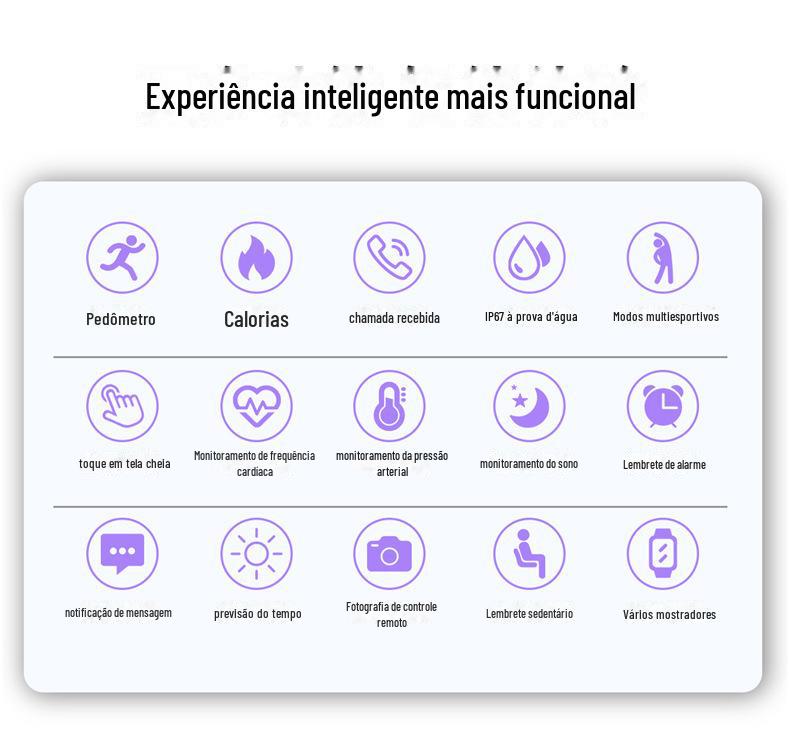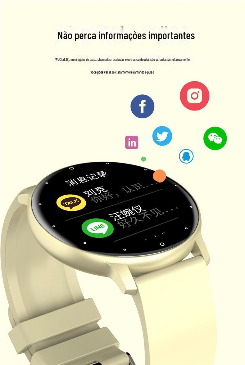 | Lembrete de informações | O APP possui interruptores de ativação de funções (chamadas recebidas, mensagens de texto, WeChat, QQ, Facebook, Twitter, LinkedIn, WhatsApp, Line, Instagram, Snapchat, Skype e outros aplicativos móveis) e lembretes de informações de eventos como sedentarismo, despertador, água potável , etc. | |