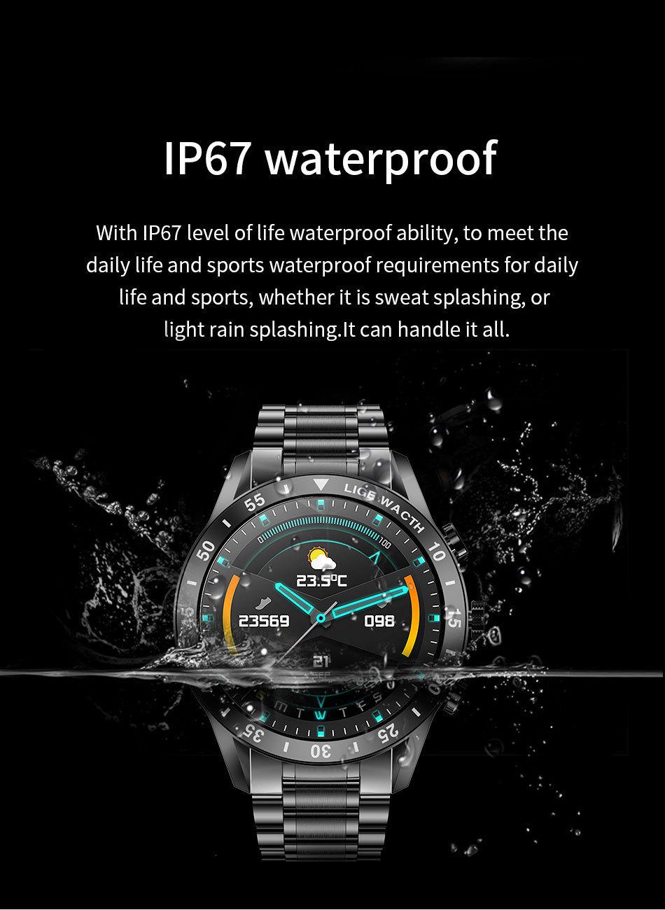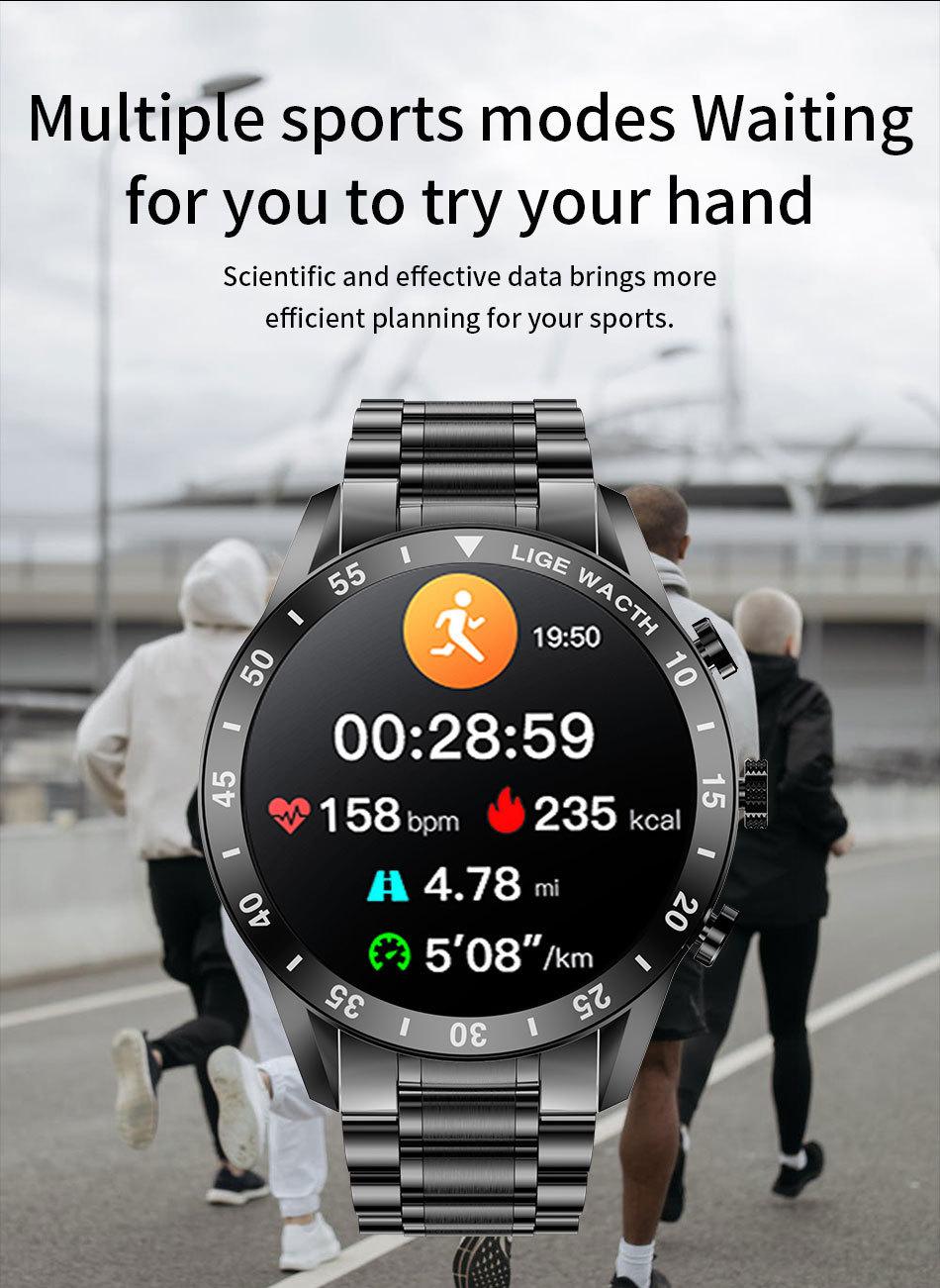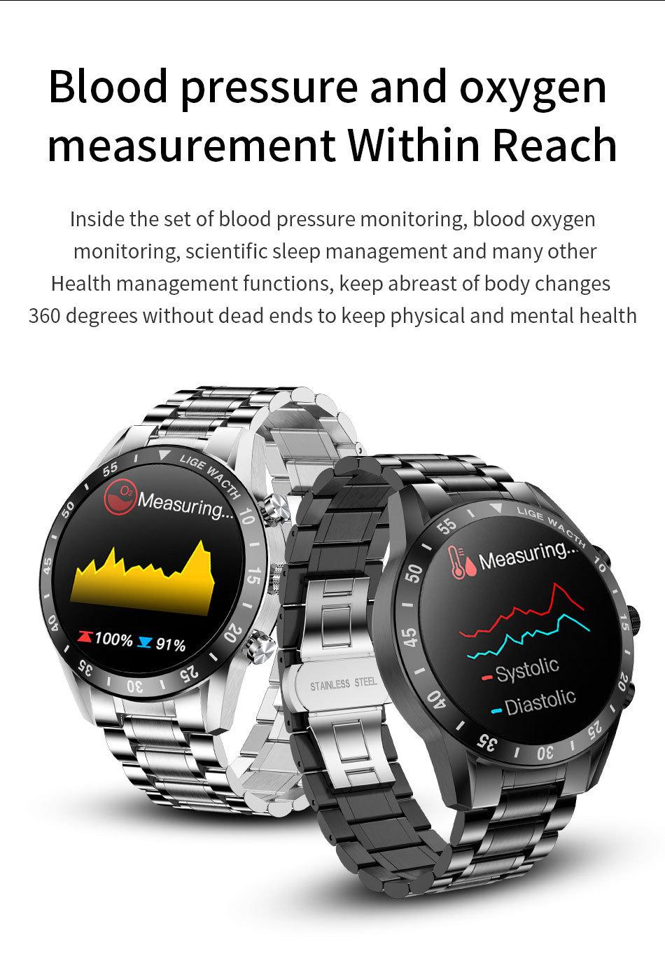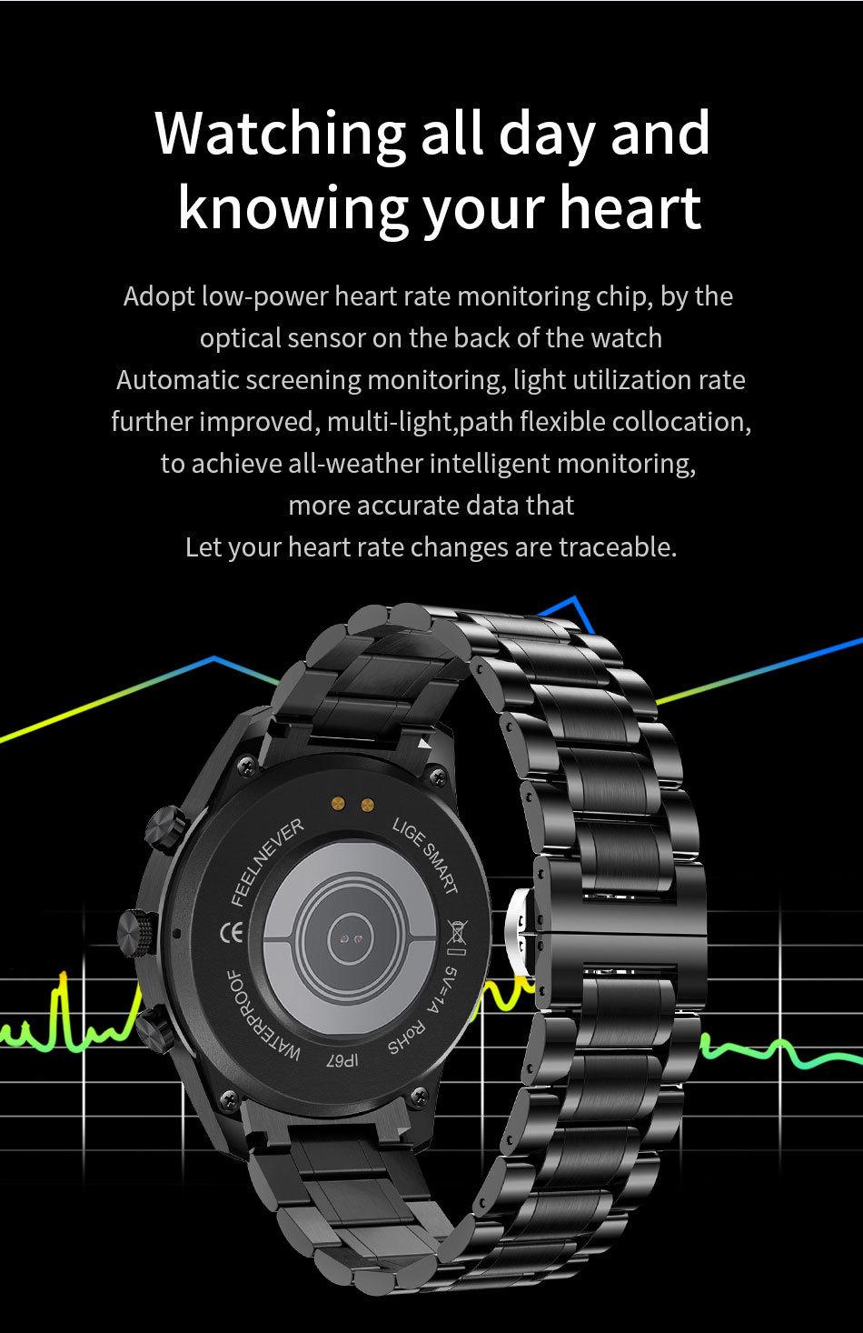 LIGE LIGE Bluetooth chamar relógio inteligente passo contagem esportes banda de aço multifuncional pulseira masculina relógio 0321
